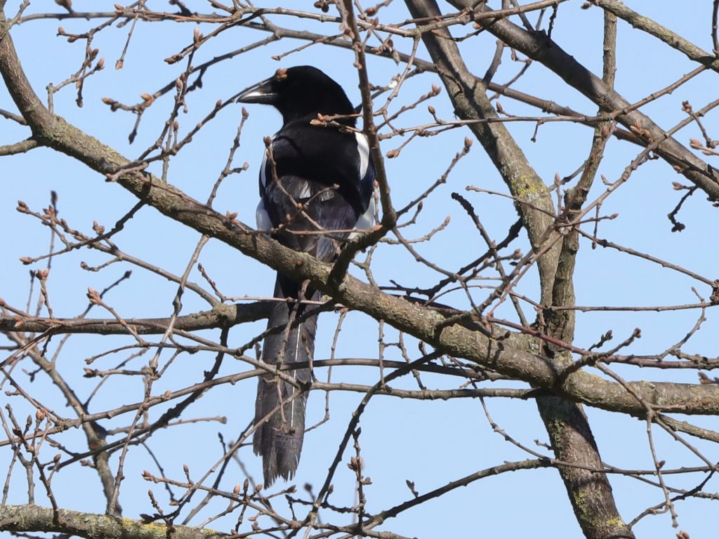 Pas de nids de Grand cormoran visibles à proximité de chez moi – il y en aura dans la prochaine publication – mais les oiseaux viennent souvent pêcher à portée d’objectif. Les Grands cormorans sont en ce moment en plumage nuptial avec une crête noire à la punk, la nuque et les hanches marquées de blanc.