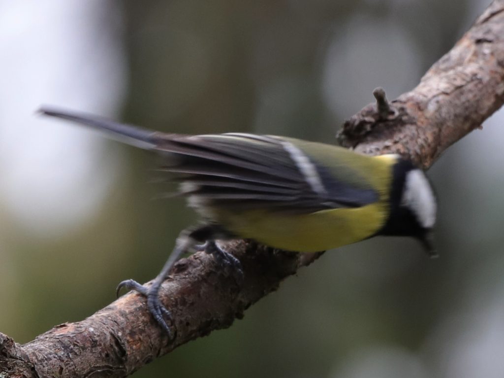 Deux photos de Mésange charbonnière. La vitesse des mouvements est toujours surprenante : la deuxième photo a été déclenchée au 1/400è de seconde.