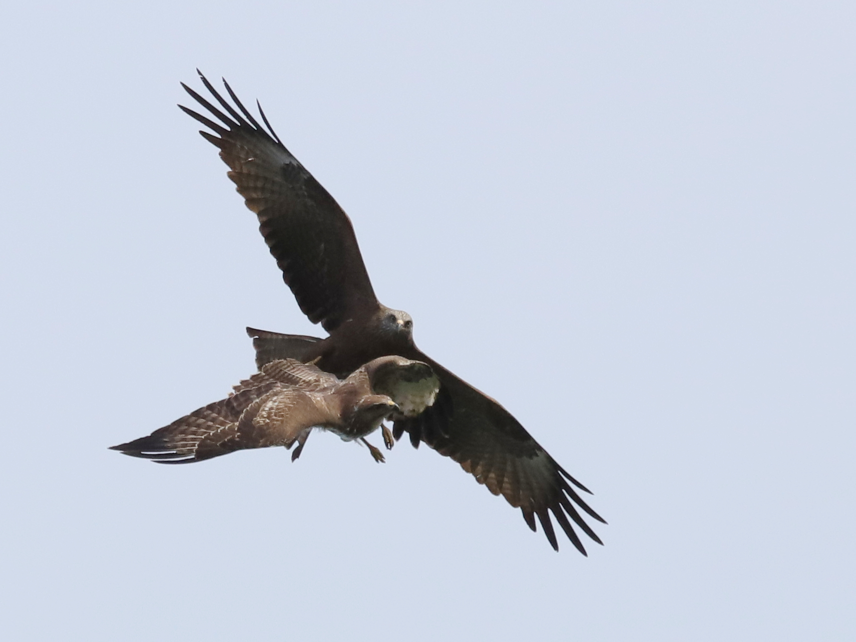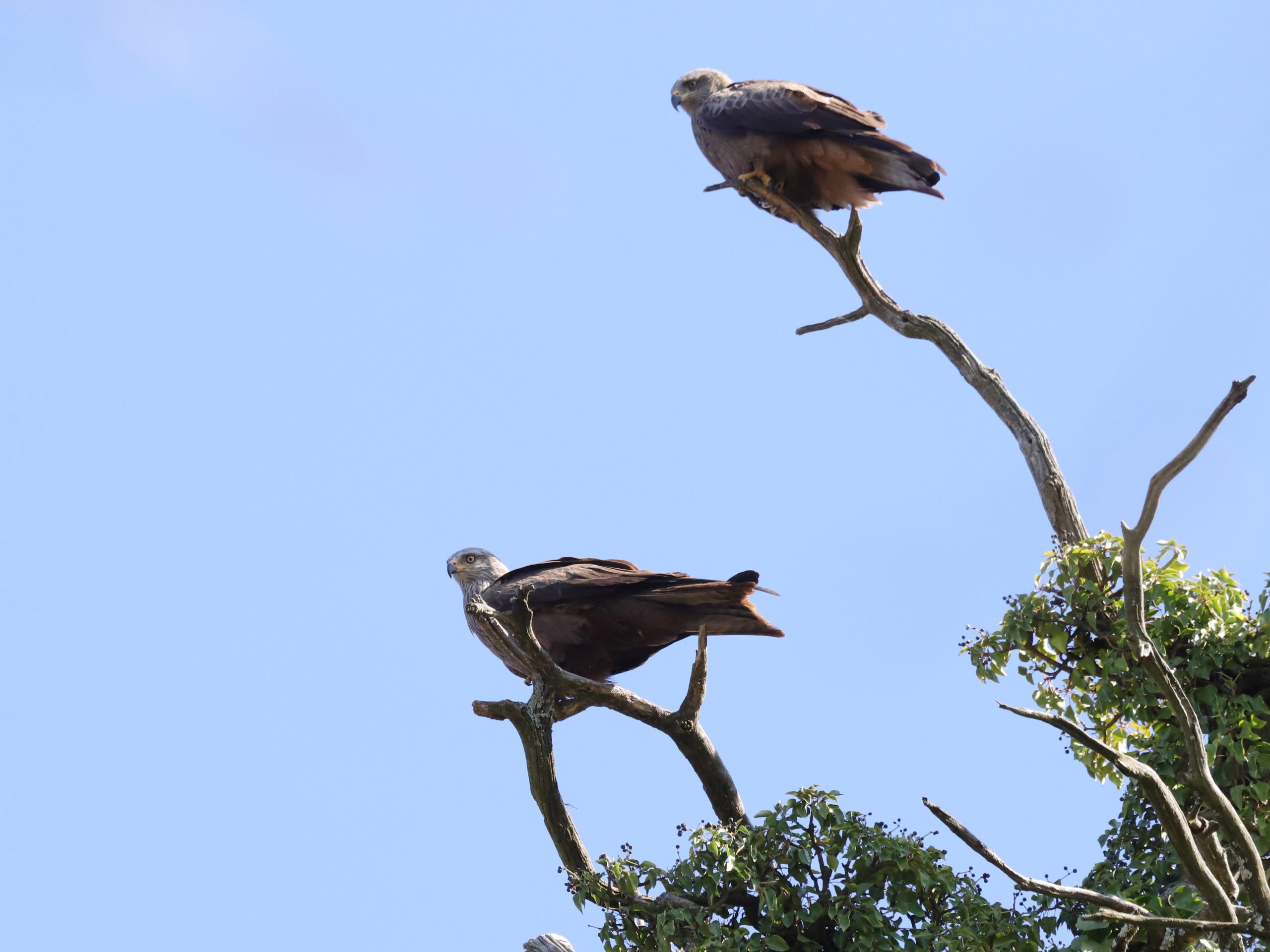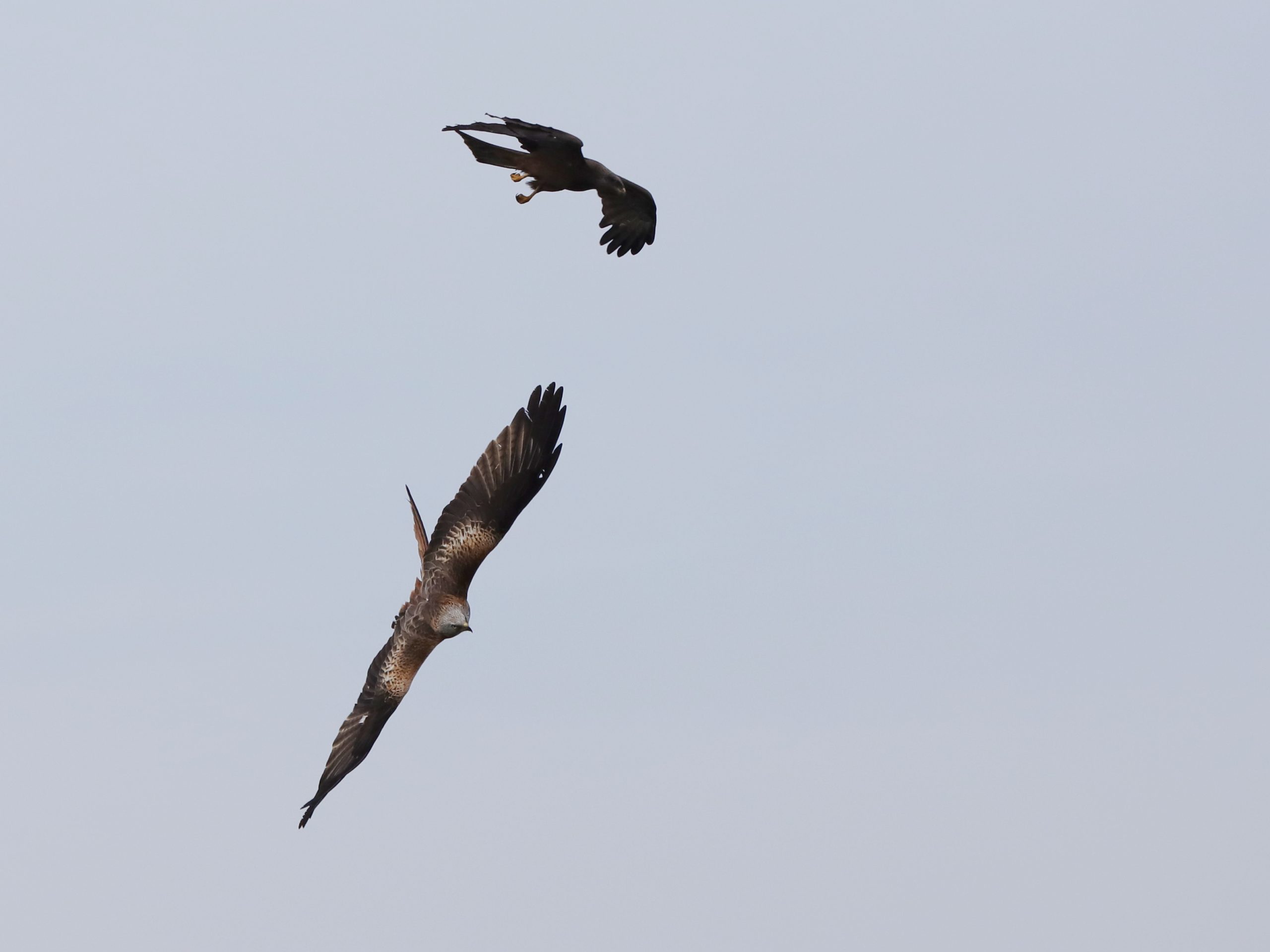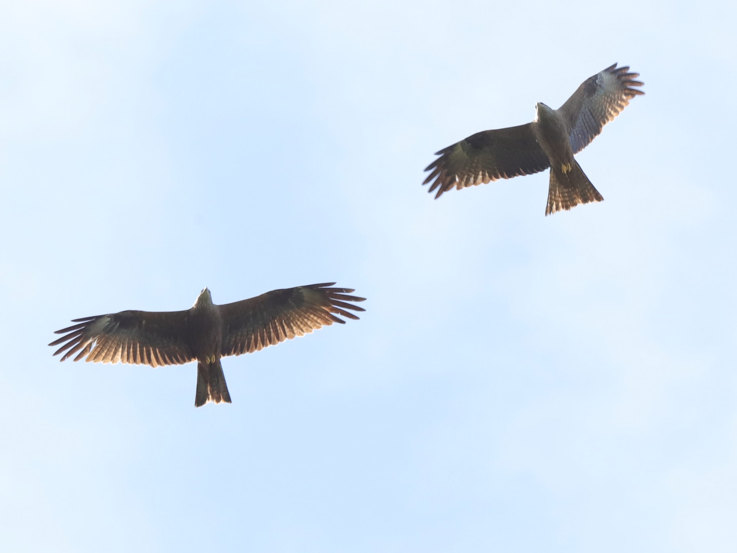 Il y a, naturellement, encore des rapaces qui migrent, comme ce Faucon crécerelle, qui partage quelques instants le ciel avec un Milan noir.