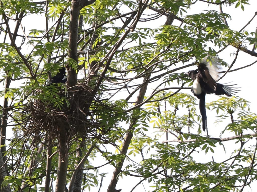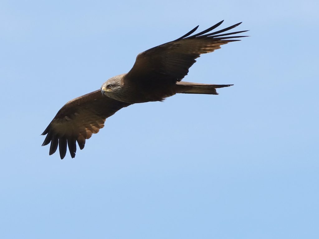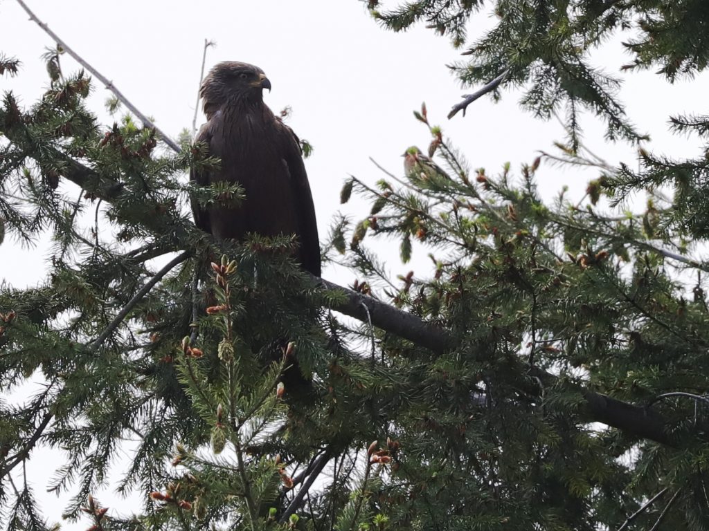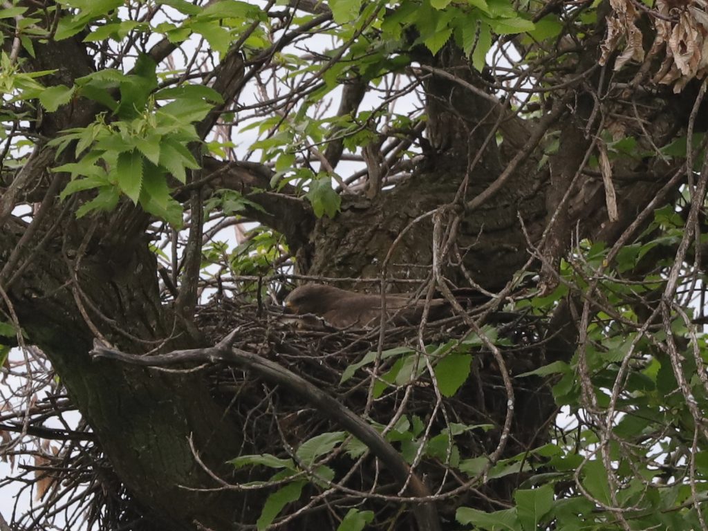 Un des nids de Milan noir est toujours occupé par une femelle immobile et discrète. D’autres oiseaux, attendent perchés ou jouent dans les ascendances entre hirondelle et avion …