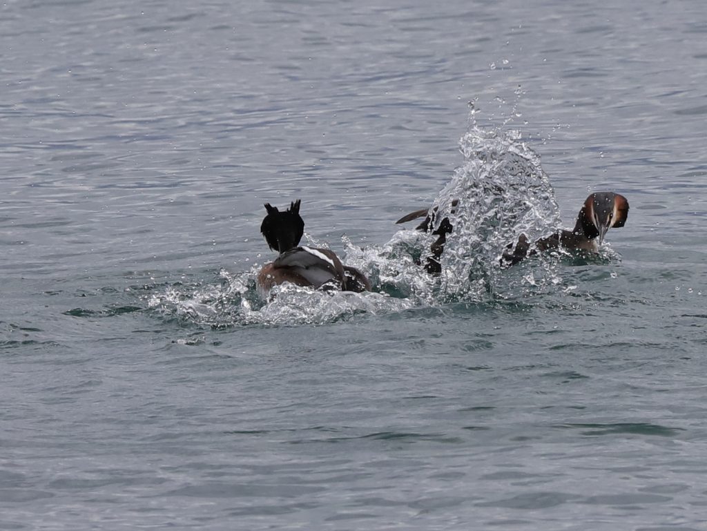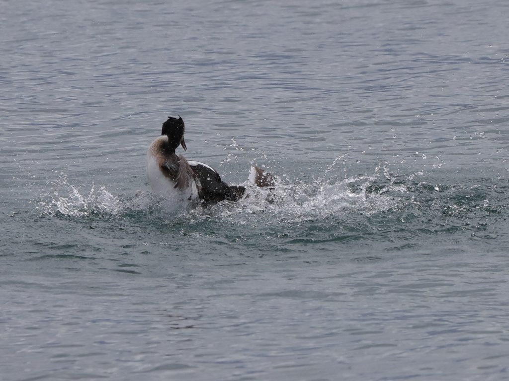 Et le Foulque macroule semble vérifier la température de l’eau avant d’y aller.