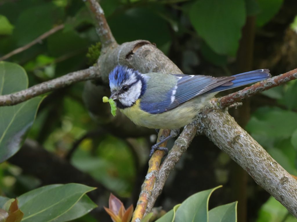 Jusqu’à maintenant, je n’ai pas vu d’oiseau nourrir sa progéniture avec des chenilles de Petite tortue mais la chenille doit bien avoir un prédateur. Les Mésanges bleues ont une prédilection pour de petites chenilles vertes, peut-être de pyrales.