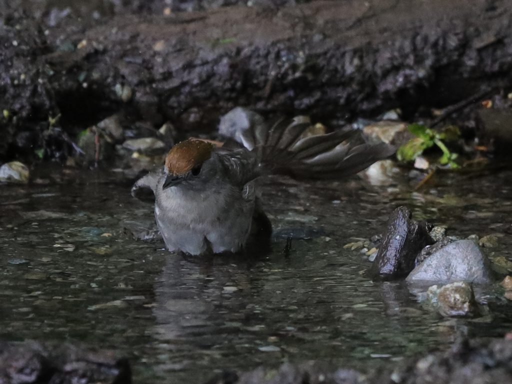 Les Fauvettes à tête noire ont-elles fini de couver ? Un mâle et une femelle sont venus prendre un bain rapide.
