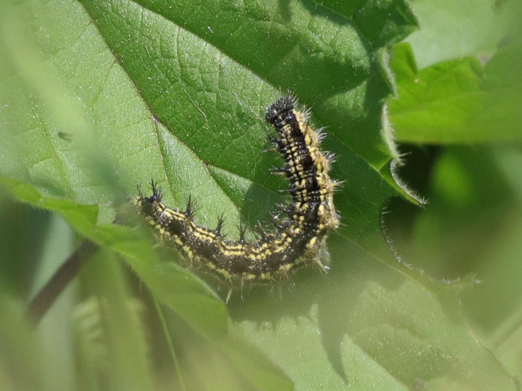 C’est aussi un insecte, pas encore développé mais ça ne tardera pas. Voici une chenille du papillon Petite tortue, Aglais urticae, qui se nourrit principalement d’orties.