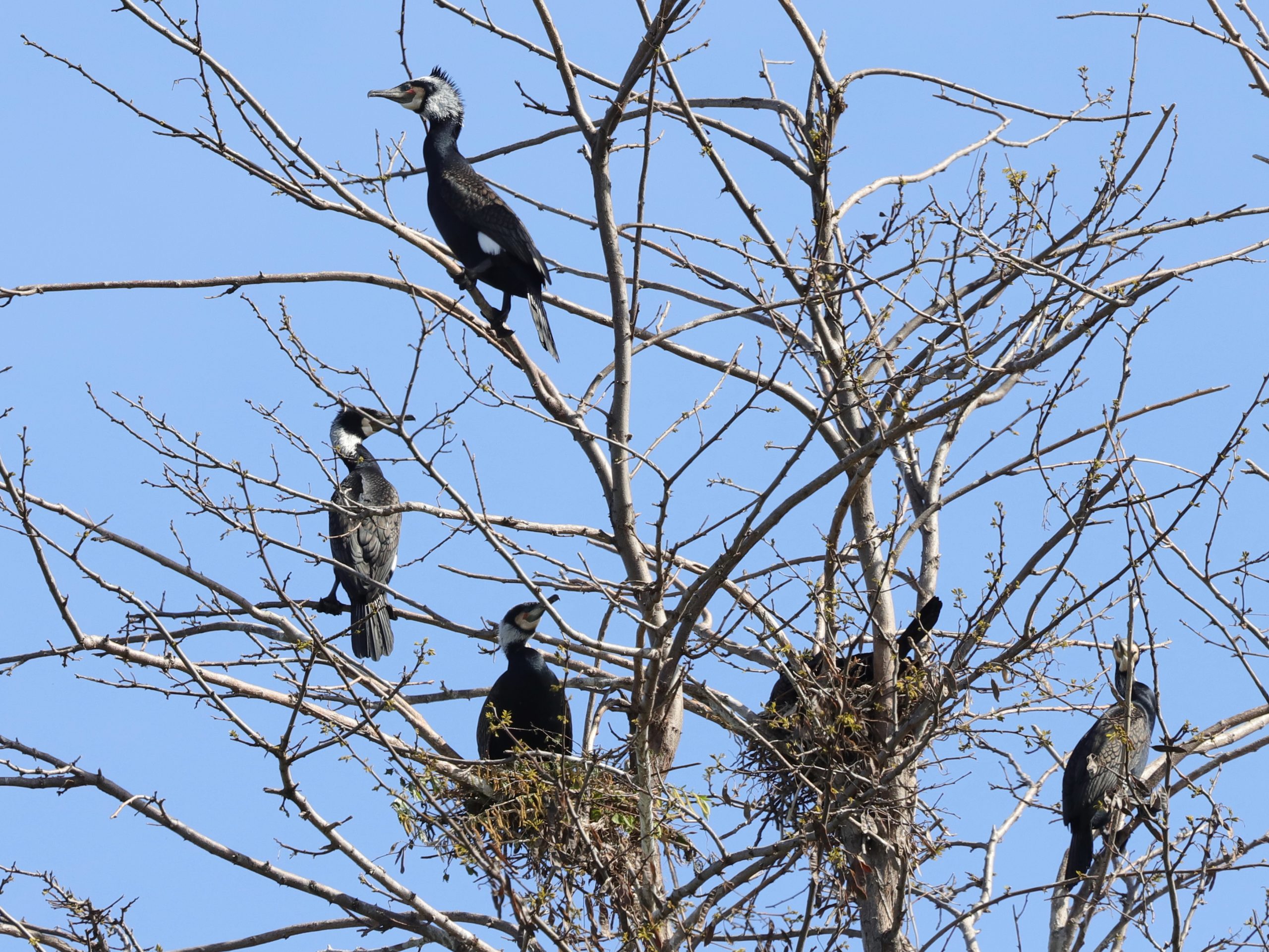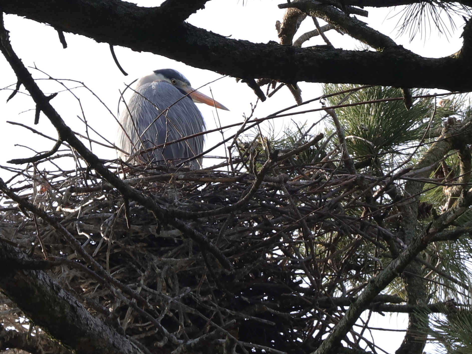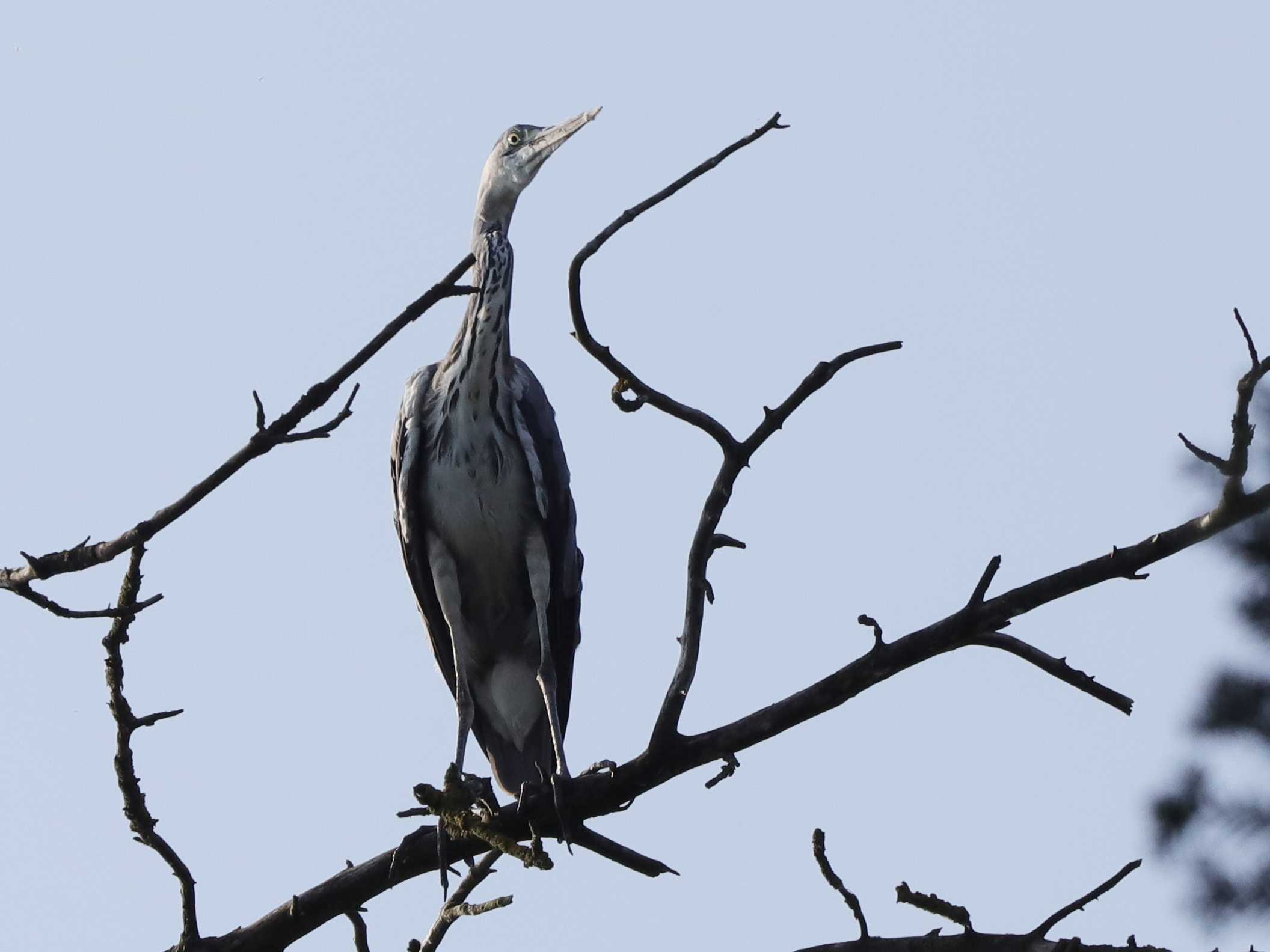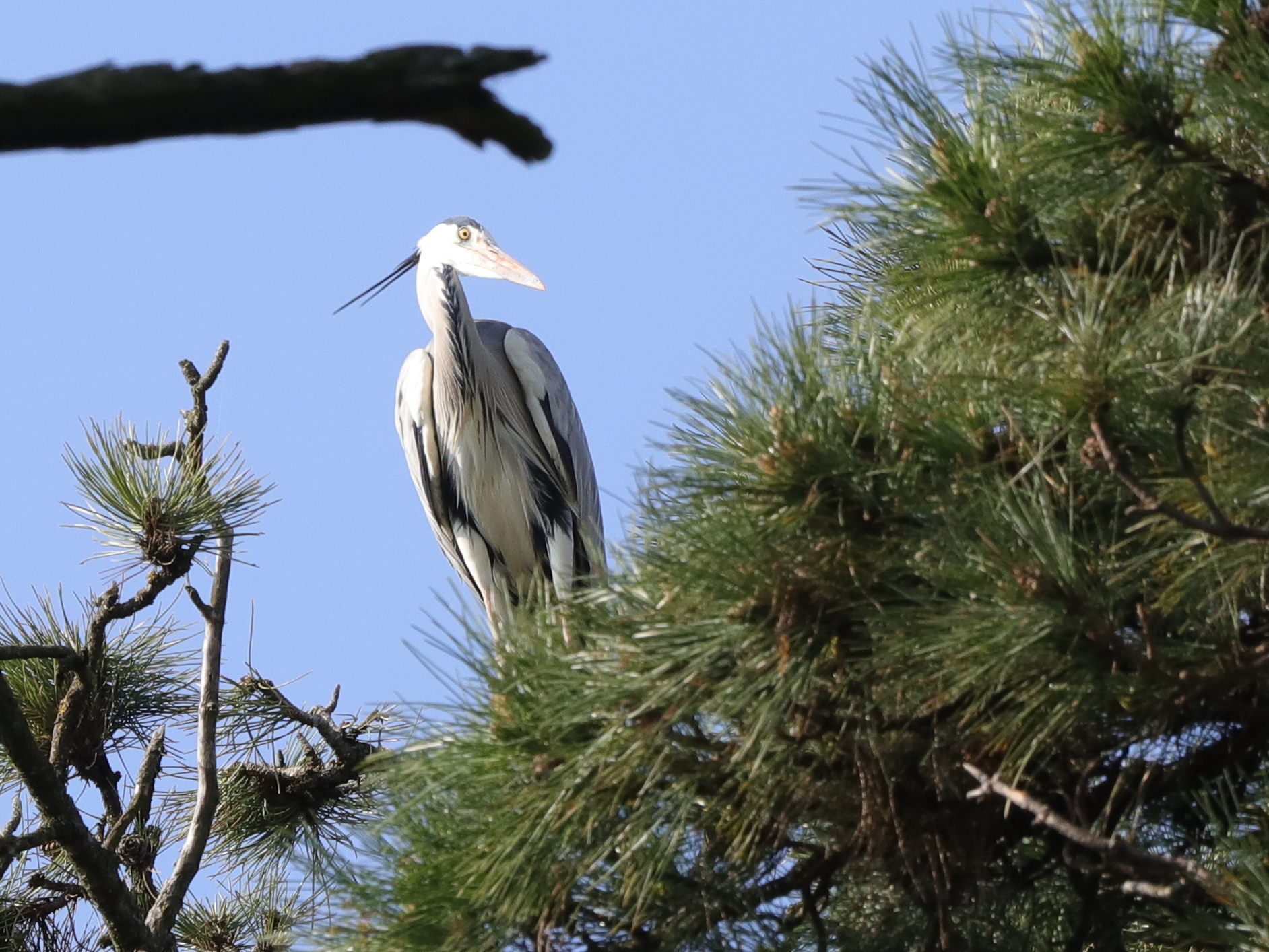 Les nids de Héron cendré s’animent chaque jour davantage avec des jeunes qui grossissent et commencent à battre des ailes. Une longue attente m’a permis de saisir une image de nourrissage. Sur la dernière photo, l’oisillon exhibe ses ailes encore incomplètes, avec les plumes encore dans leur tubes.
