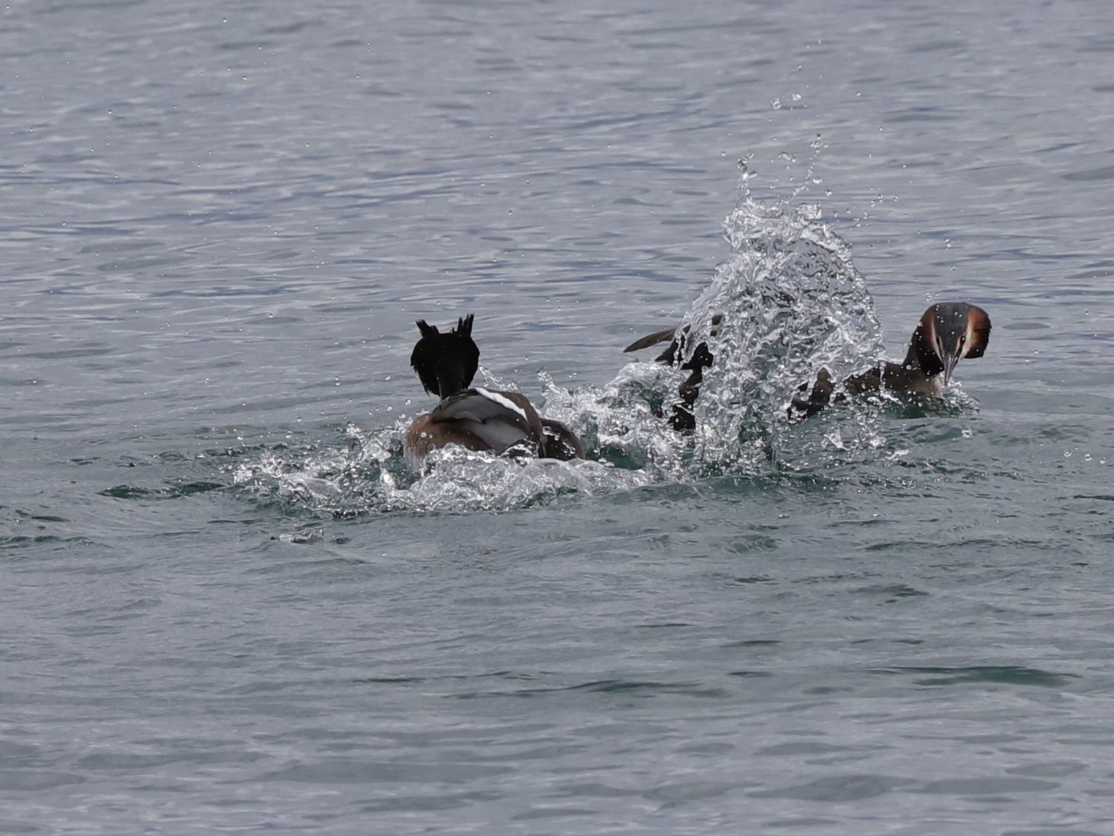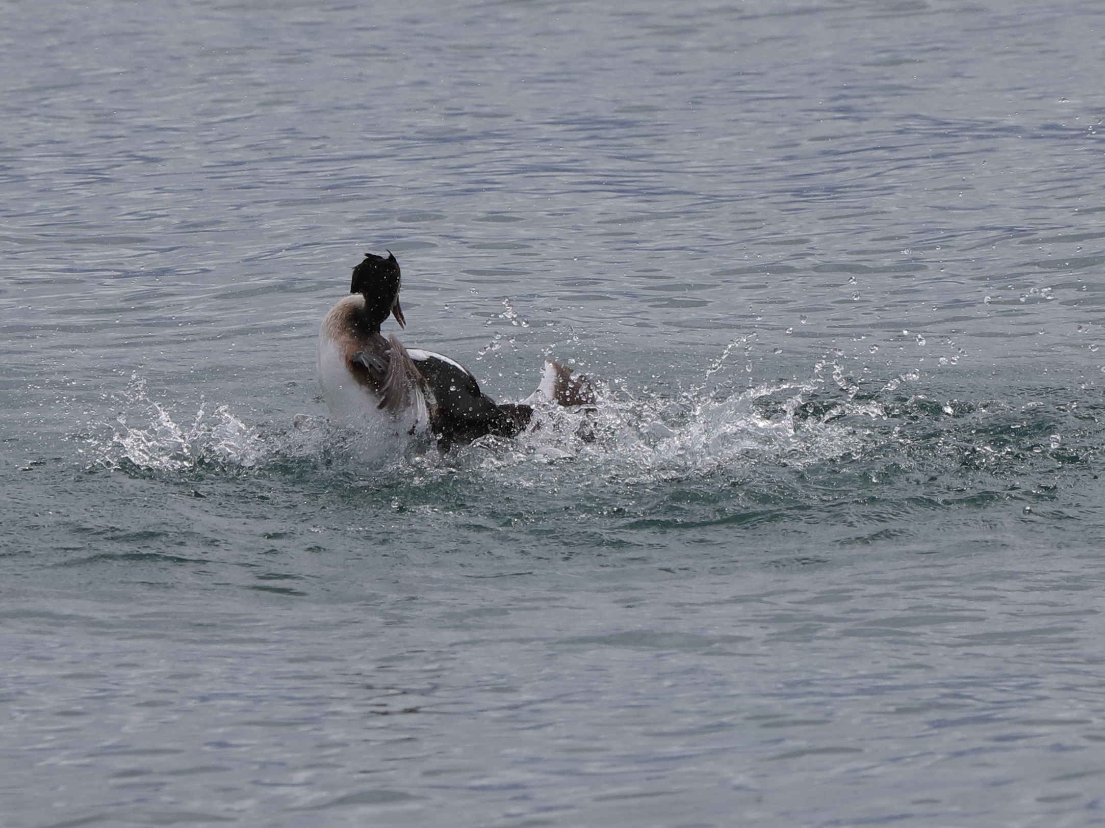Et le Foulque macroule semble vérifier la température de l’eau avant d’y aller.
