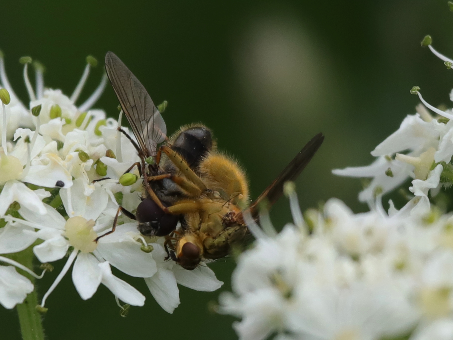 … alors que les guèpes n’hésitent pas à se poser doucement sur l’eau. On voit la tension de leurs pattes génèrent à la surface.