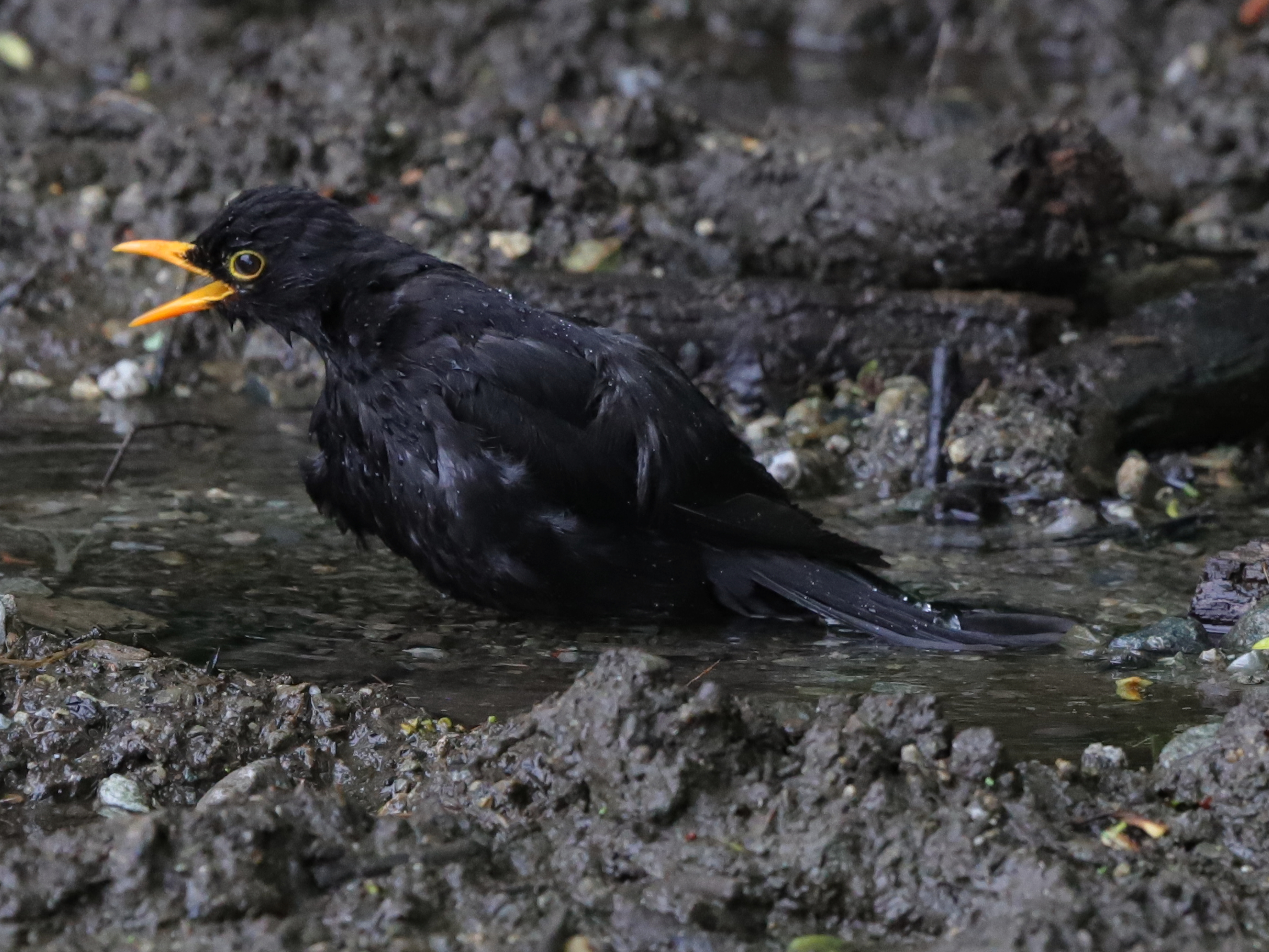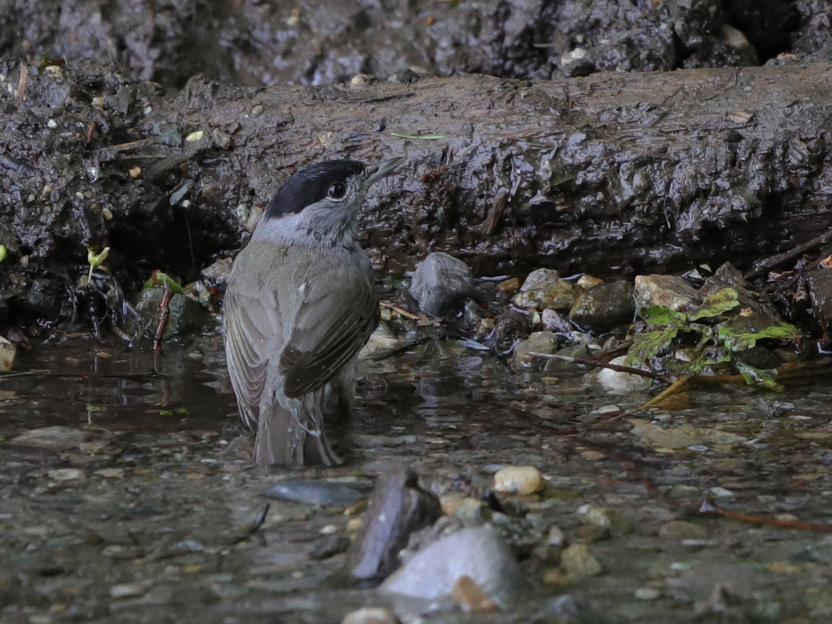 Les Fauvettes à tête noire ont-elles fini de couver ? Un mâle et une femelle sont venus prendre un bain rapide.