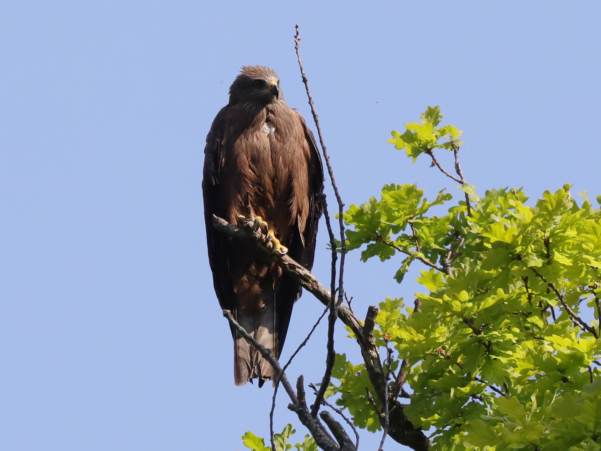 Un des nids de Milan noir est toujours occupé par une femelle immobile et discrète. D’autres oiseaux, attendent perchés ou jouent dans les ascendances entre hirondelle et avion …