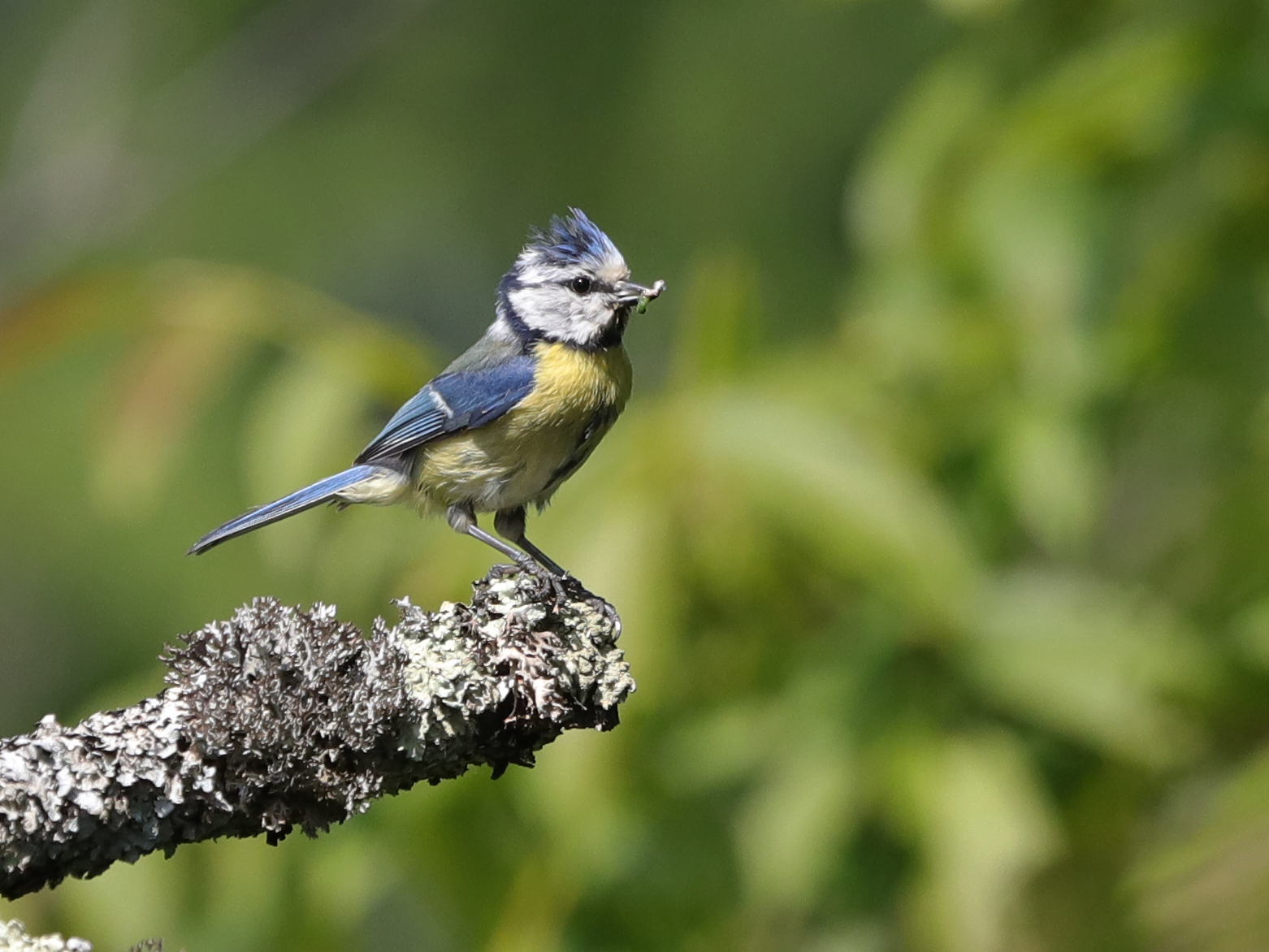 Jusqu’à maintenant, je n’ai pas vu d’oiseau nourrir sa progéniture avec des chenilles de Petite tortue mais la chenille doit bien avoir un prédateur. Les Mésanges bleues ont une prédilection pour de petites chenilles vertes, peut-être de pyrales.