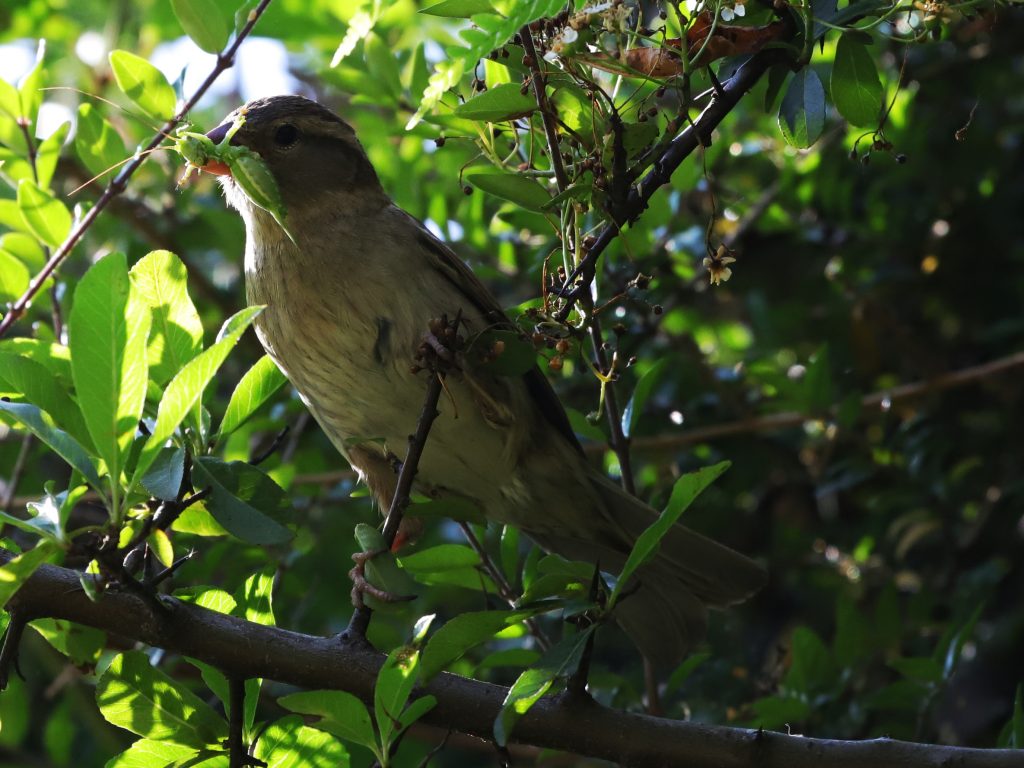 Des Moineaux domestiques chassent des insectes ou picorent des graines dans les hauts herbes.
