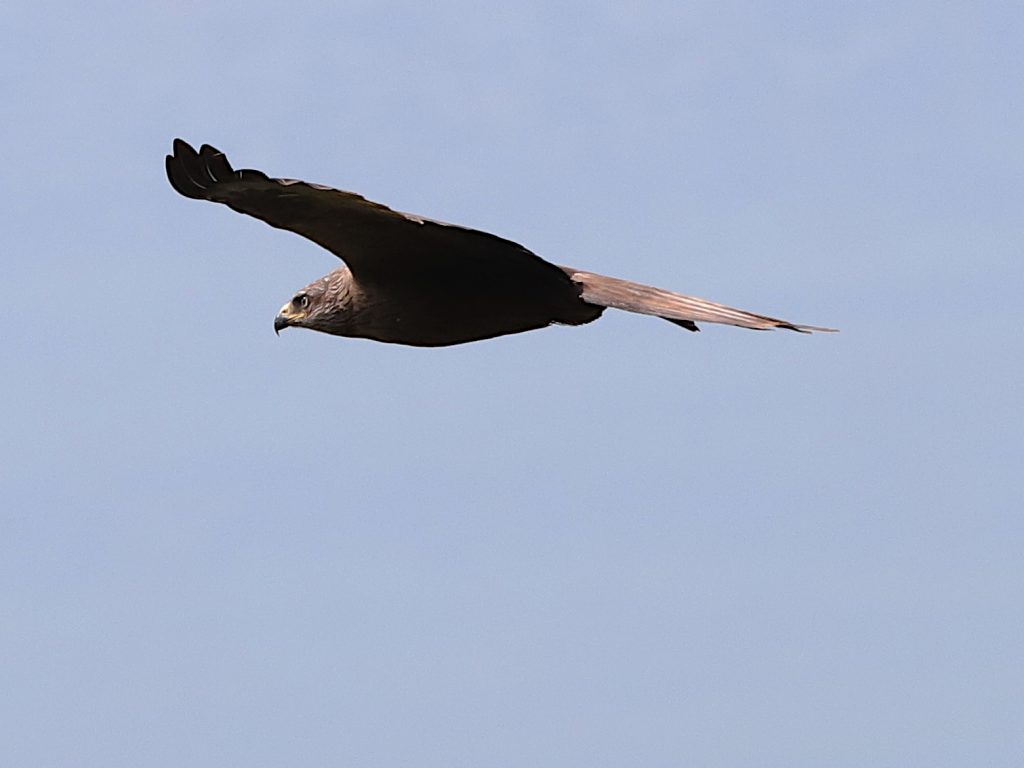 Quelle tristesse de voir un grand rapace en mauvaise santé. Ce Milan noir n’arrivera probablement pas au terme de sa migration vers l’Afrique. Son plumage très abimé lui rendra le vol fatigant, si toutefois il survit encore les trois à quatre semaines qui restent avant le grand départ.