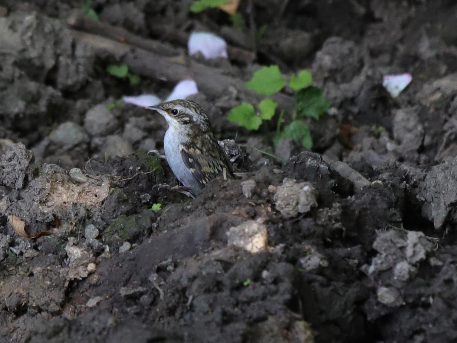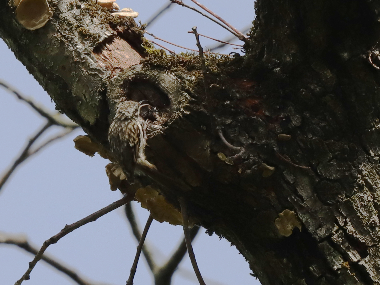 Un Grimpereau – des jardins, je crois, car il a l’ongle postérieur plutôt court – court le long d’un tronc à la recherche d’insectes.