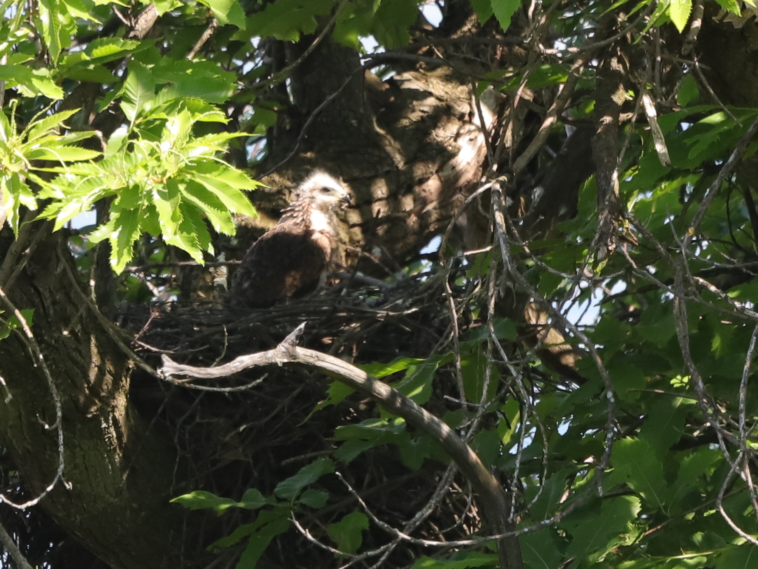 Les jeunes Hérons cendrés sont beaucoup moins pressés de quitter les nids. Ils passent leur temps à caqueter, à se lisser les plumes , à se chamailler parfois, en attendant qu’un adulte vienne les nourrir. Il leur faut de la patience : en plus d’une heure d’observation, pas un adulte n’est venu au ravitaillement.