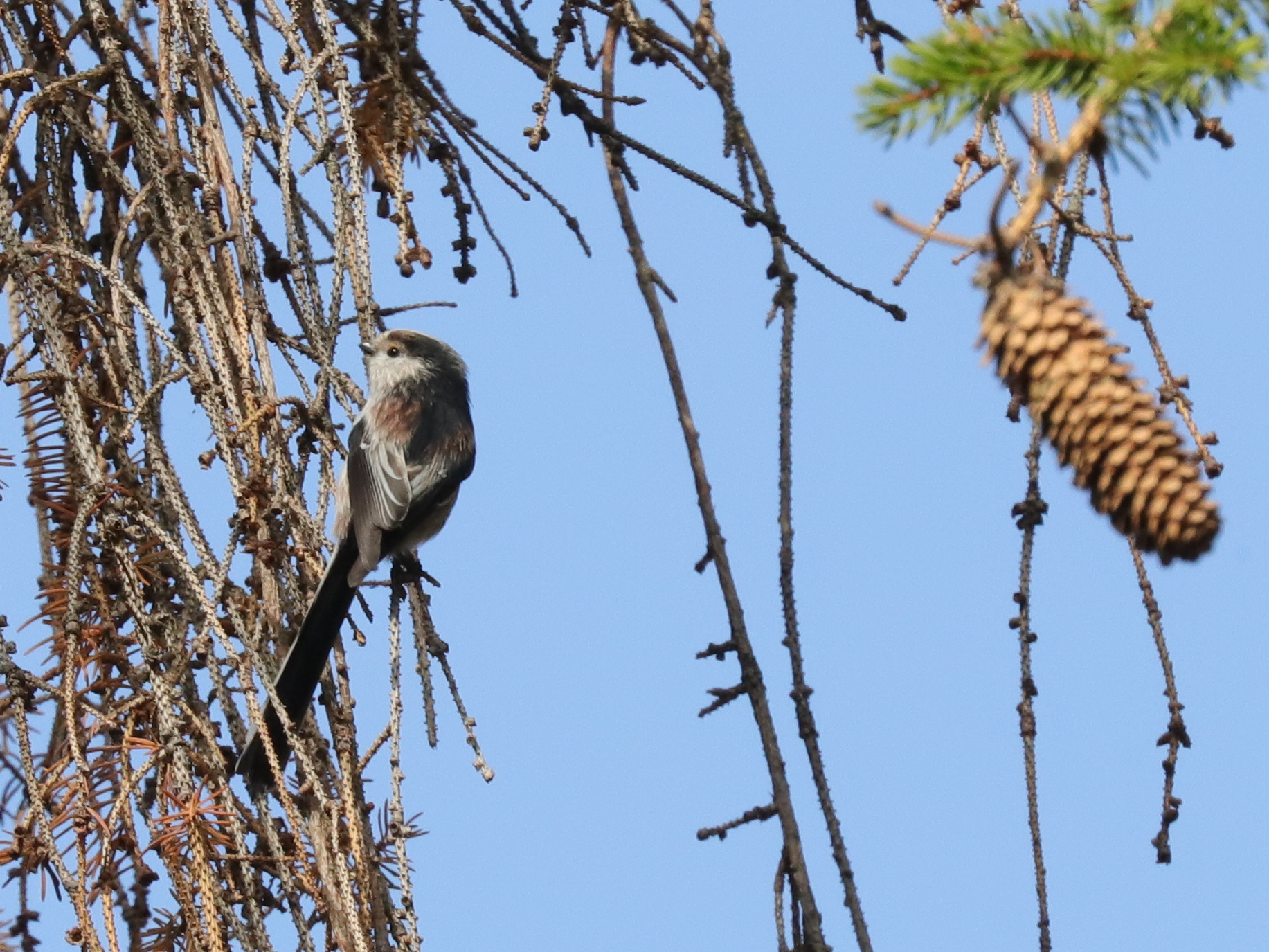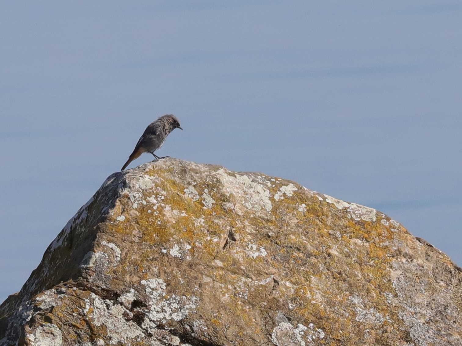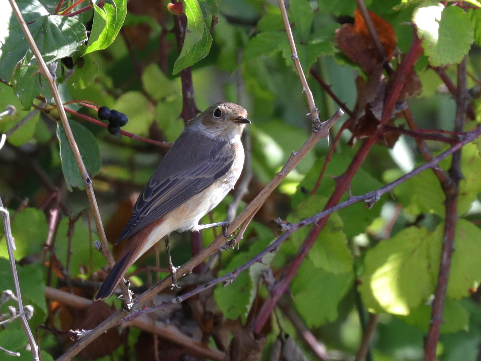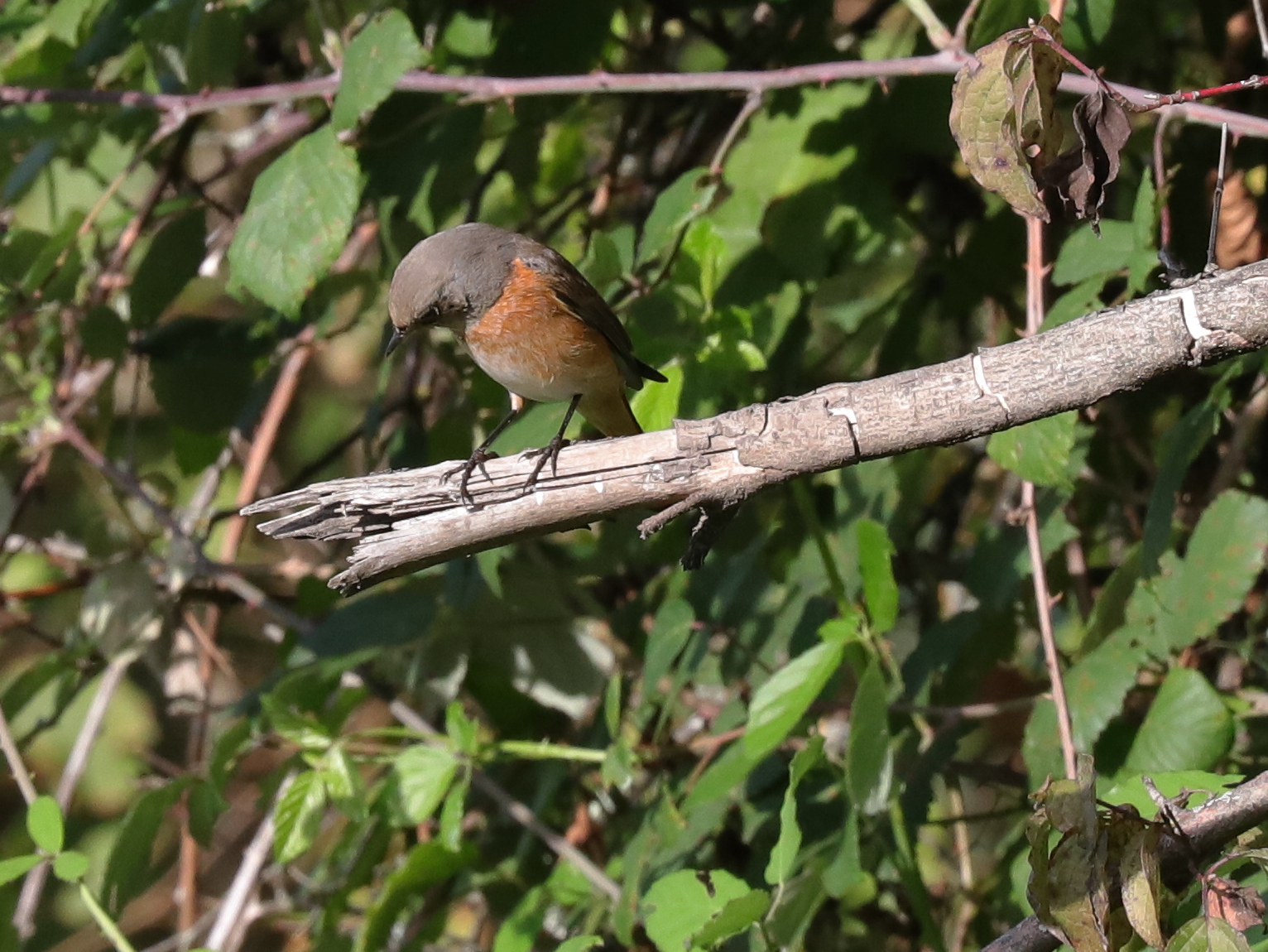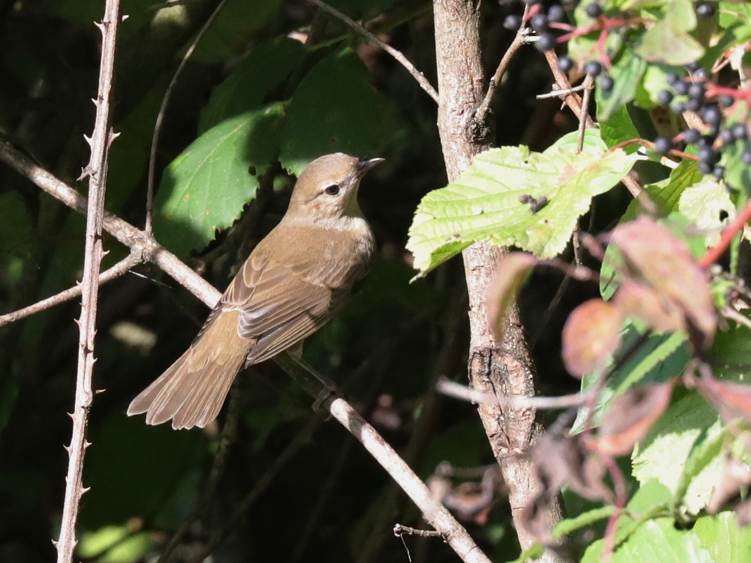 Il y a quelques Fauvettes à tête noire, ici une femelle, qui prospectent les buissons. C’est un oiseau insectivore mais qui passe à un régime plus varié comprenant mûres, et autres petits fruits à l’automne. Il s’agit de prendre de l’énergie avant la migration.
