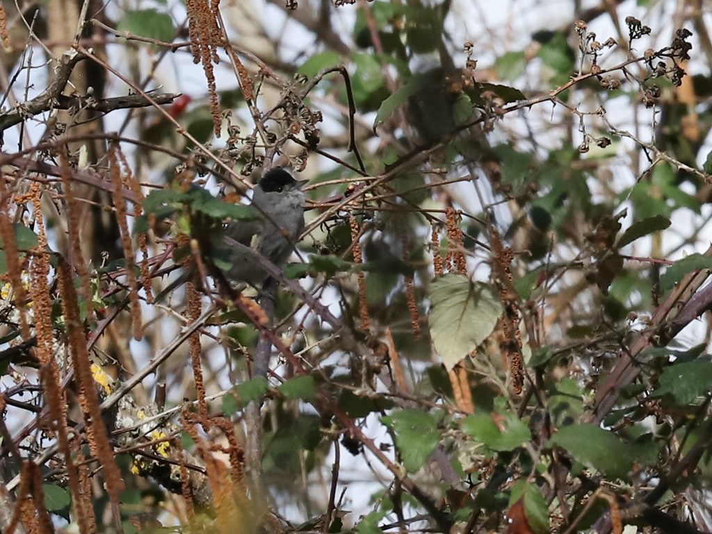 Tiens, un insectivore qui picore aussi volontiers dans les baies et les fruits, la Fauvette à tête noire – ici un mâle.