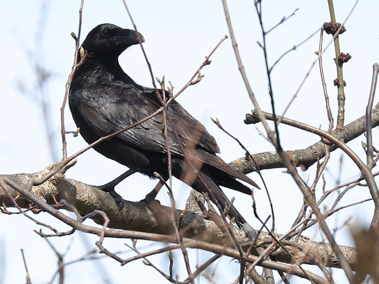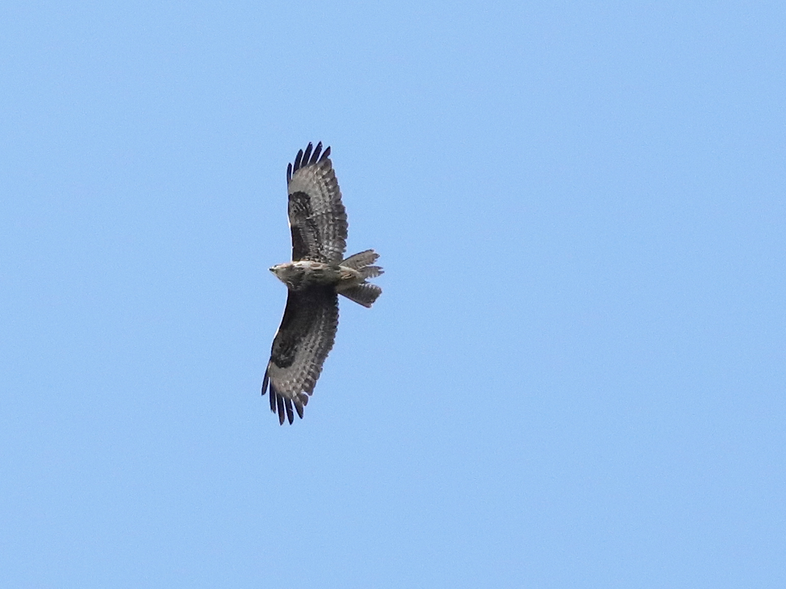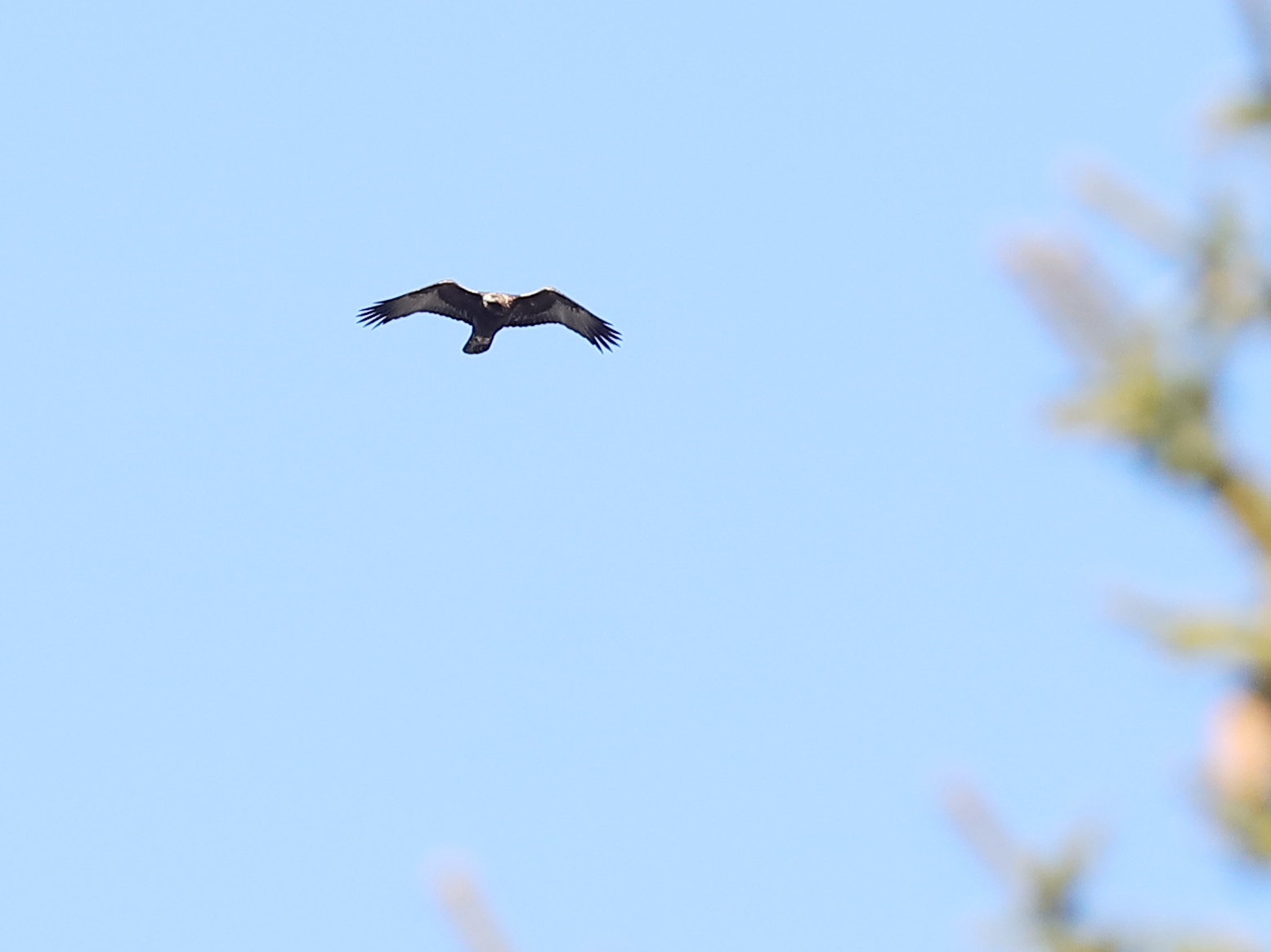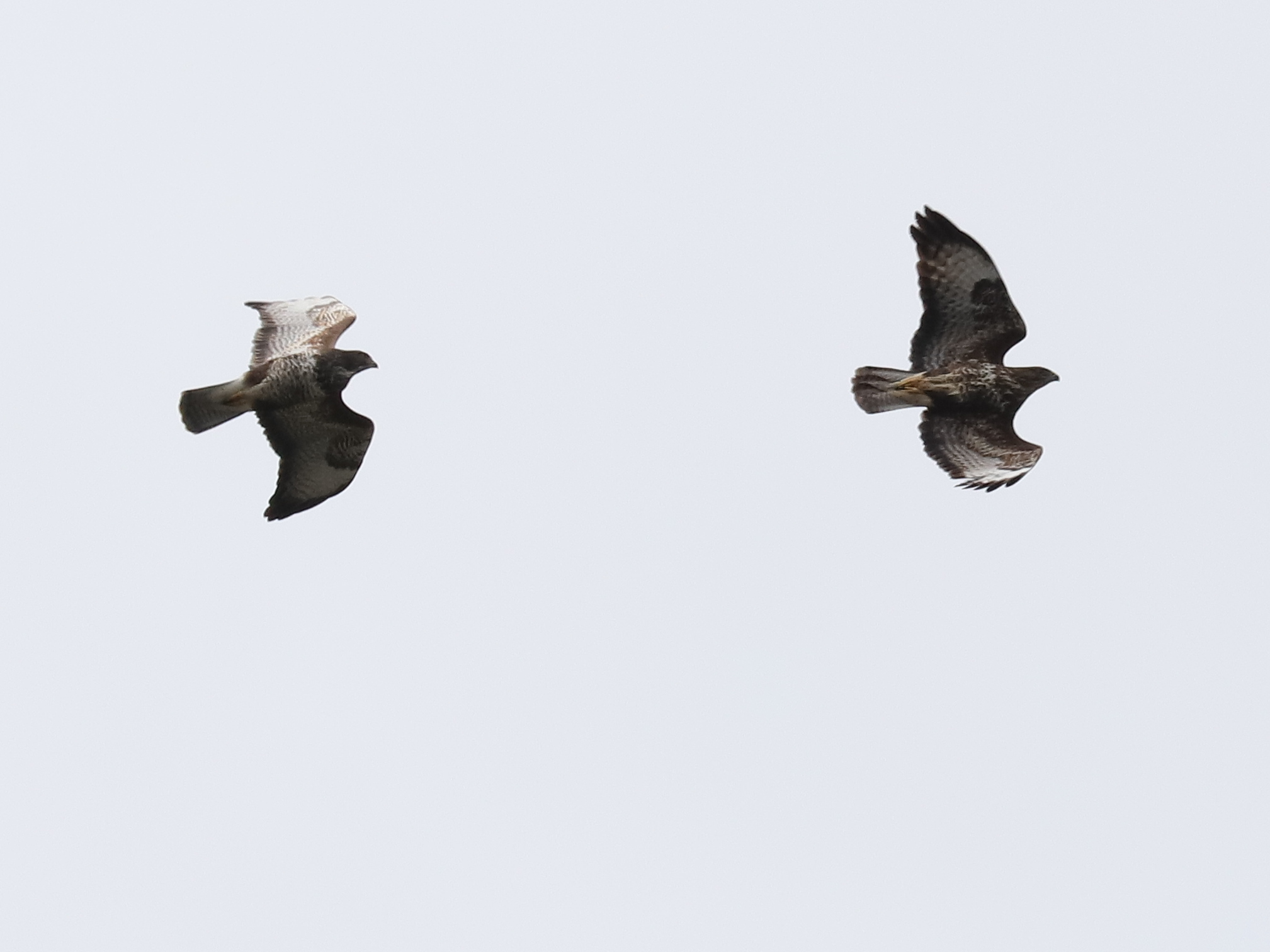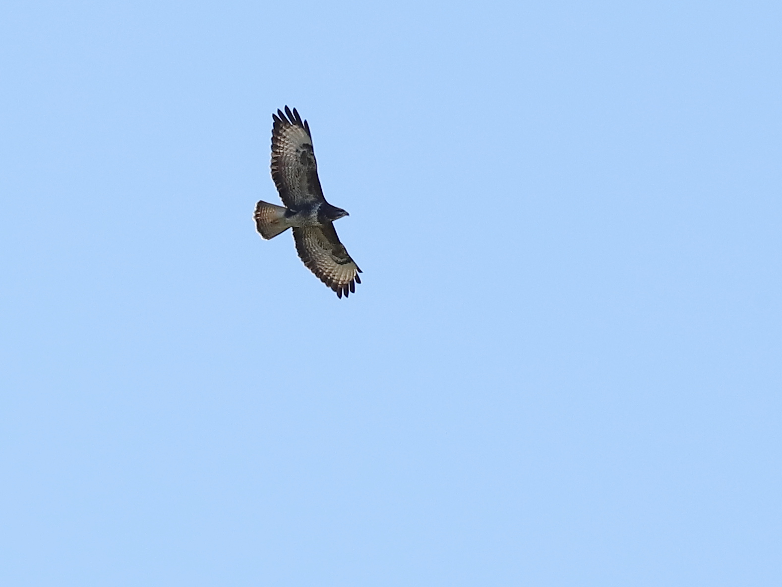 J’ai pu saisir au vol un Grand corbeau et une Buse variable, ce qui montre bien que ces deux oiseaux ont à peu près la même taille. Puis un Grand corbeau a bien voulu me survoler d’assez près pour un portrait dans de bonnes conditions.