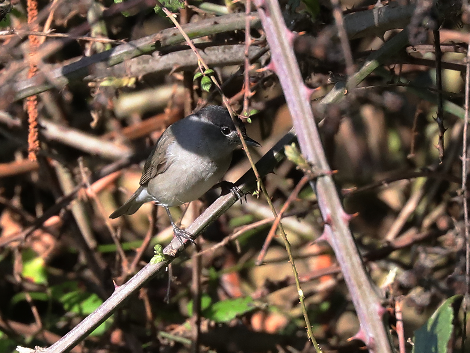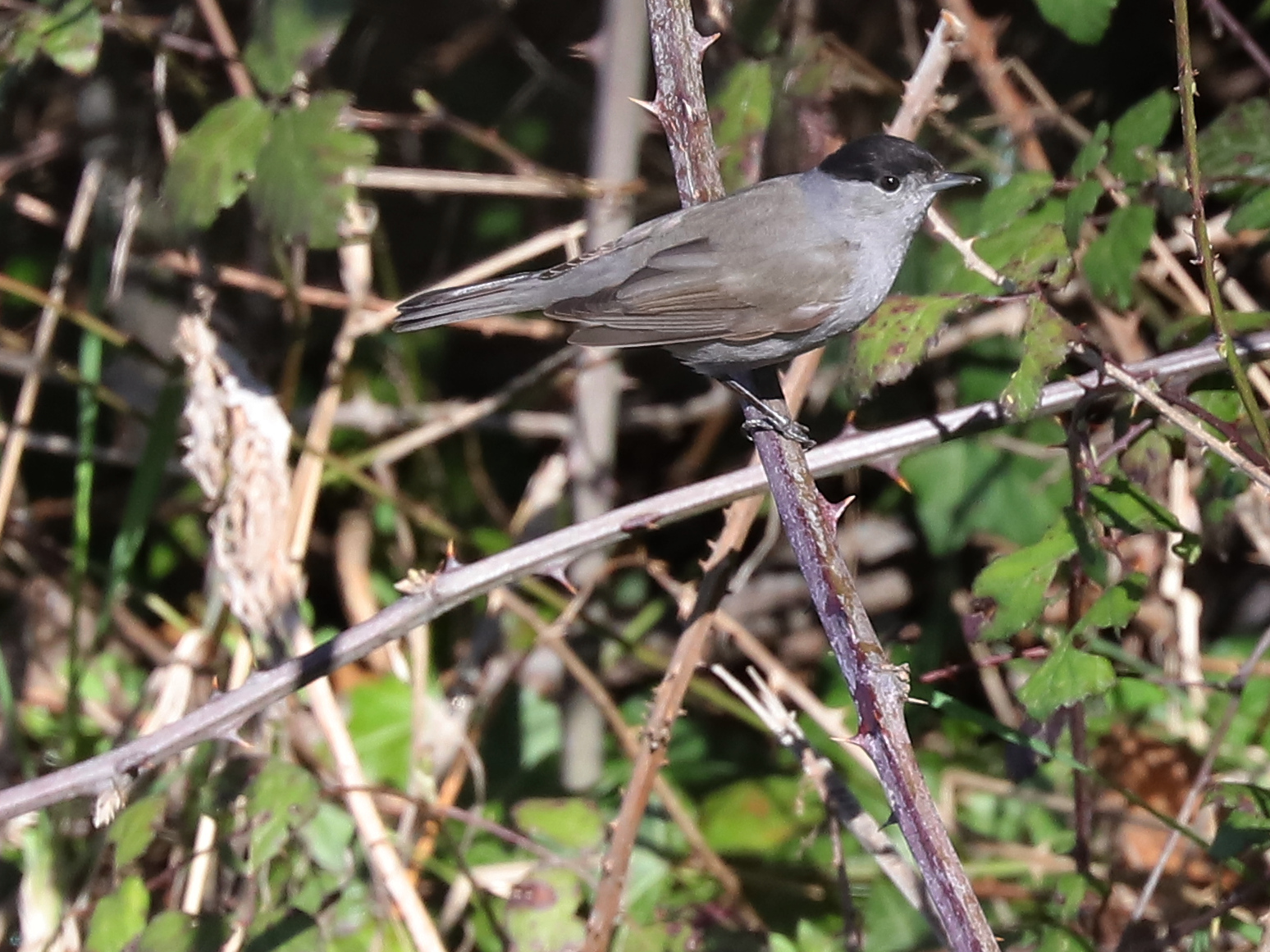 Tiens, un insectivore qui picore aussi volontiers dans les baies et les fruits, la Fauvette à tête noire – ici un mâle.