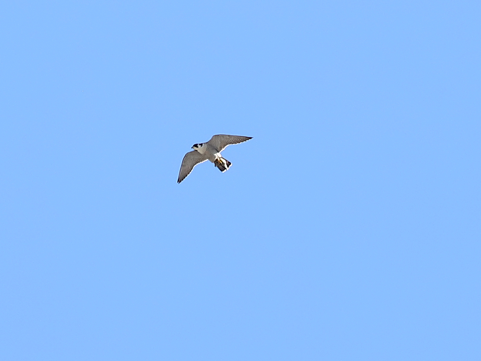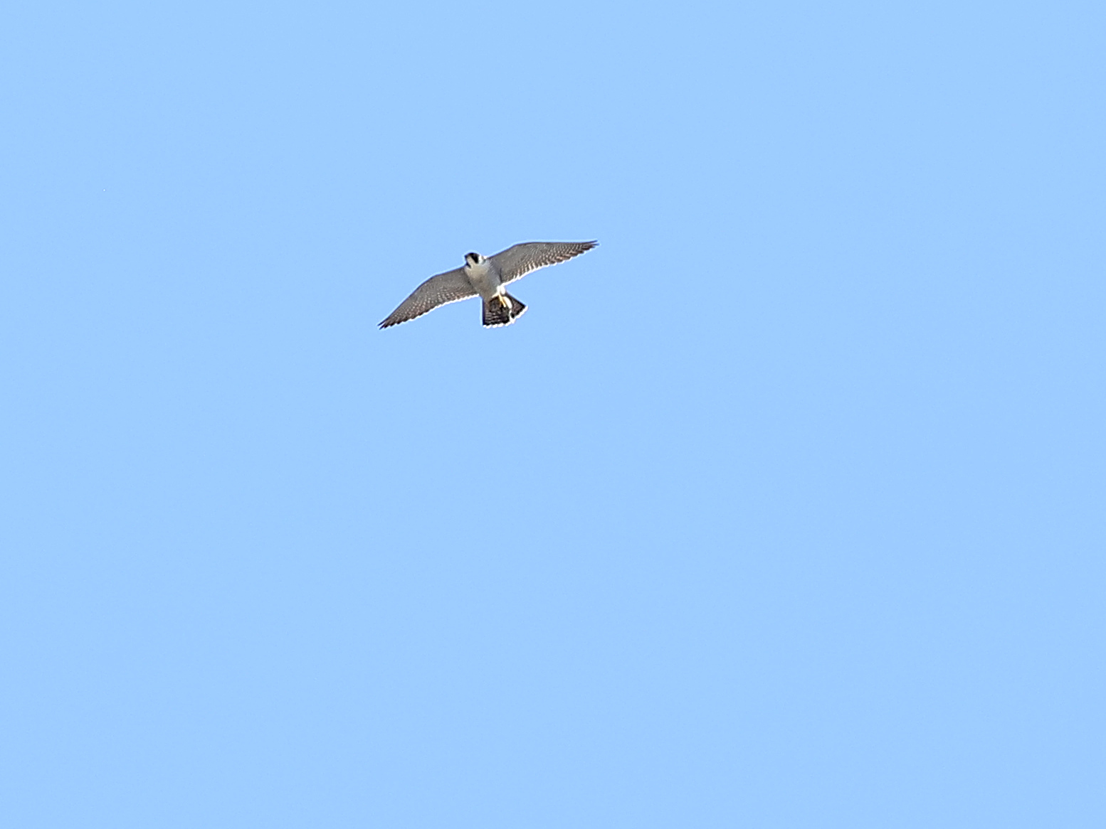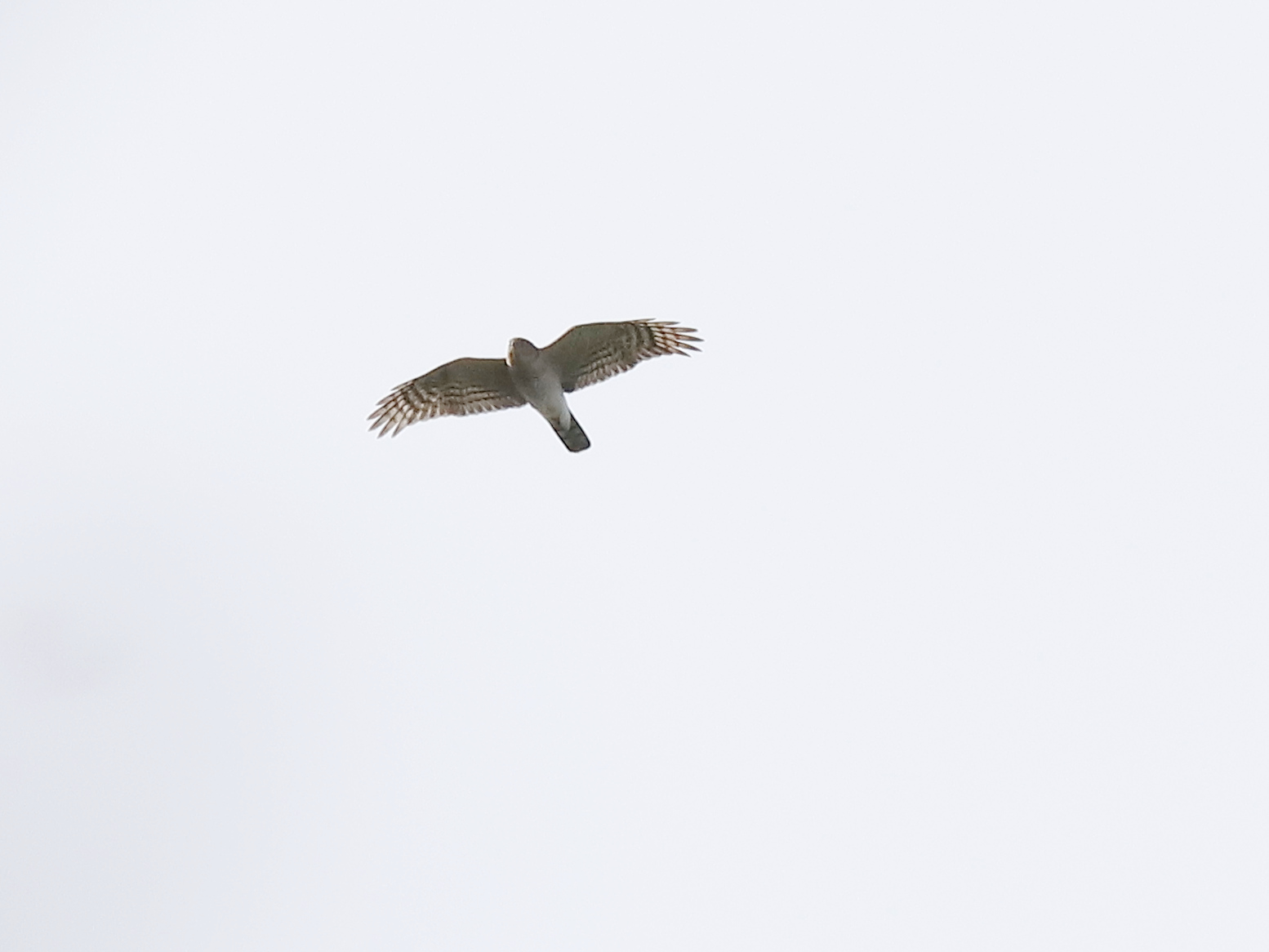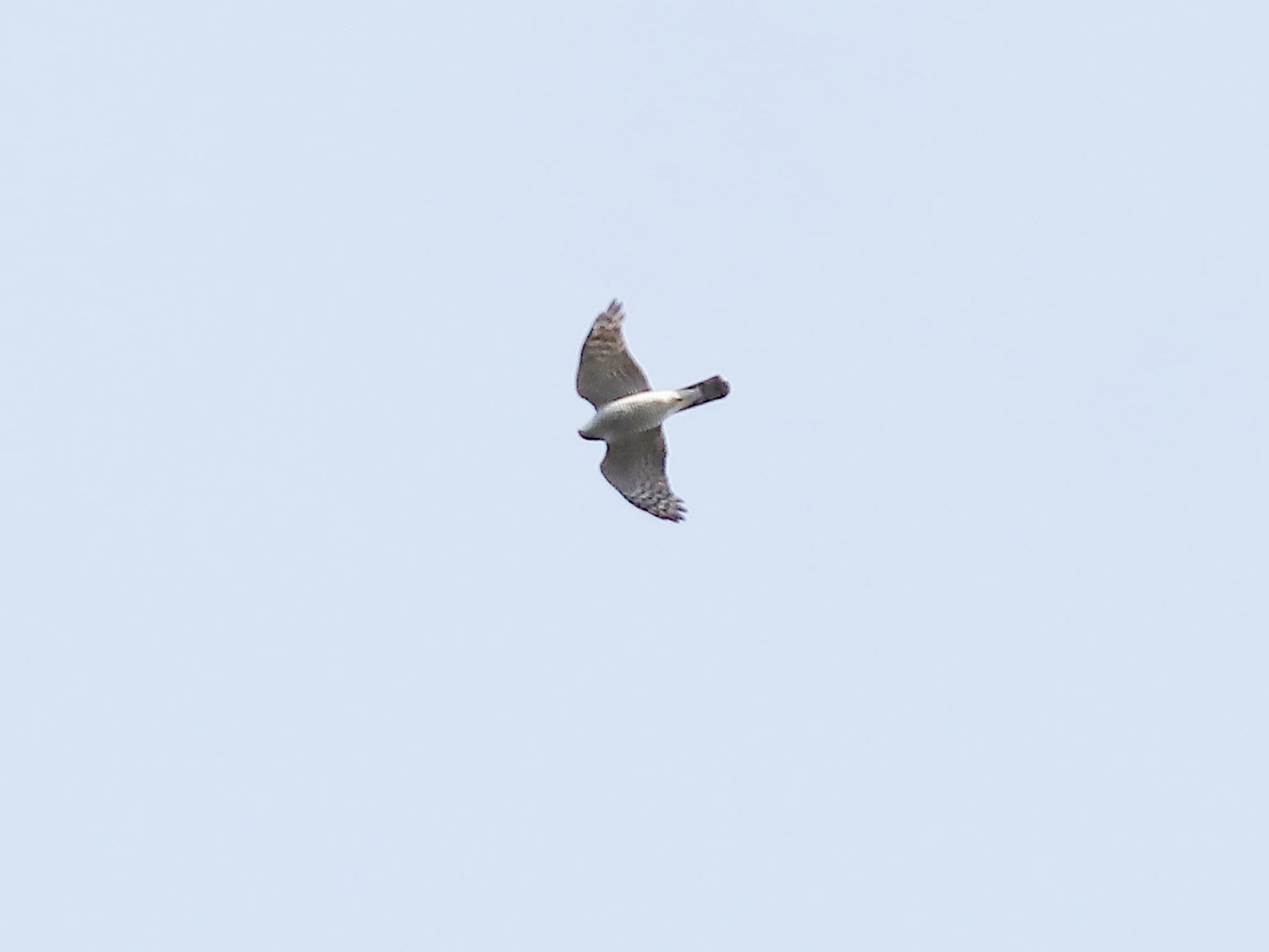 en premier, vu de très loin, un Busard Saint Martin, mâle, reconnaissable à l’extrémité noire des ailes et le bord de fuite des ailes noir également.
