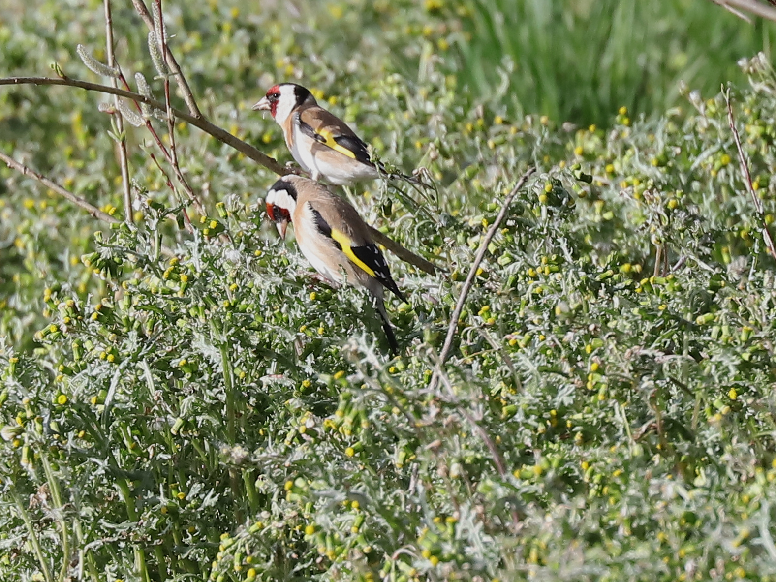 Plutôt granivores – ou végétariens – il y a les Chardonnerets élégants …