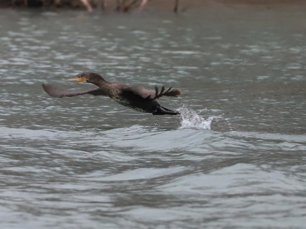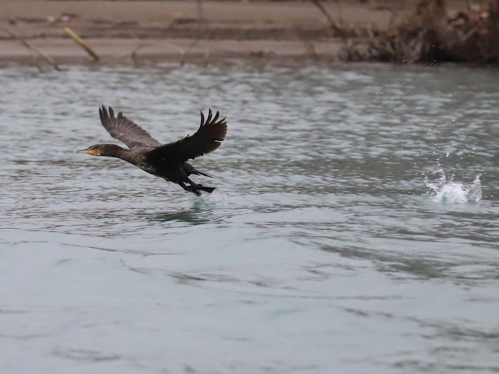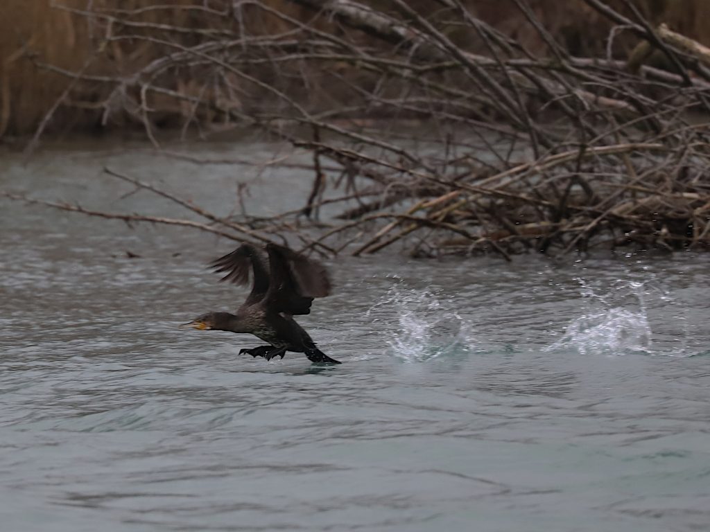 Décollage du Gand cormoran : c’est une affaire qui demande une certaine distance libre car il s’aide de ses pattes pour donner plus de poussée.