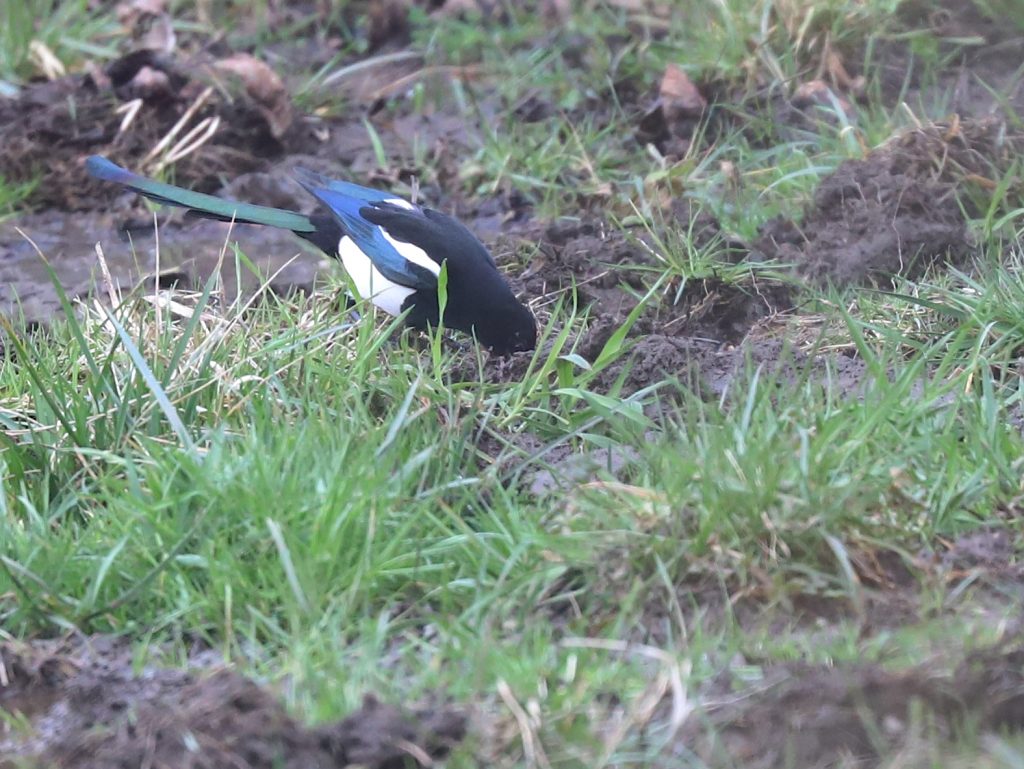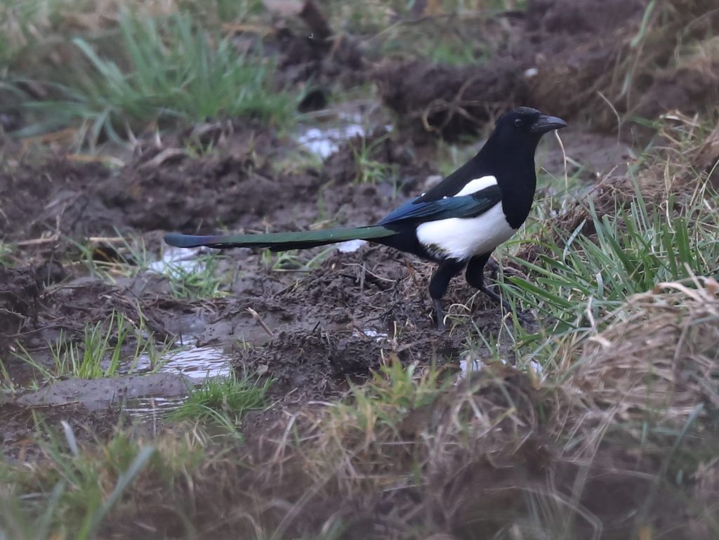 La Pie bavarde est un oiseau que l’on voit plutôt en noir et blanc. La photo permet de voir qu’il y a beaucoup plus de couleurs, du vert au violet. Et encore, il n’y avait pas de soleil.