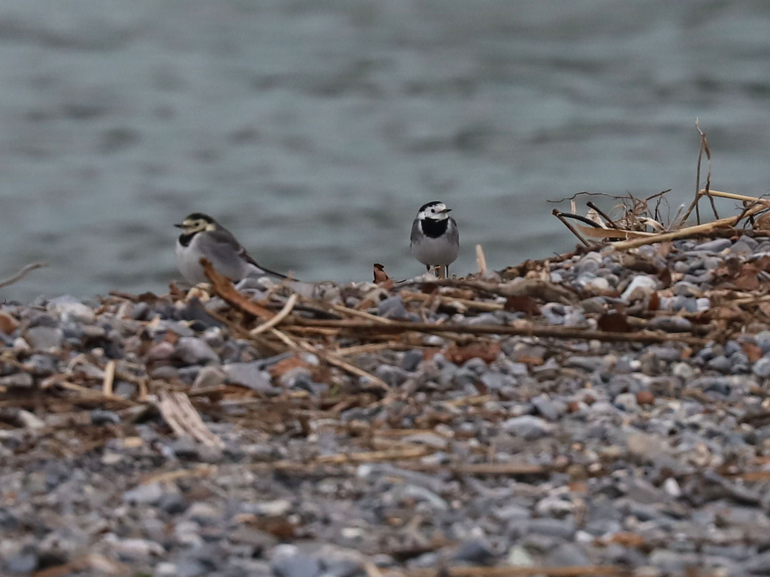 Direction le lac, avec des Bergeronnettes grises sur la rive.