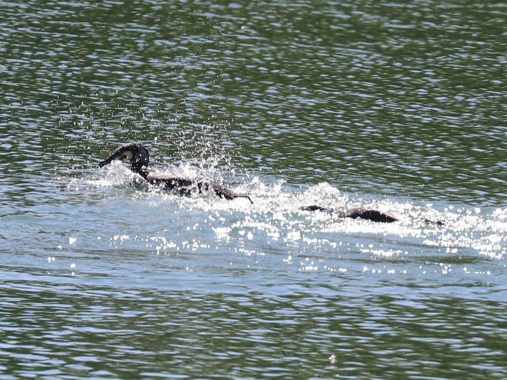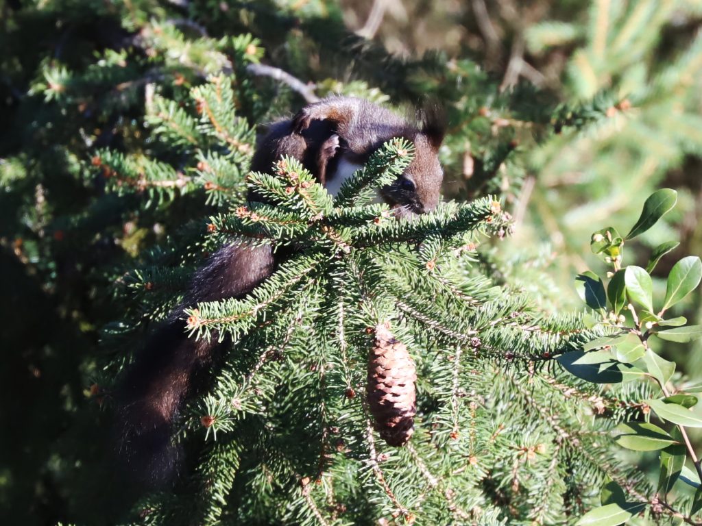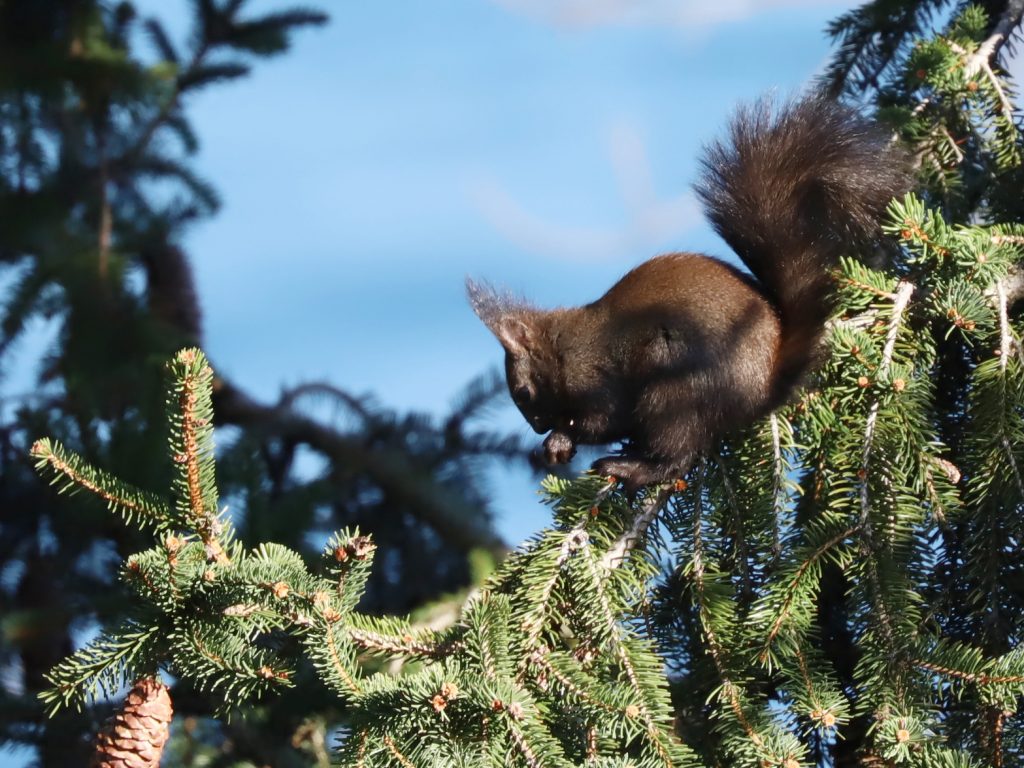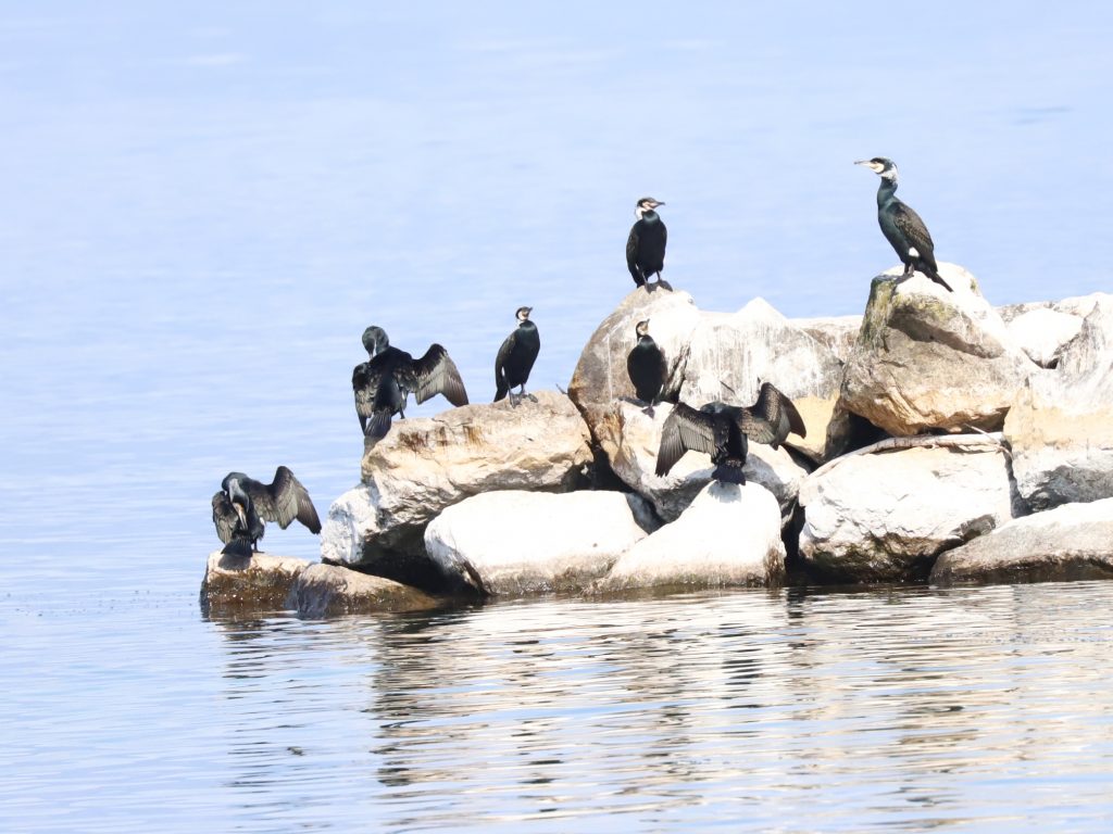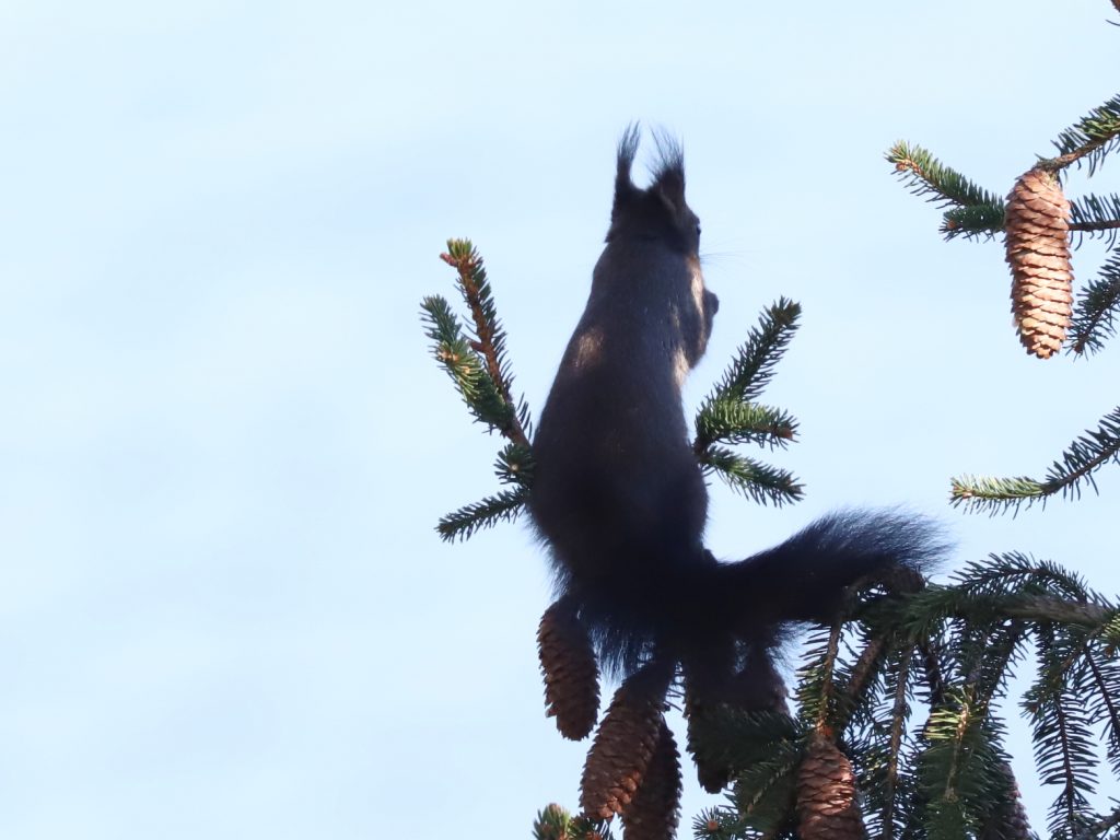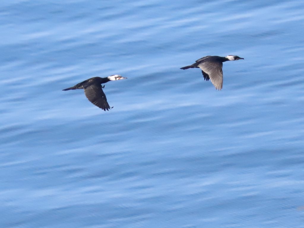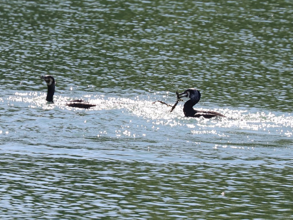 Pour terminer, voici la curiosité de la semaine. Trois corvidés sont passés, en cerclant dans un thermique. Vue la distance je n’en suis pas certain, mais le bec clair m’oriente vers le Corbeau freux Corvus frugilegus, que je n’avais encore jamais vu à Lugrin. Soudain, un autre oiseau s’est joint à la spirale, un Faucon crécerelle Falco tinnunculus. Encore plus soudainement, tout le monde a disparu.