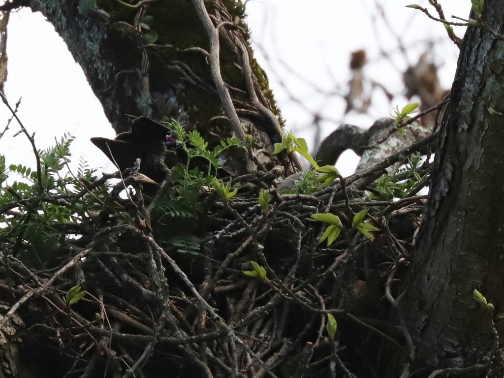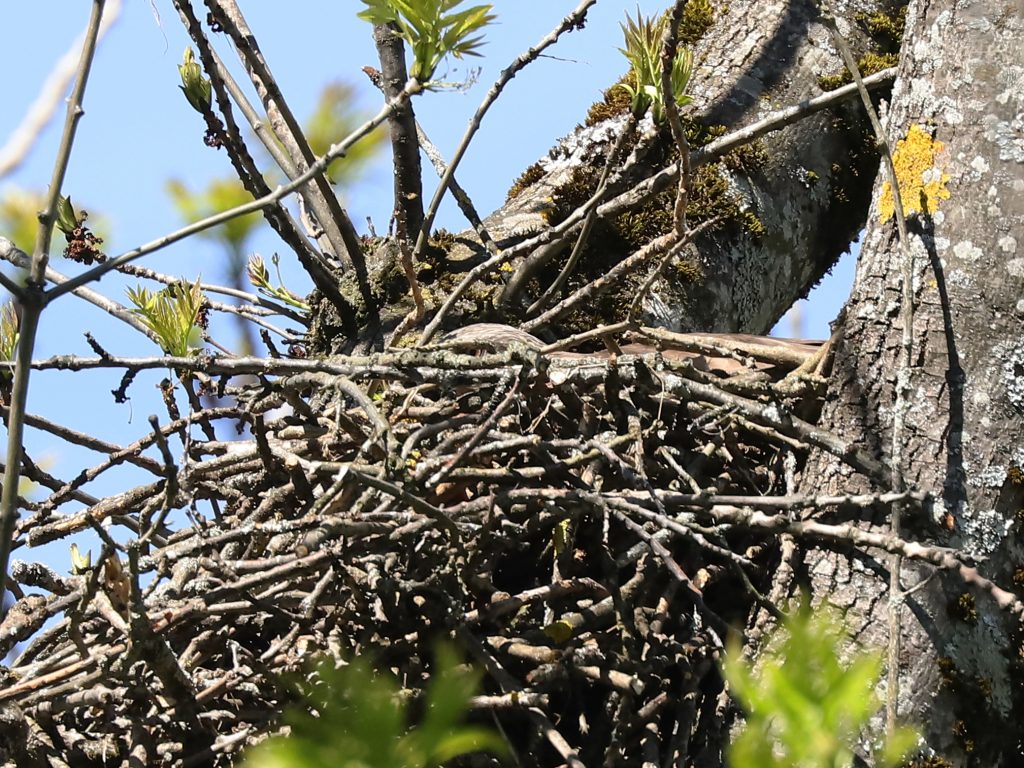 En plus des trois nids présentés la semaine dernière, en voici un quatrième, placé en contrebas de la route. Ceux qui suivent ce blog depuis plus d’un an savent que ce nid reste visible jusqu’à l’envol des jeunes. Il y aura donc encore d’autres photos de ce nid dans les semaines à venir.