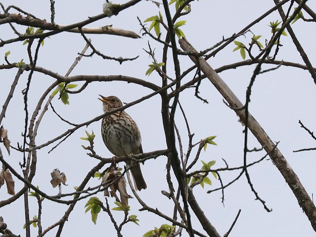 Voici une Grive musicienne Turdus philomelos, reconnaissable aux taches en forme de pointe de lance.