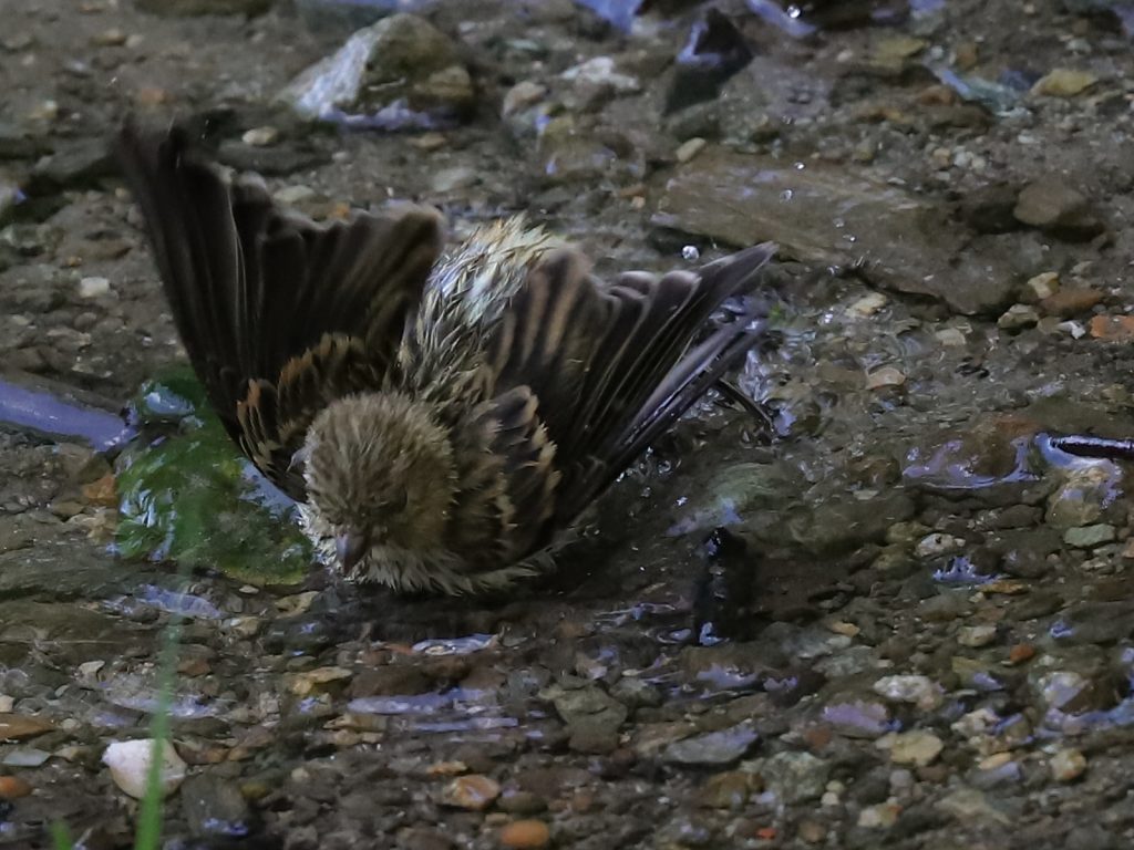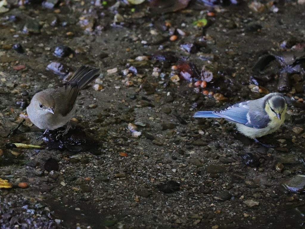 … une autre femelle de Fauvette à tête noire Sylvia atricapilla, qui attend le départ d’un Gobemouche noir Ficedula hypoleuca pour prendre son bain …