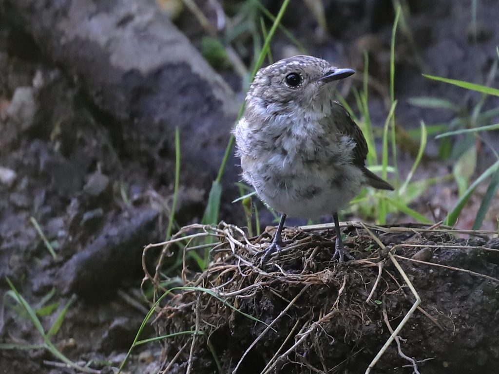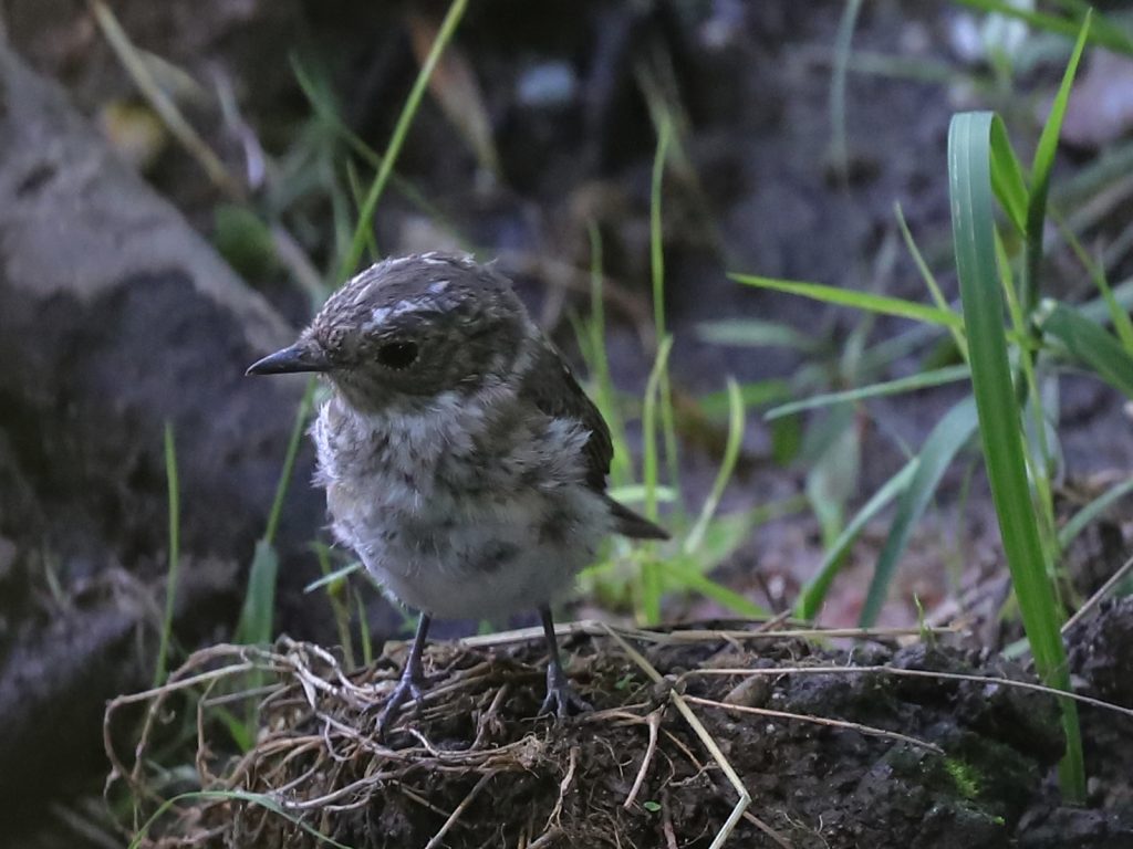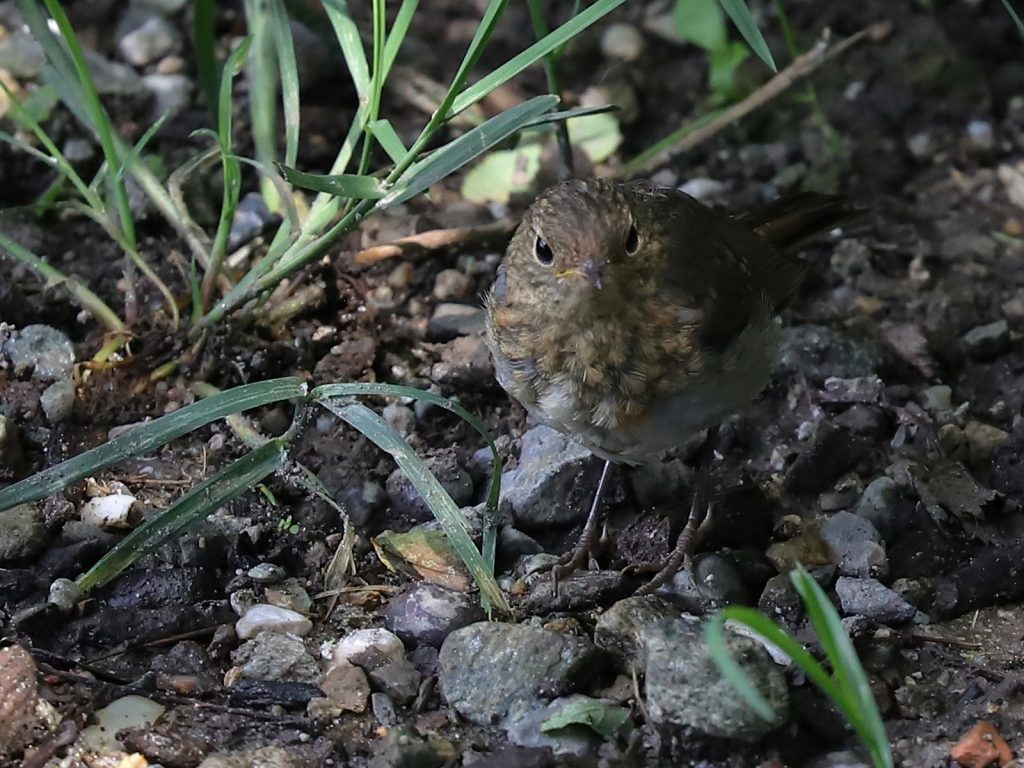 … et un Rougegorge familier Erithacus rubecula, jeune de l’année, qui n’a pas encore son plumage coloré.