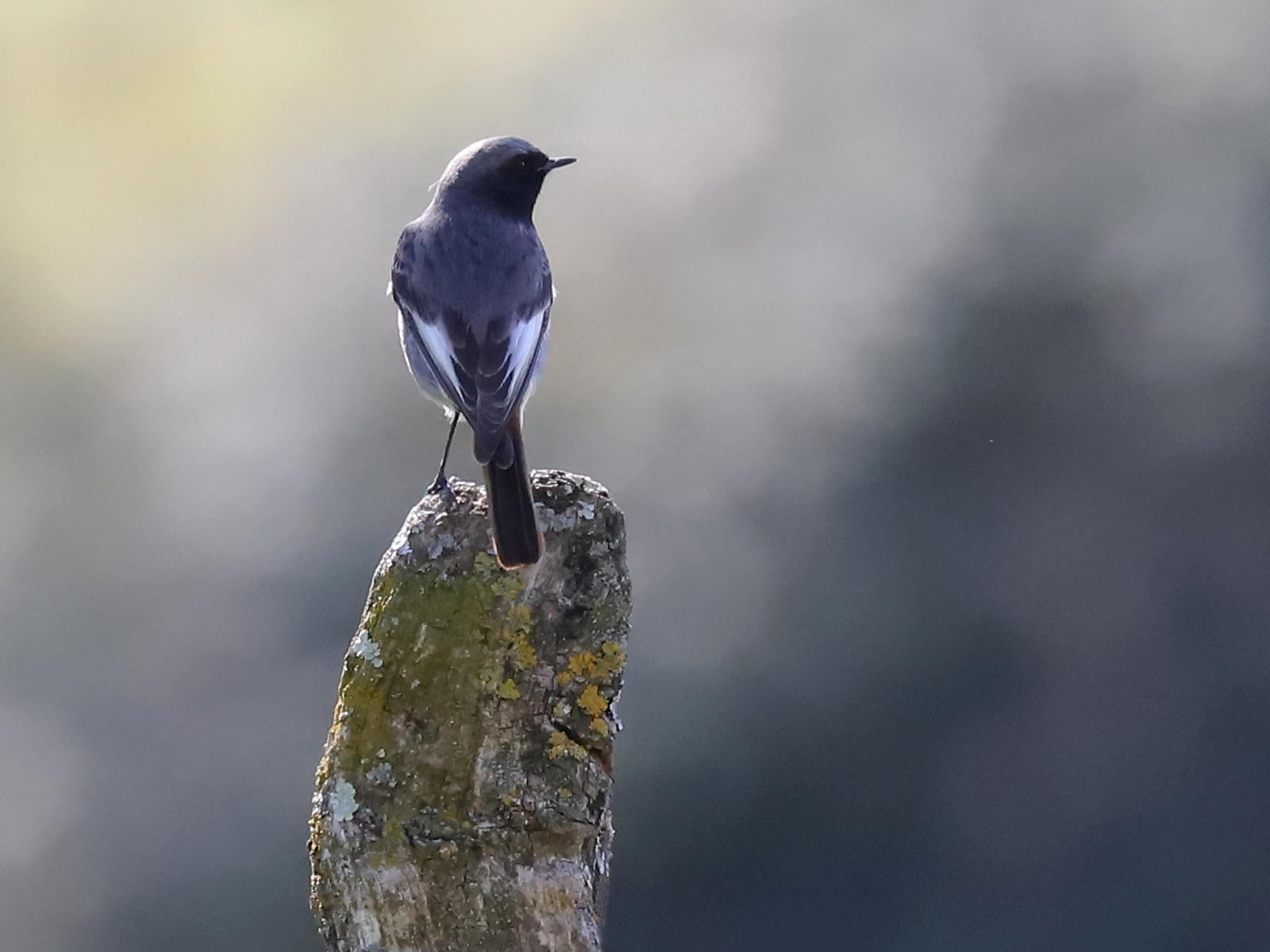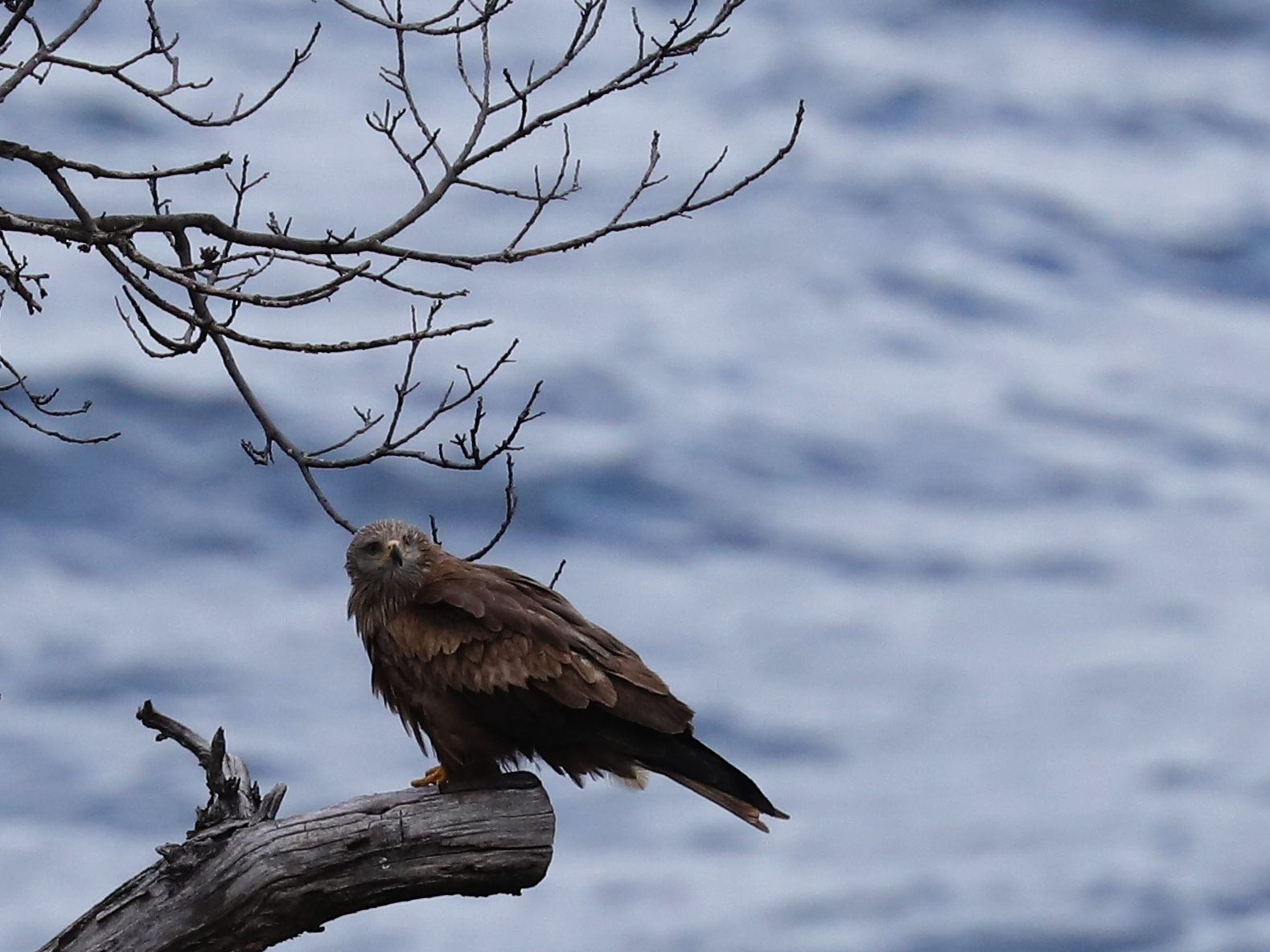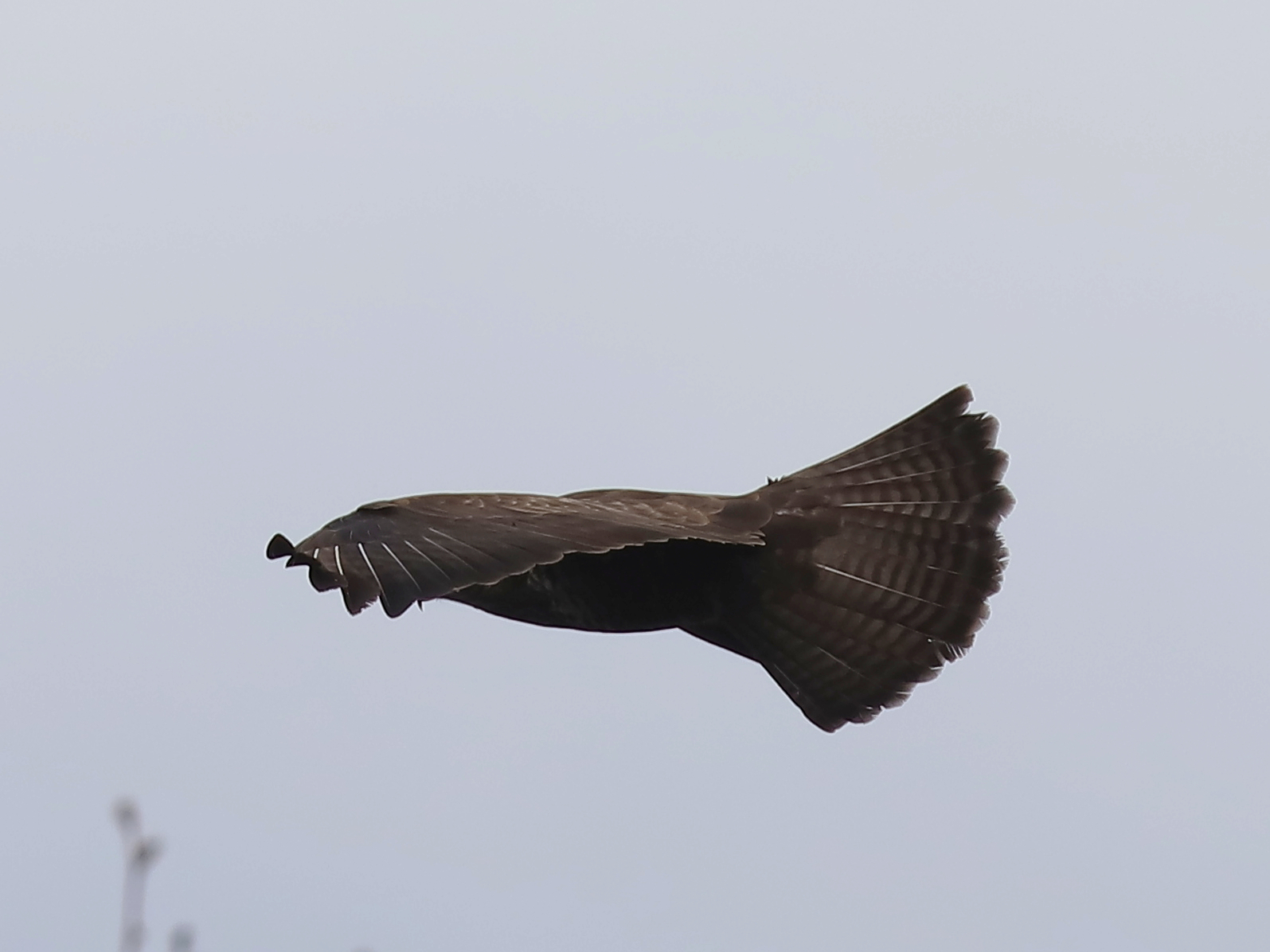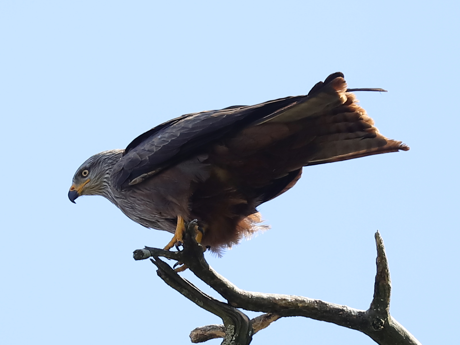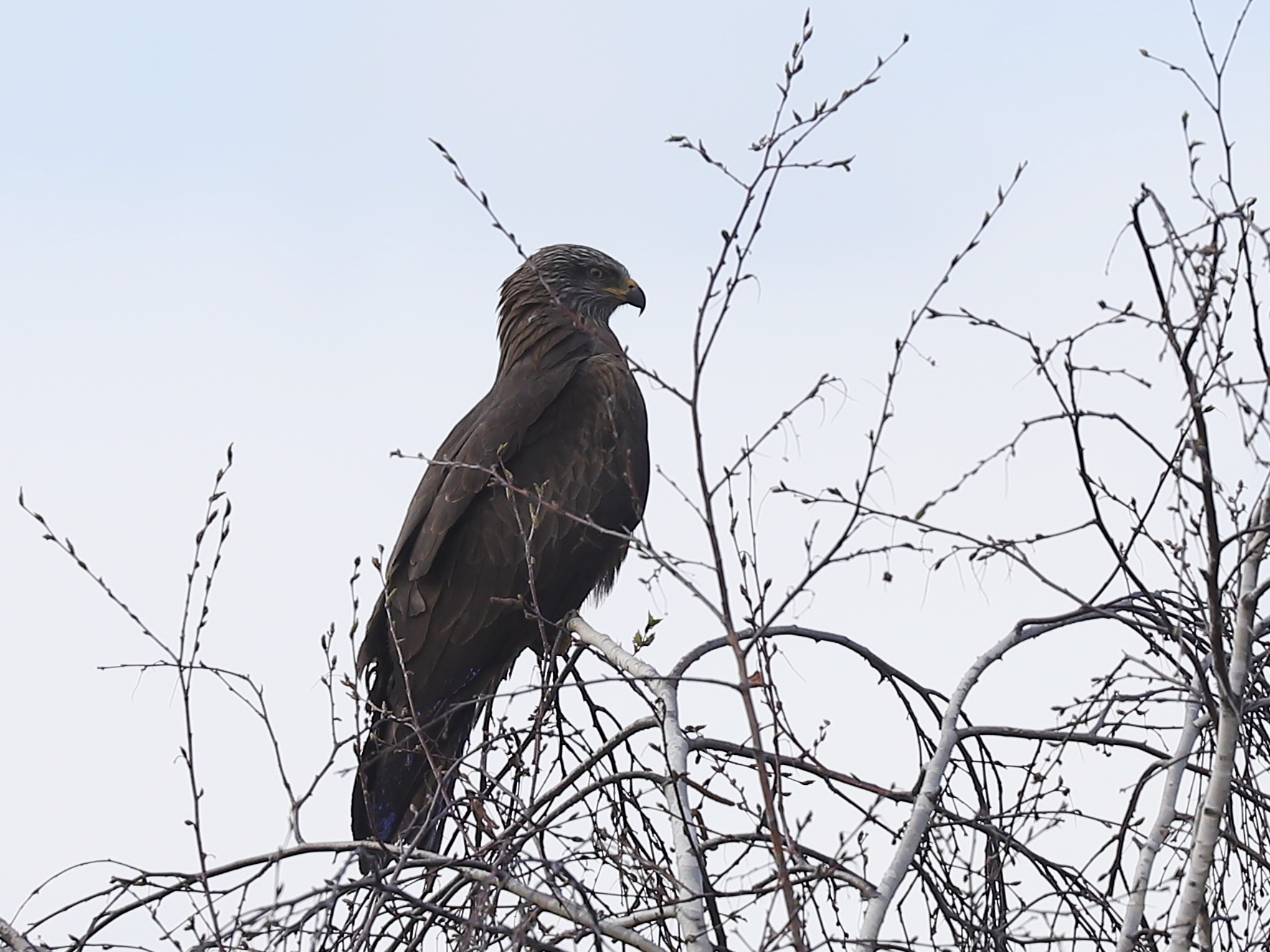 J’ai été surpris de trouver un Grand corbeau Corvus corax en train de picorer des baies de lierre. Le bec et la silhouette avec la queue en losange sont caractéristiques, même si ces détails sont difficiles à voir lorsqu’il cercle avec un Milan noir au premier plan.