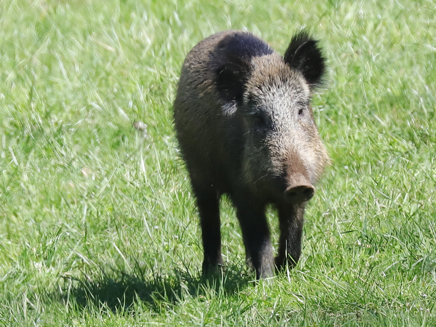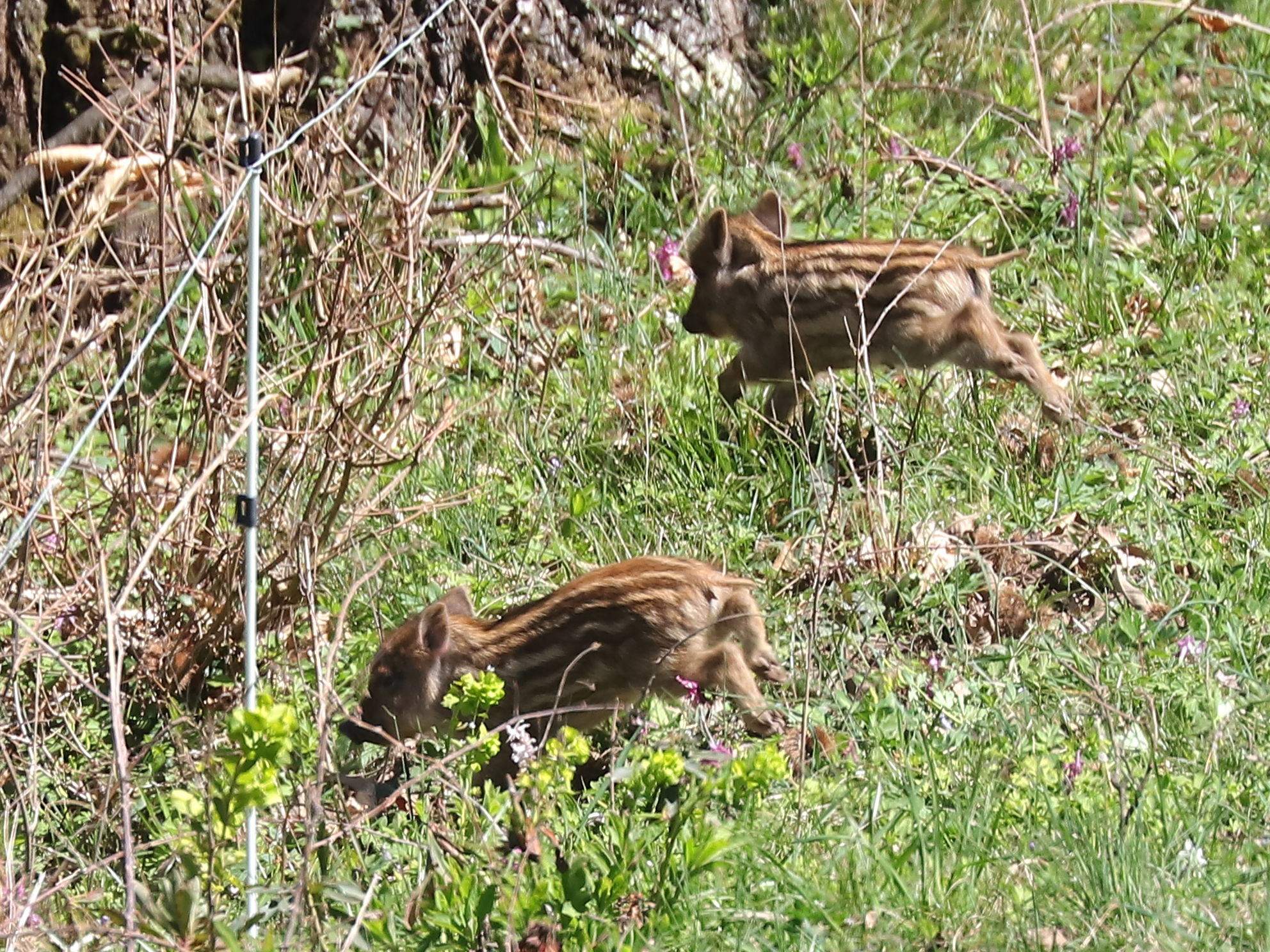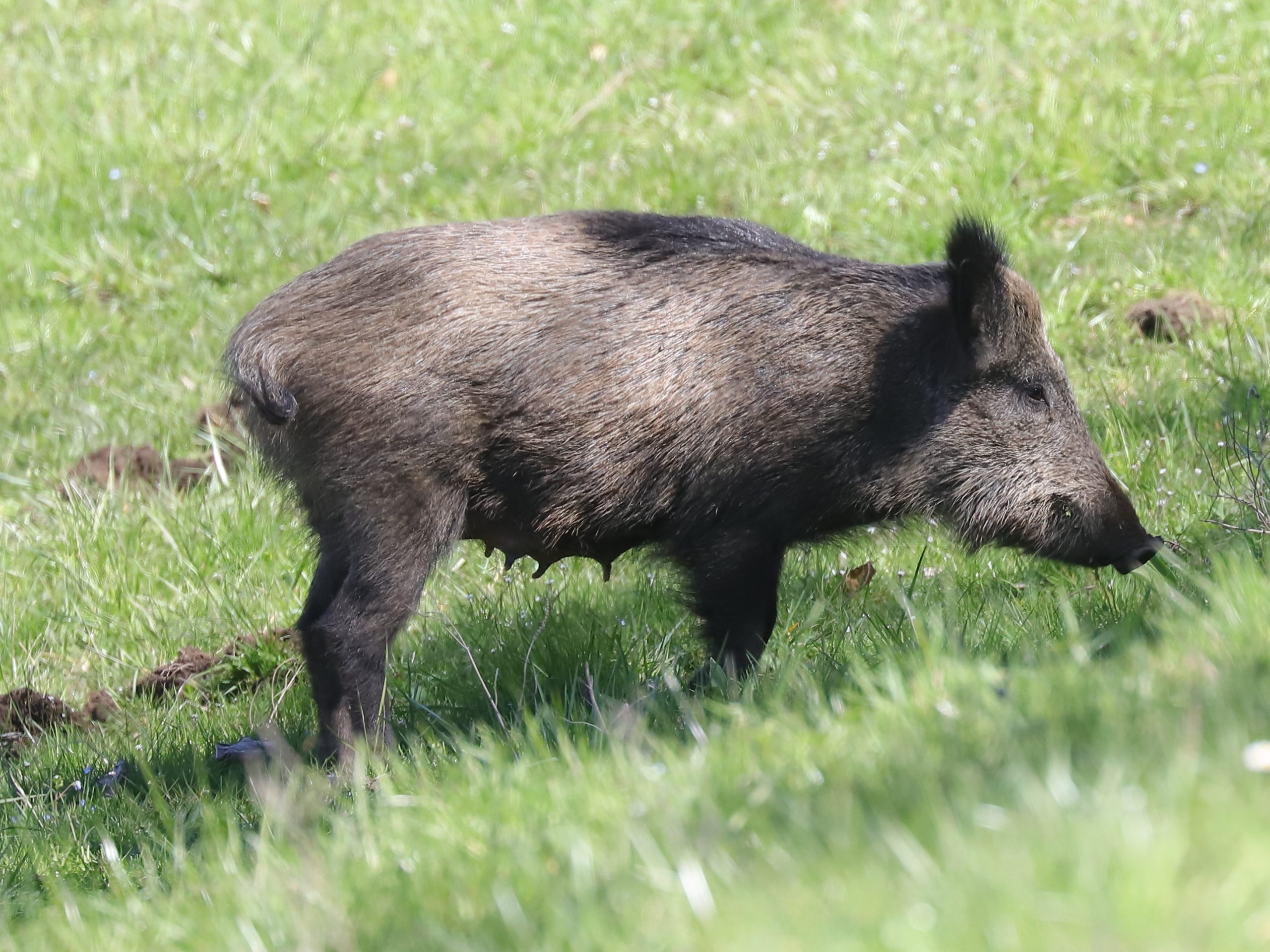 Une laie allaitante Sus scrofa fouissait tranquillement dans un pré, vers 14h. Entre la première et la dernière photo 17 minutes se sont écoulées, c’est donc en toute quiétude que la bête s’est nourrie avant de se rendre compte de ma présence, d’appeler ses 6 à 8 petits et de disparaître dans les fourrés.