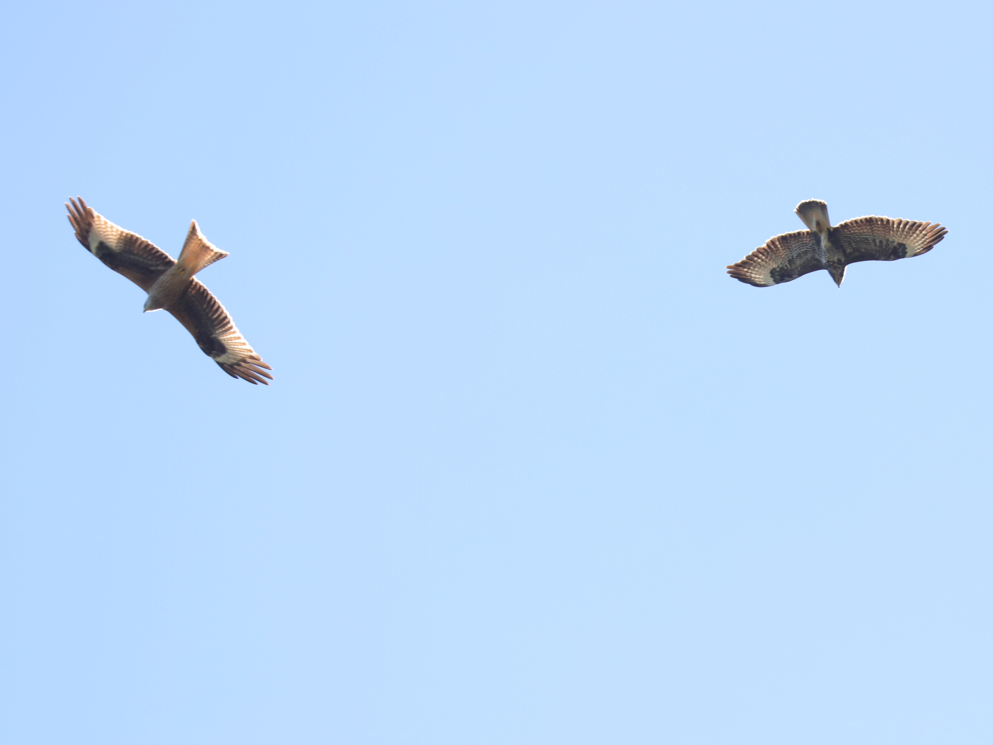 Et toujours quelques Milans royaux Milvus milvus, dont un qui cercle avec une Buse variable.