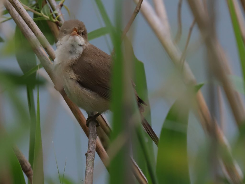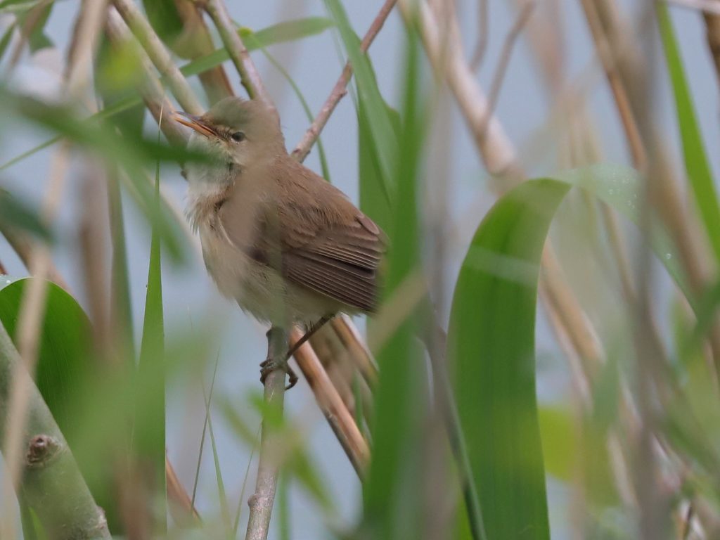 Une Rousserolle effarvatte Acrocephalus scirpaceus, oiseau migrateur qui niche dans les roselières.