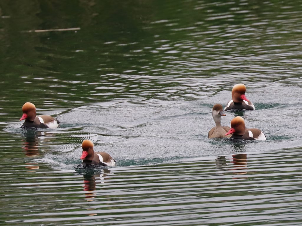 Les Nettes rousses Netta rufina sont en pleine saison de formation des couples. Comme il y a plus de mâles que de femelles, on voit souvent ces attroupements d’une dizaine de mâles autour d’une femelle – pas loin du harcèlement !