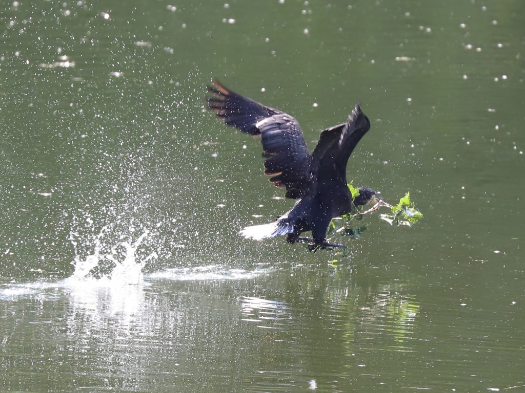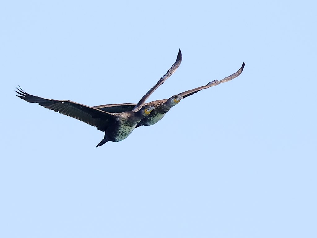 Certains Grands cormorans Phalacrocorax carbo partent pêcher seuls et d’autres en groupe, je ne sais pourquoi. Ce qui est certain, c’est l’odeur particulièrement soutenue de vieux poisson qui règne autour des nids.