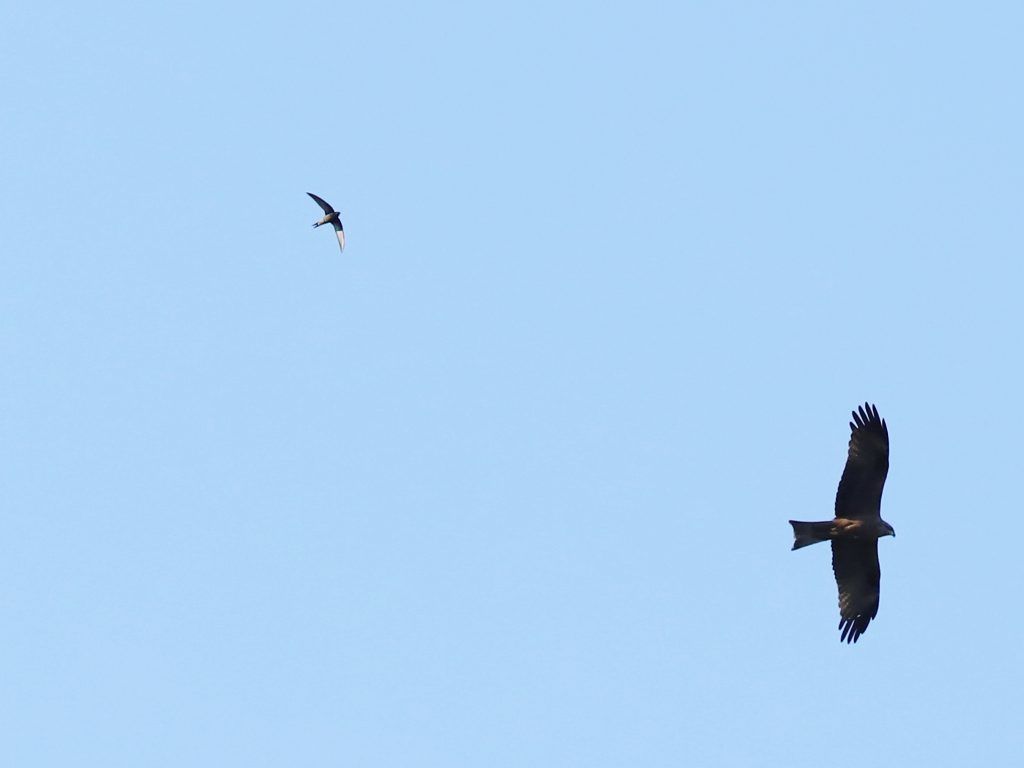 Une image juste pour montrer l’écart d’envergure entre un Martinet noir Apus apus et un Milan noir.