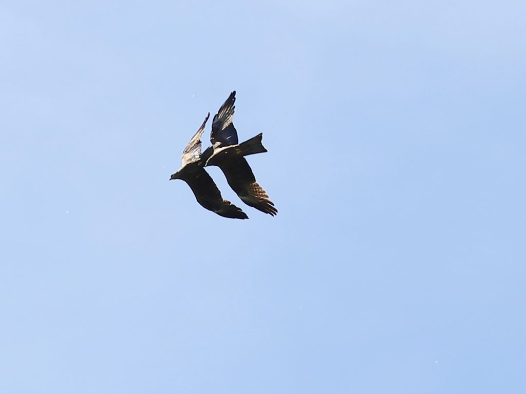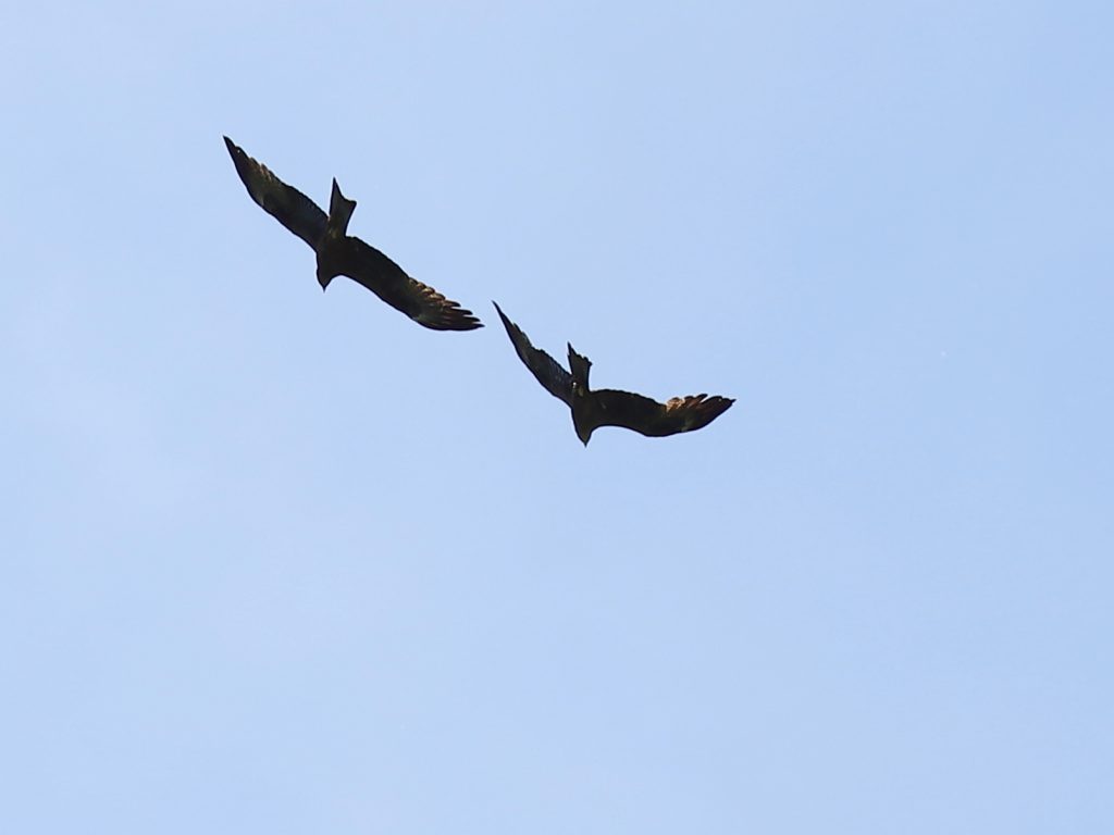 Pour en terminer avec les Milans noirs Milvus migrans de la semaine, voici des observations plus ou moins proches. Les vols en tandem peuvent être ceux de couples, certaines femelles ayant terminé leur couvée.