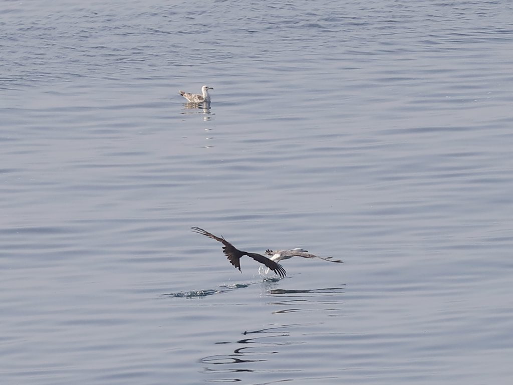 A propos de nourriture, j’ai pu photographier depuis mon balcon un Milan noir Milvus migrans en pleine pêche. Il a ensuite consommé son poisson en vol.