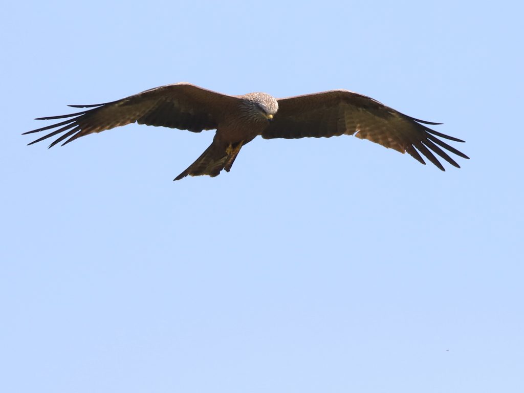 Les Milans royaux Milvus milvus ont aussi entamé leur migration. celui-ci est un peu atypique par les marques blanches sur le bord d’attaque des ailes.