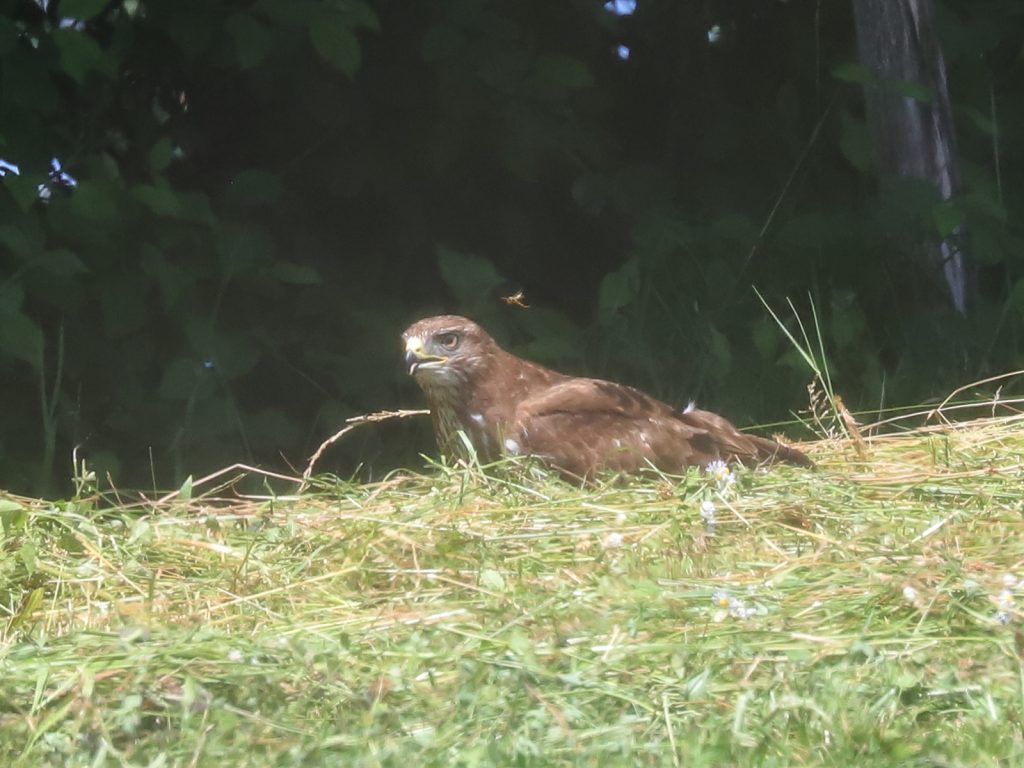 Outre la buse, des Milans noirs Milvus migrans ont cerclé au-dessus du pré mais aucun d’eux n’est venu se poser.