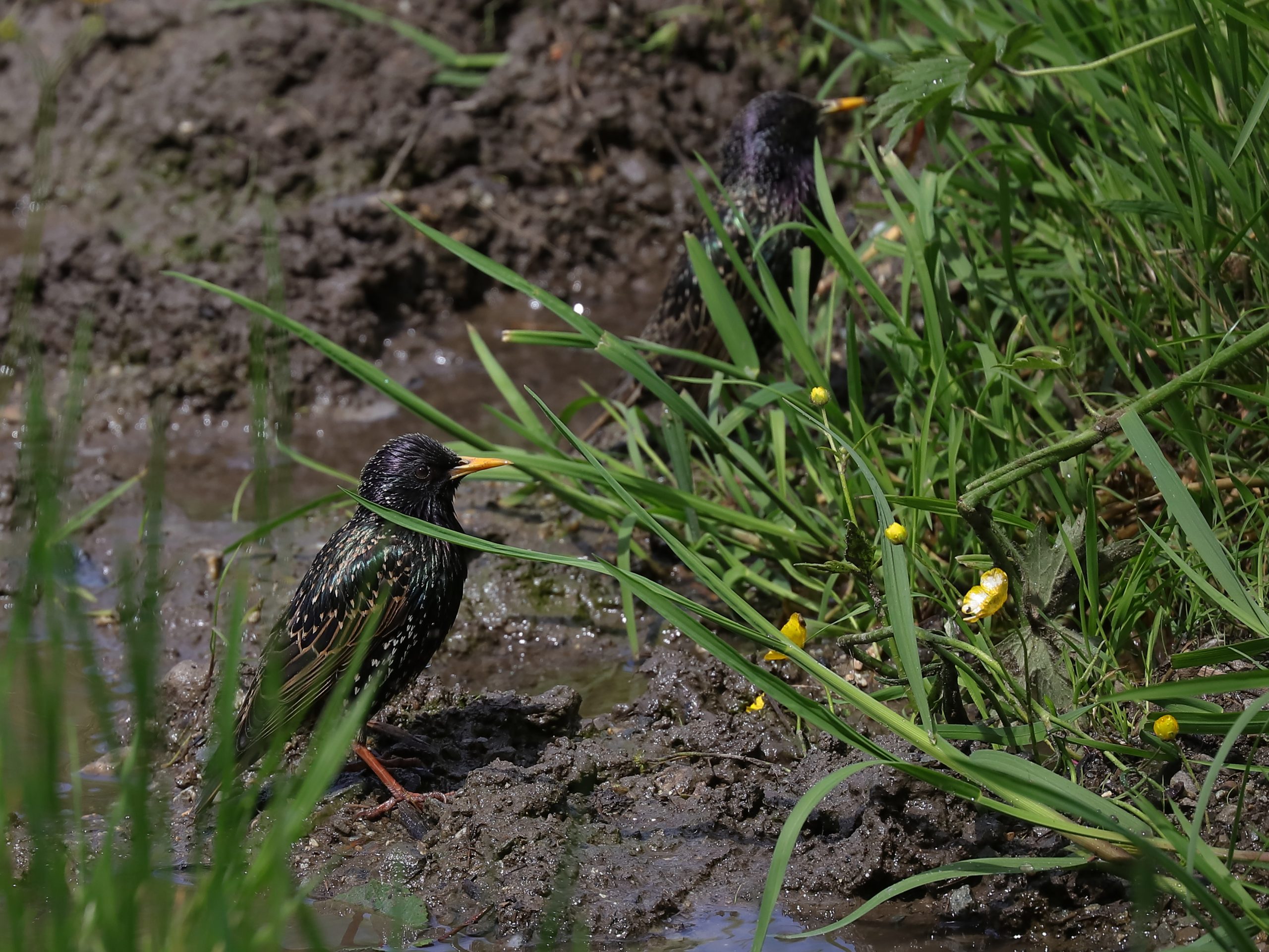 Au point d’eau, il y a des Etourneaux sansonnets Sturnus vulgaris