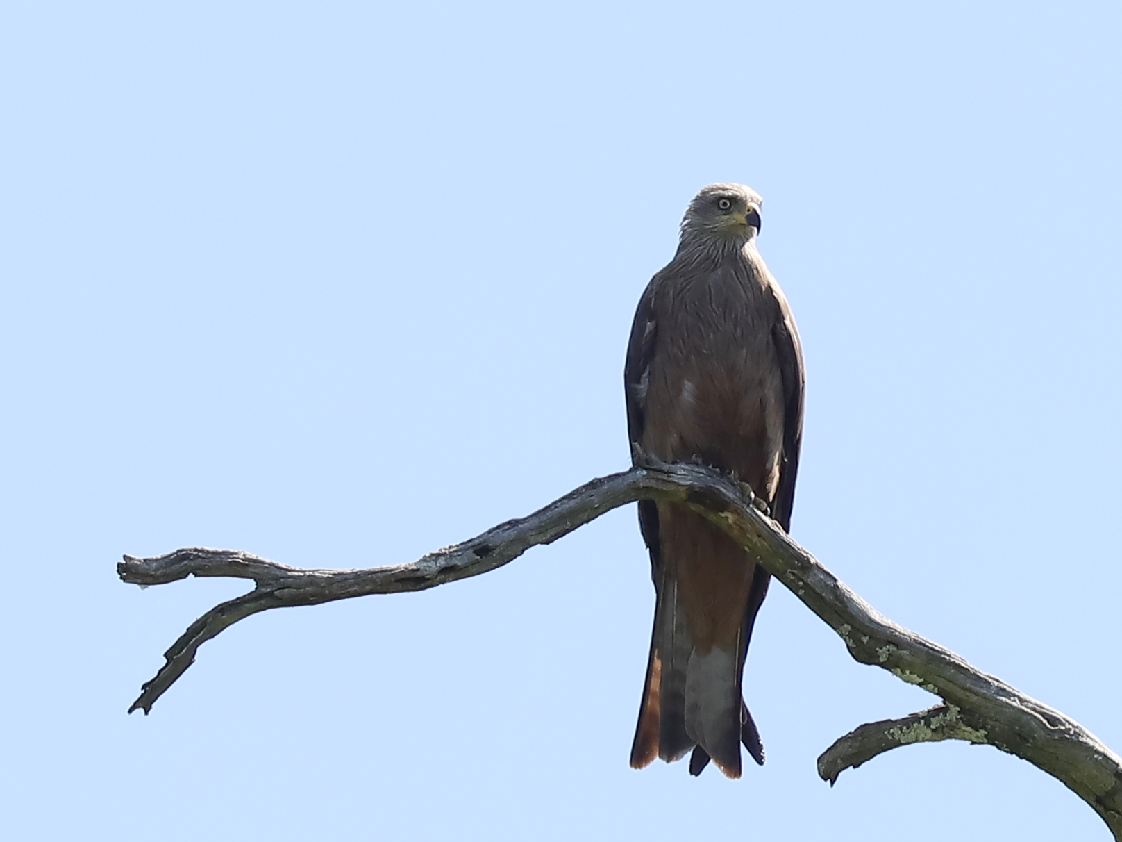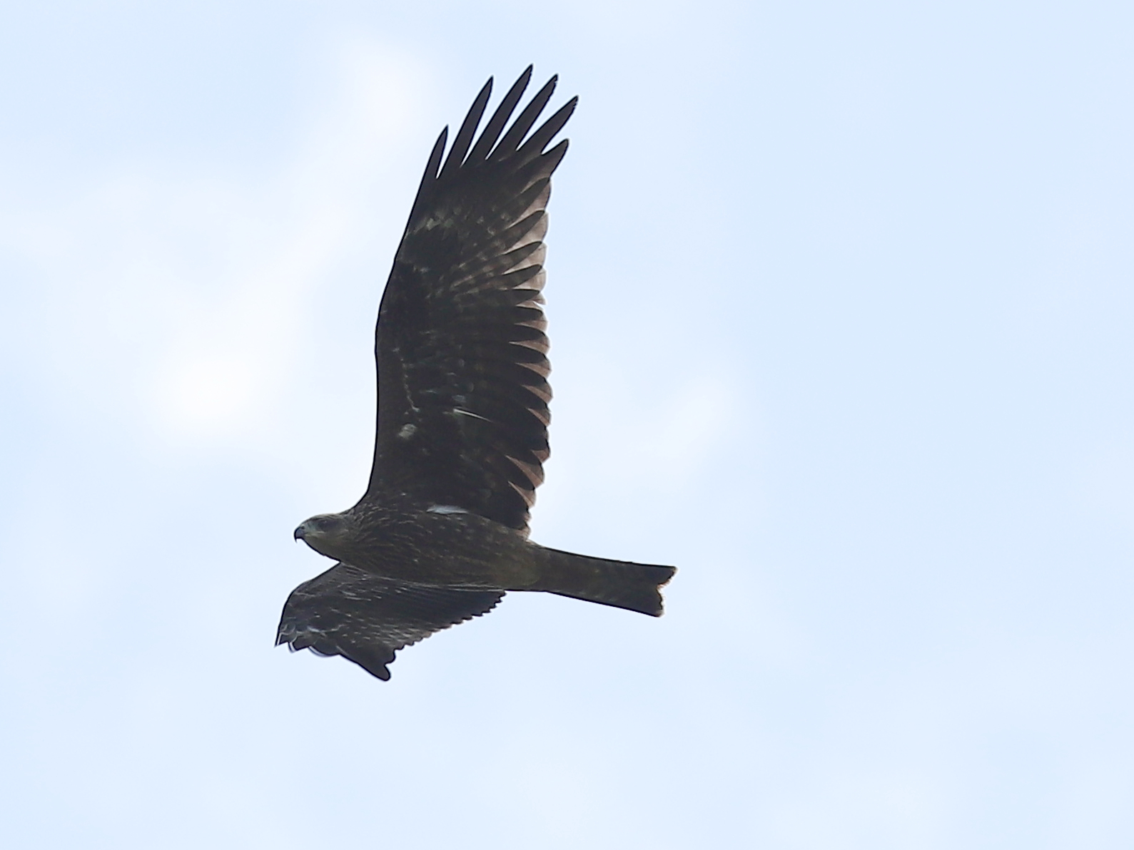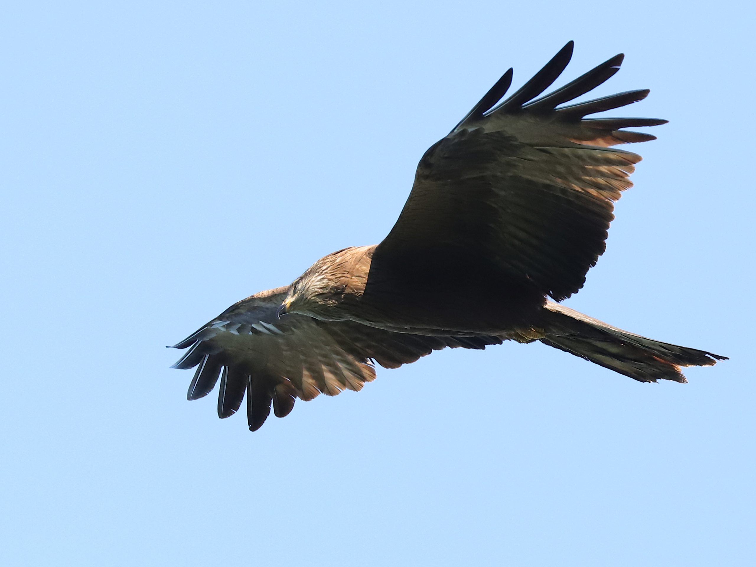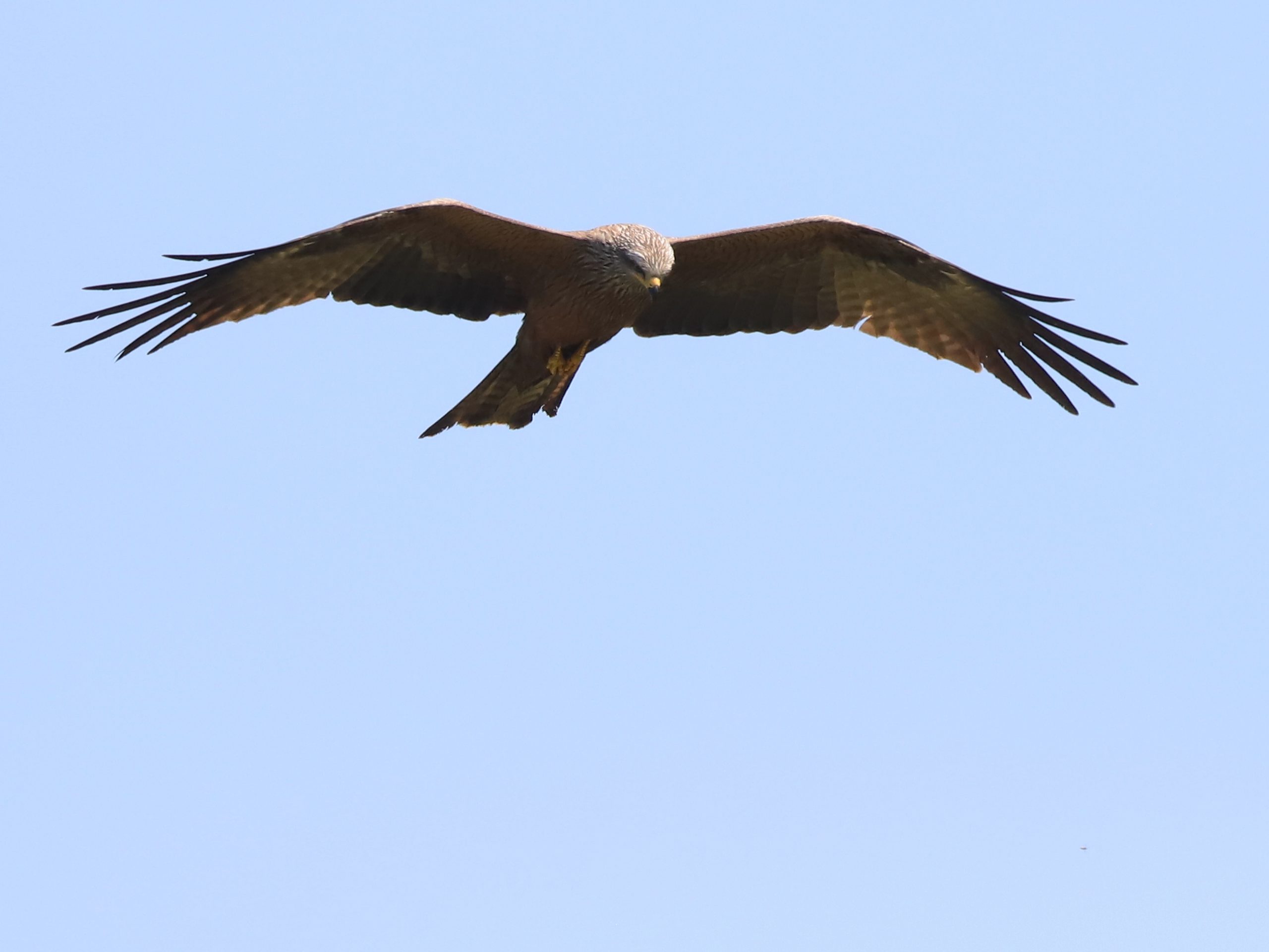 Voilà les rapaces dont les effectifs diminuent de jour en jour, au fur et à mesure des départs en migration. Ce sont les Milans noirs Milvus migrans, celui-ci est adulte qui semble porter un oisillon dans les serres …