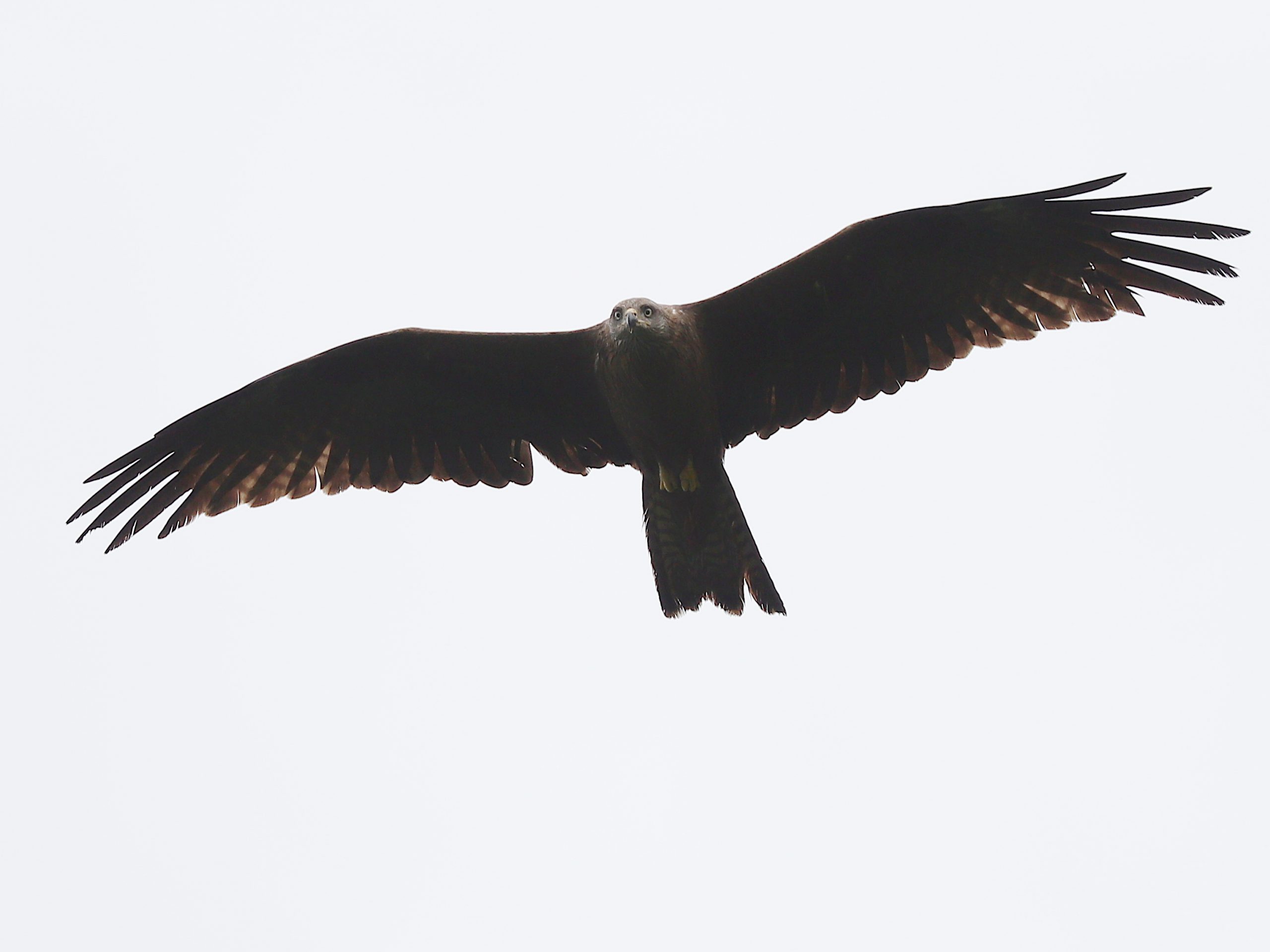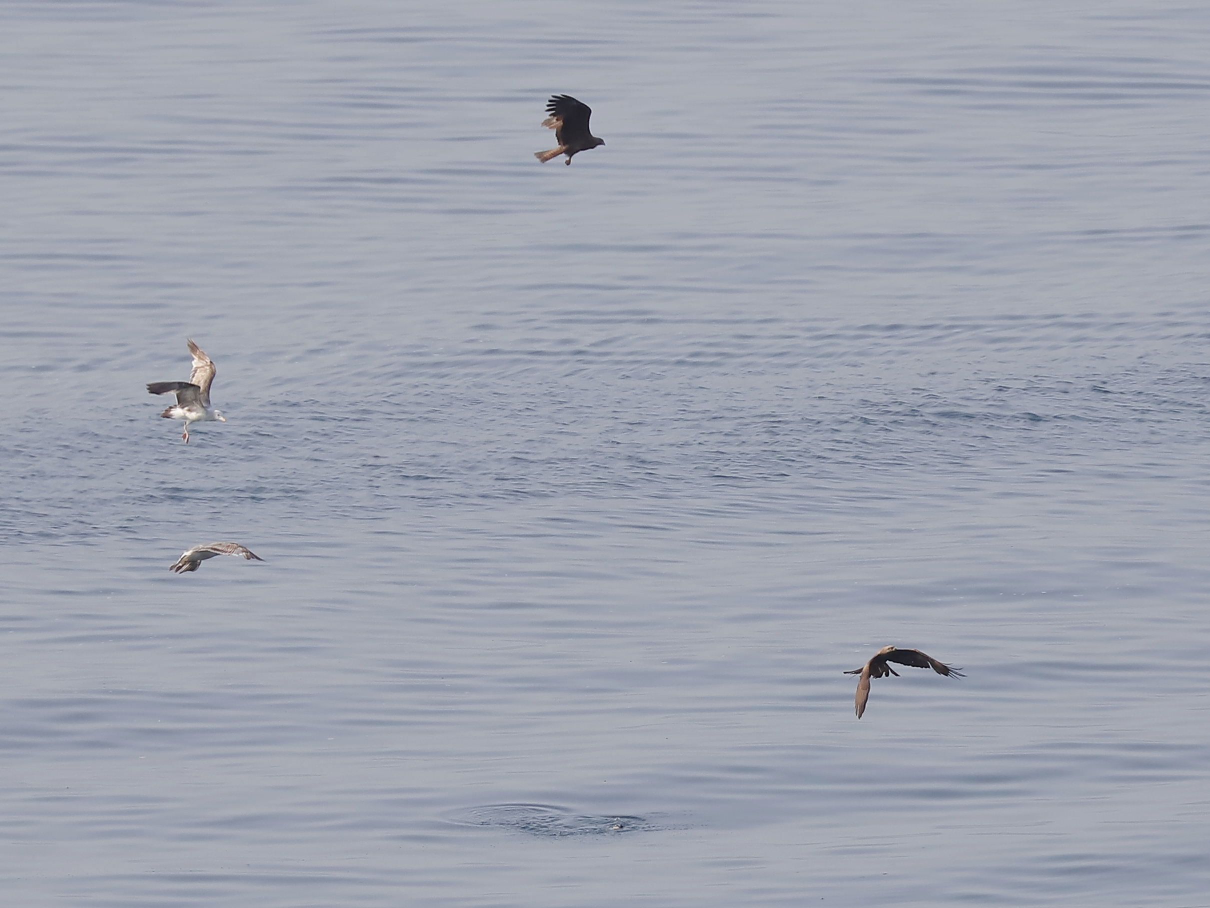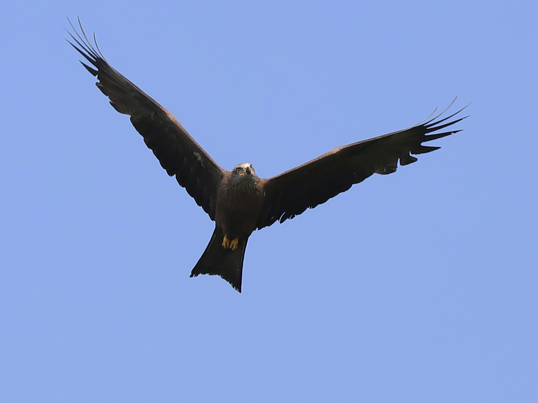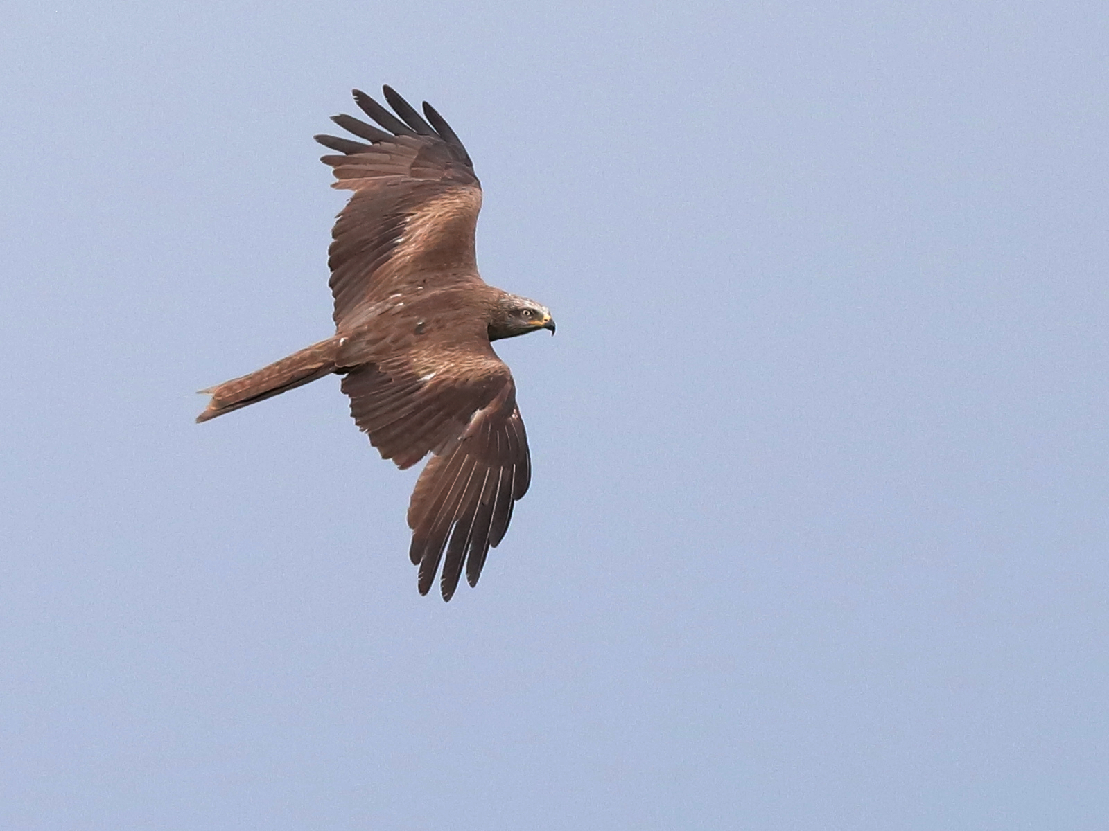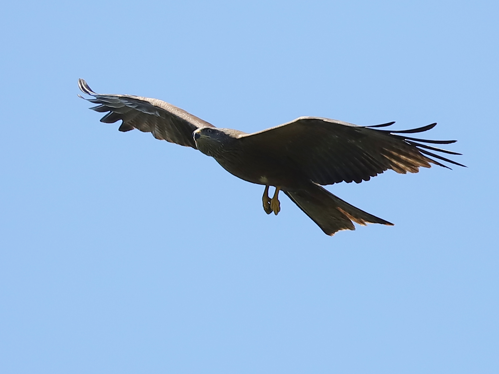 Voilà les rapaces dont les effectifs diminuent de jour en jour, au fur et à mesure des départs en migration. Ce sont les Milans noirs Milvus migrans, celui-ci est adulte qui semble porter un oisillon dans les serres …