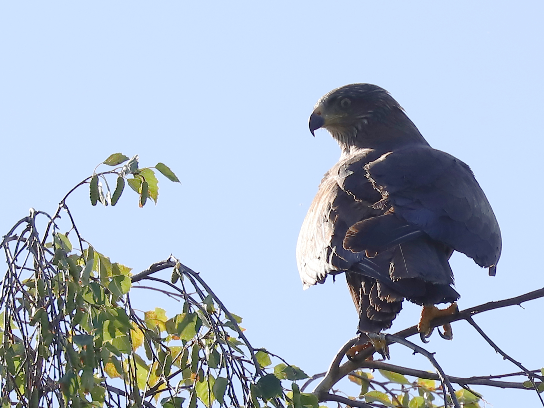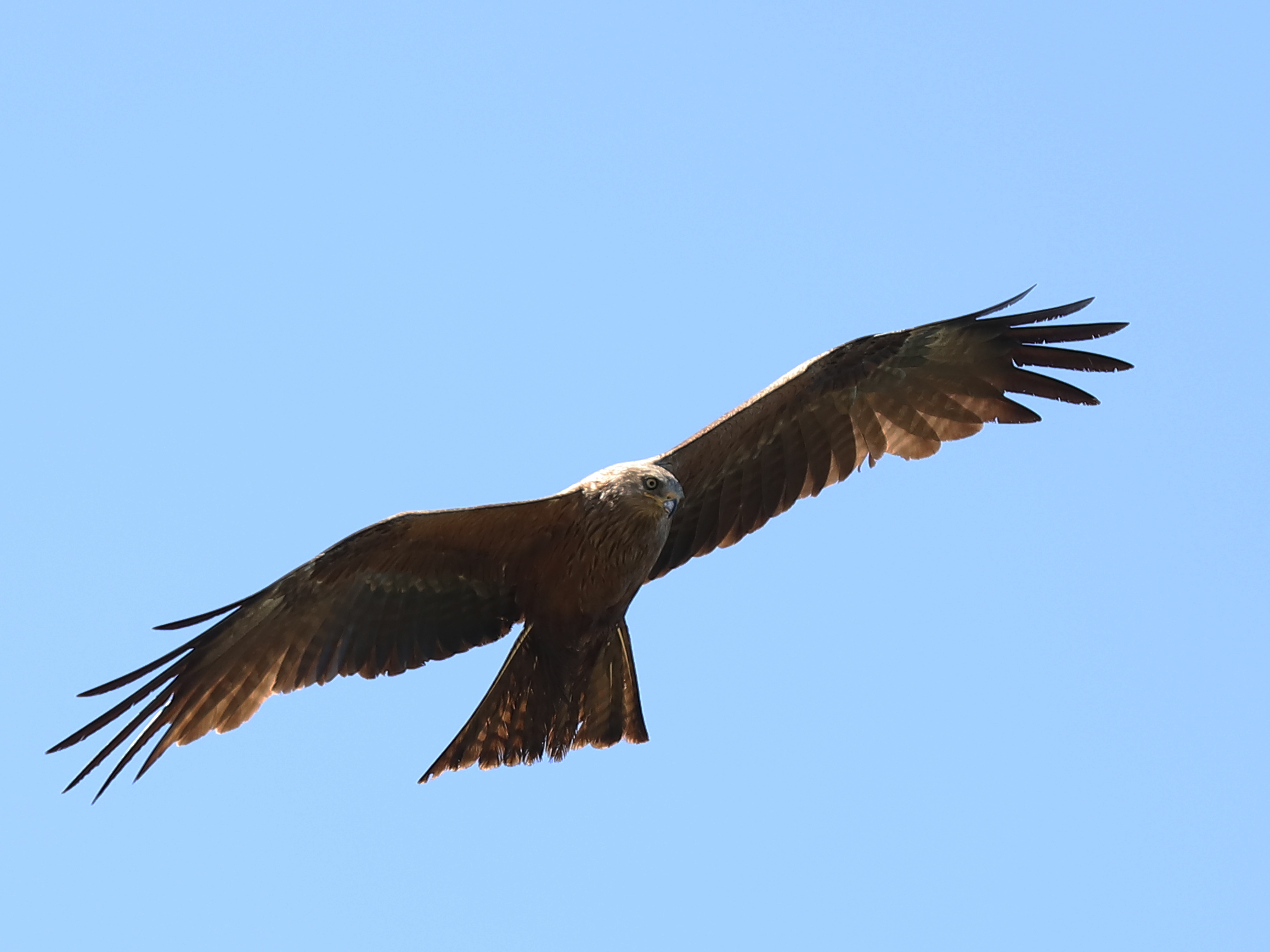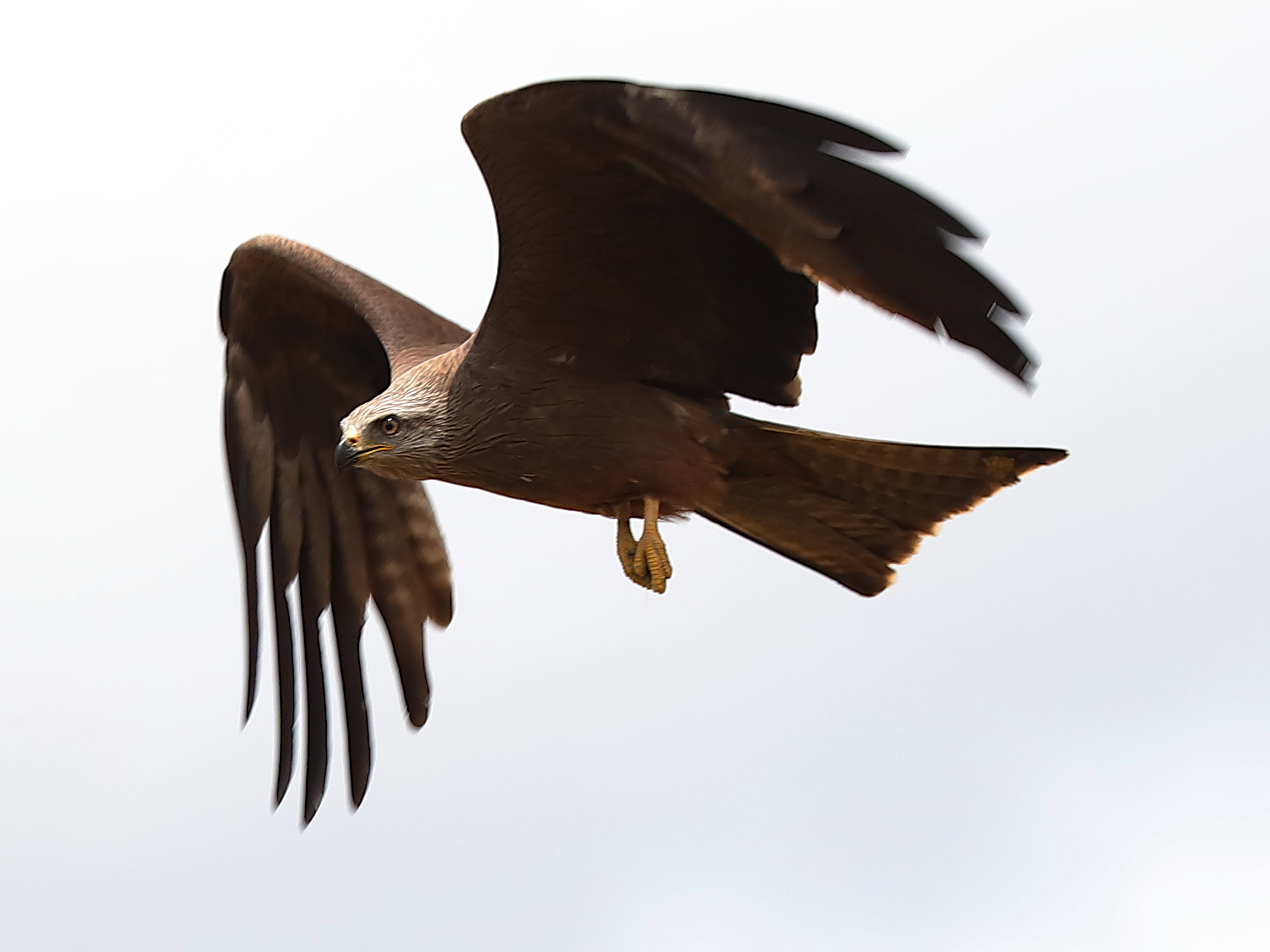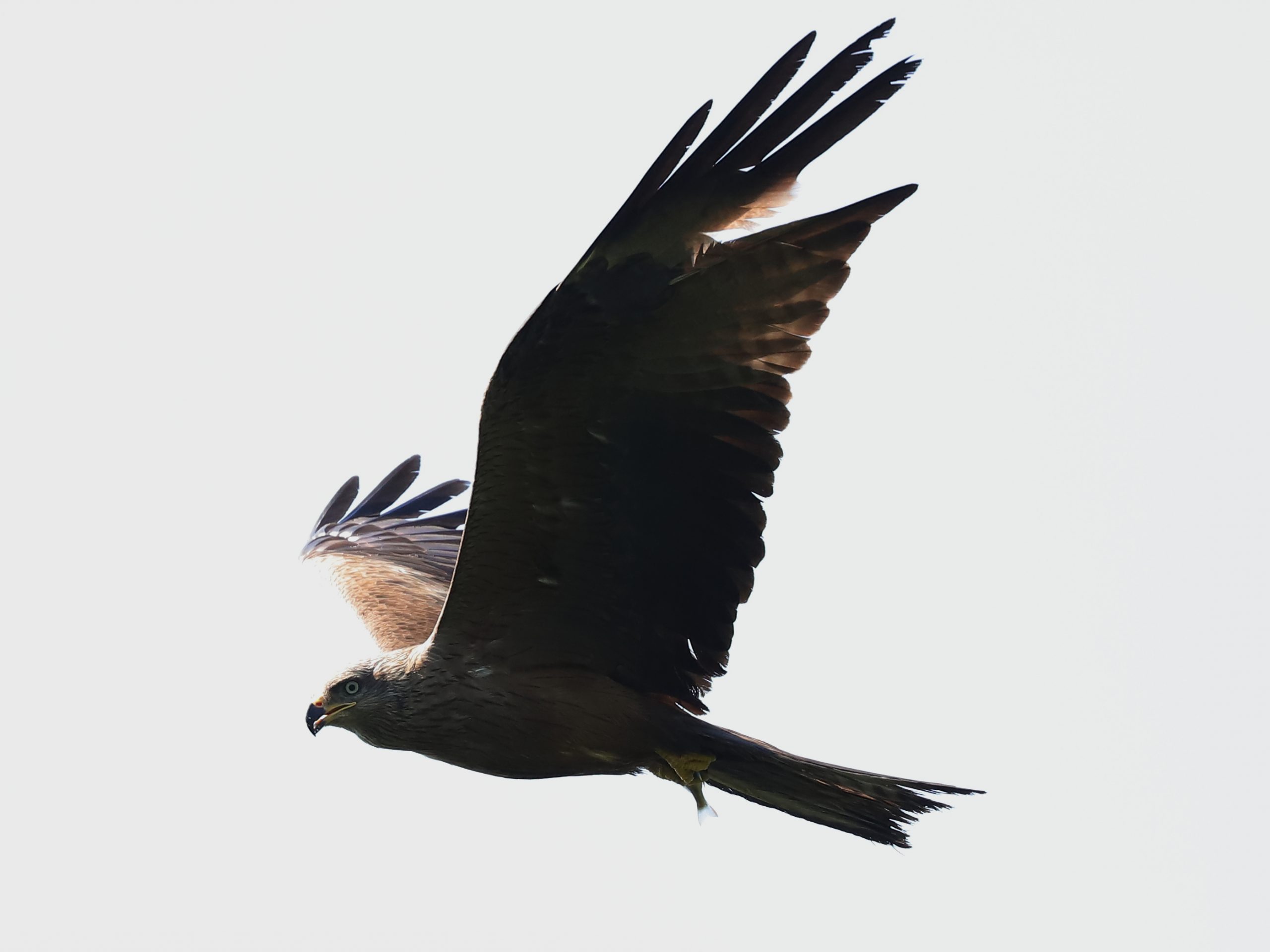 Voilà les rapaces dont les effectifs diminuent de jour en jour, au fur et à mesure des départs en migration. Ce sont les Milans noirs Milvus migrans, celui-ci est adulte qui semble porter un oisillon dans les serres …