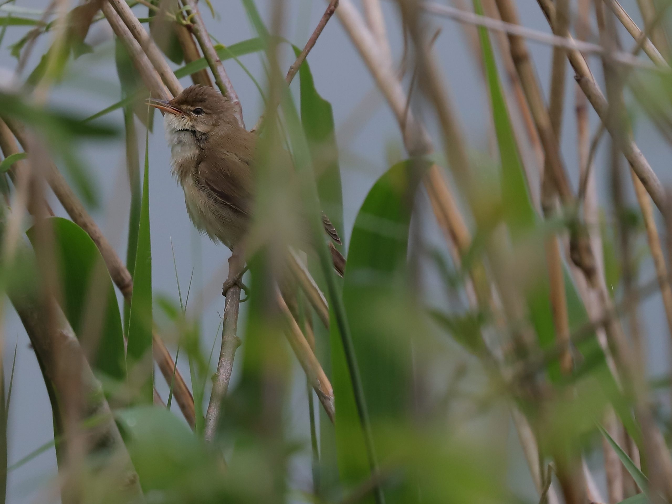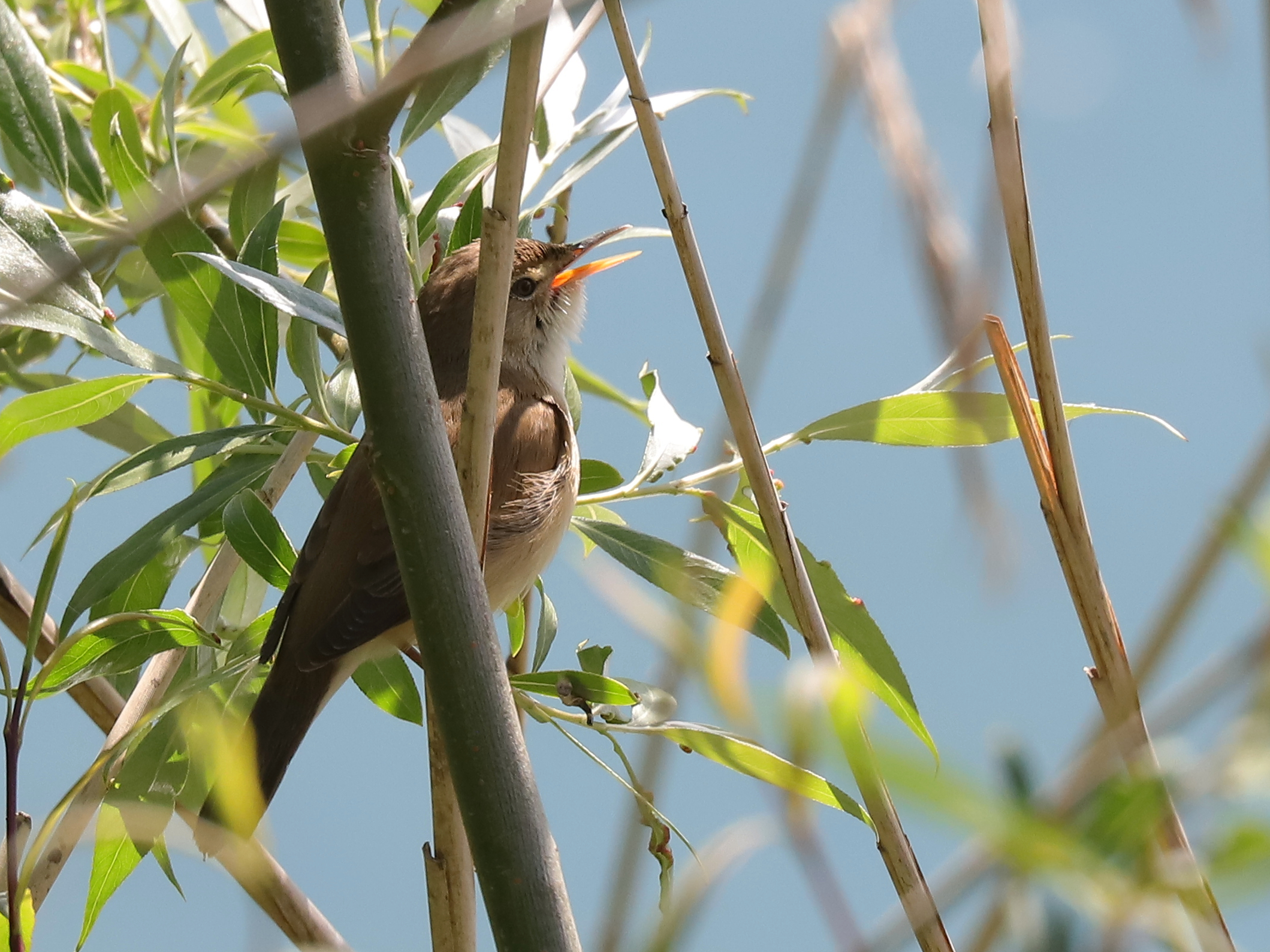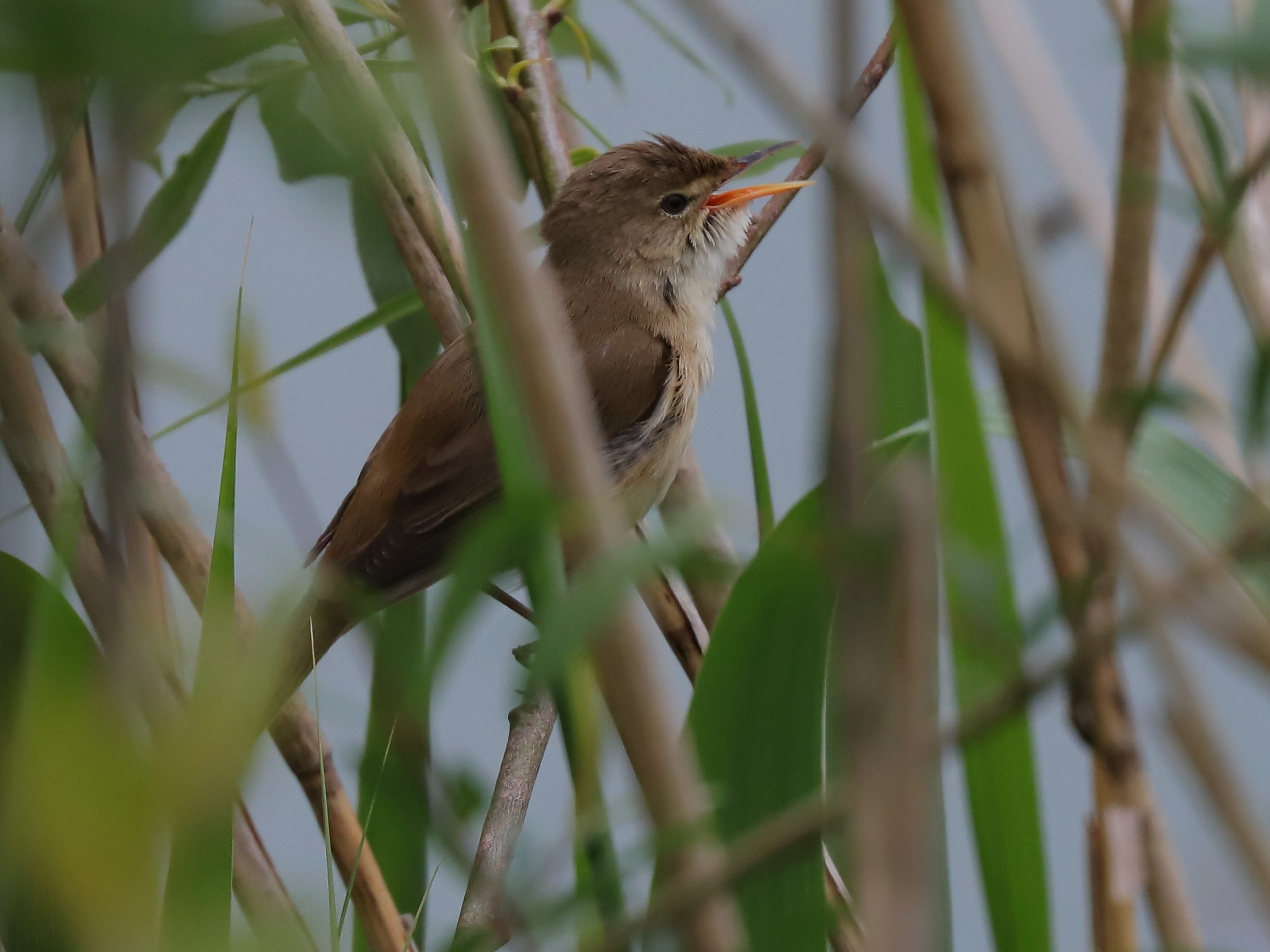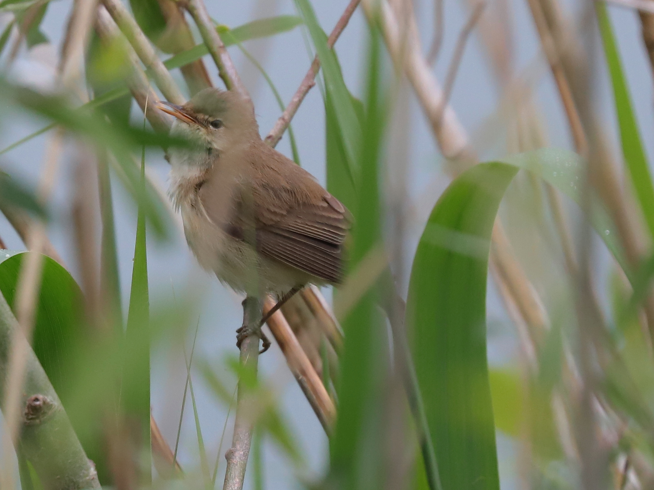 Une Rousserolle effarvatte Acrocephalus scirpaceus, oiseau migrateur qui niche dans les roselières.