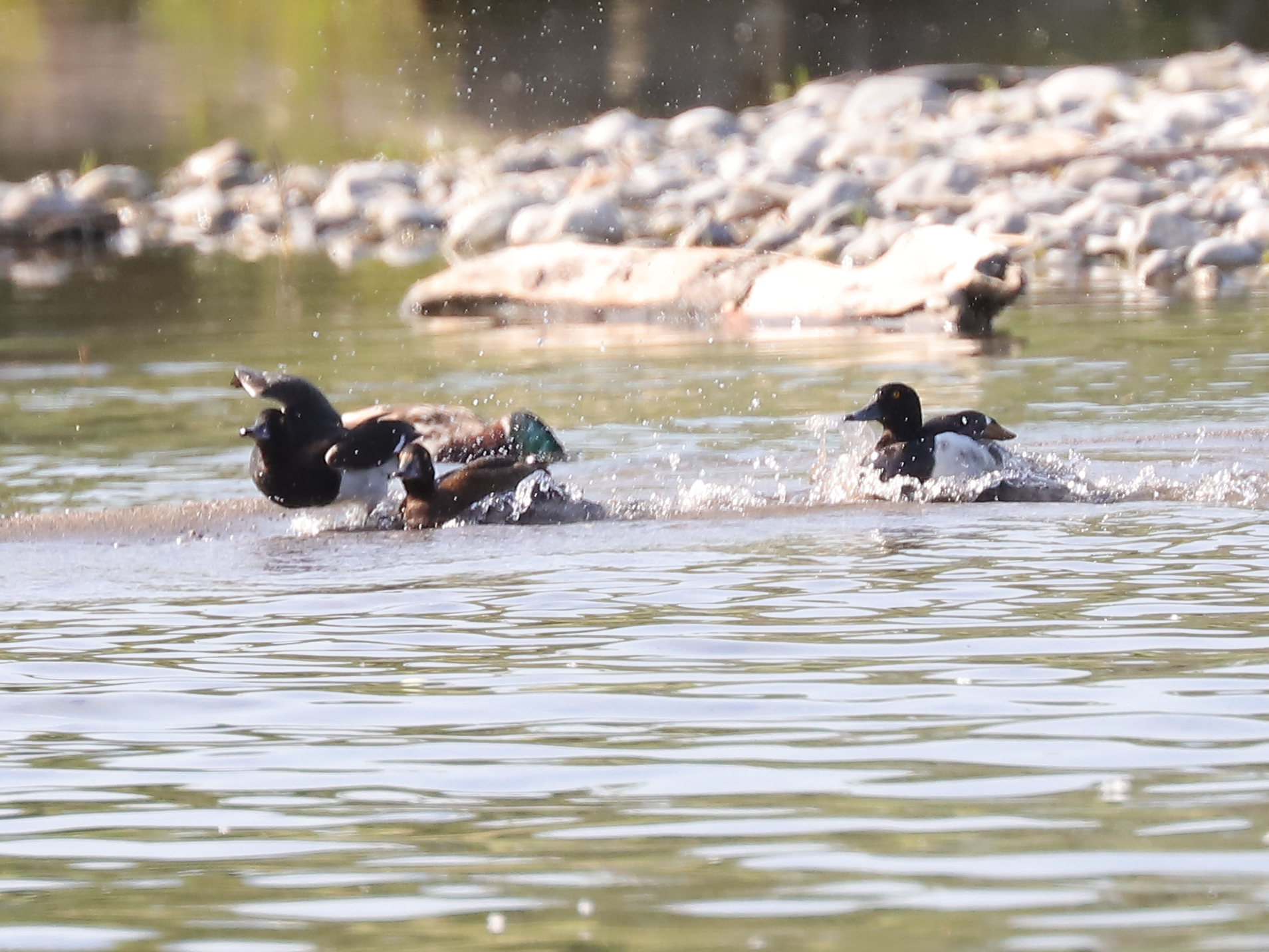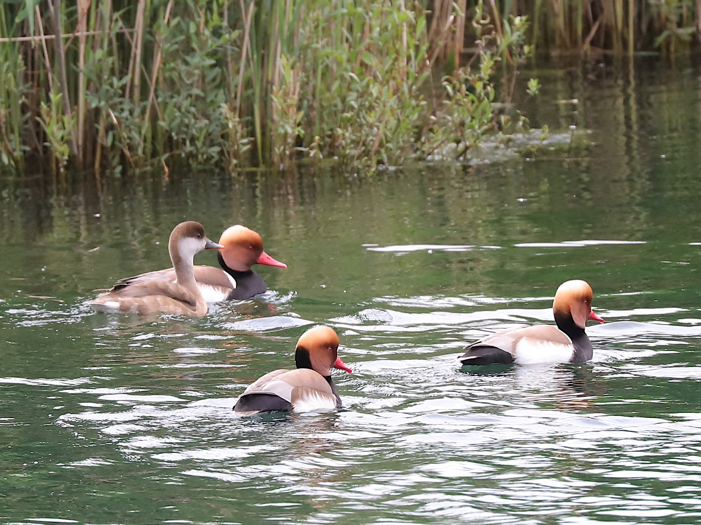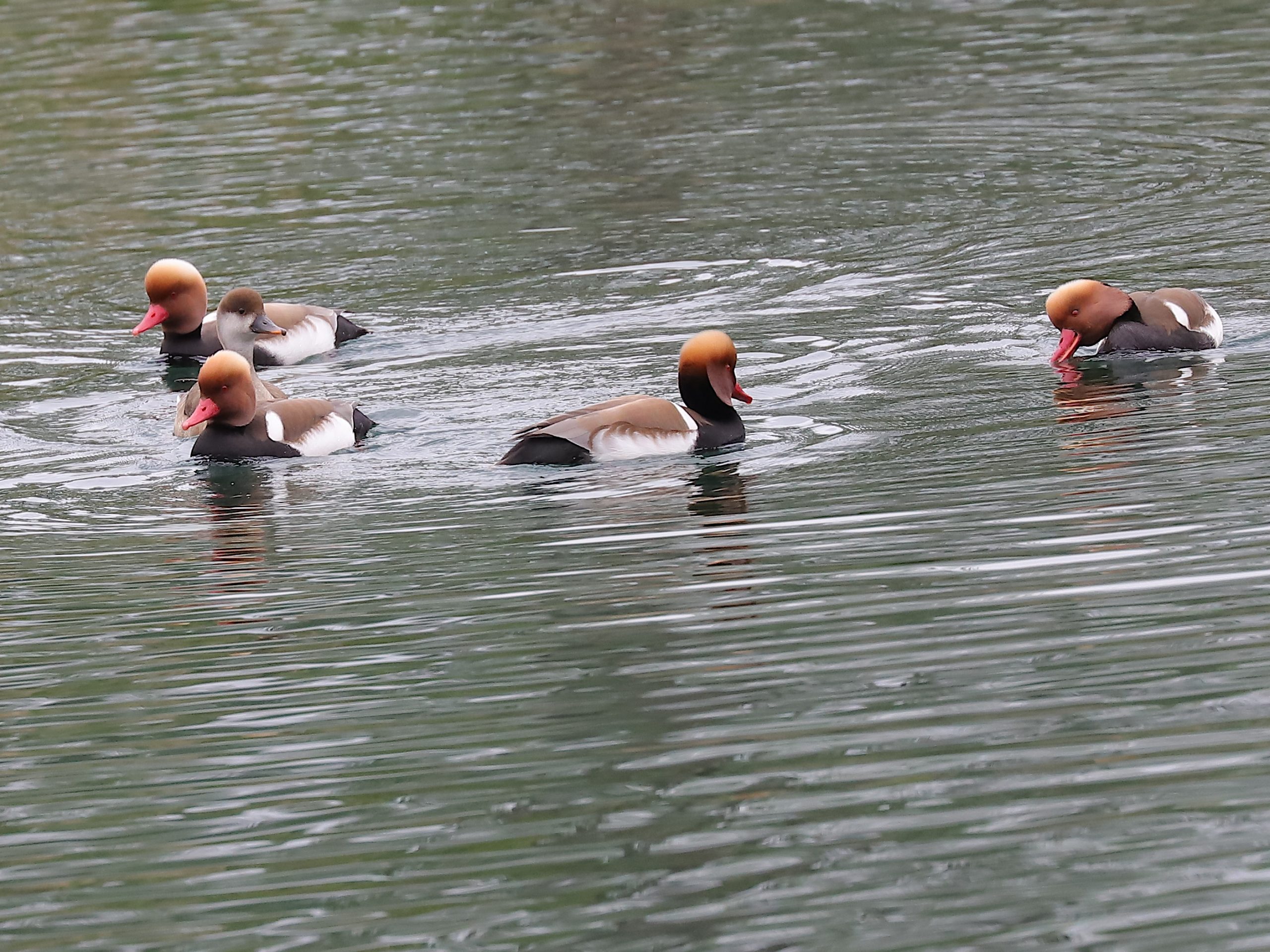 Les Nettes rousses Netta rufina sont en pleine saison de formation des couples. Comme il y a plus de mâles que de femelles, on voit souvent ces attroupements d’une dizaine de mâles autour d’une femelle – pas loin du harcèlement !