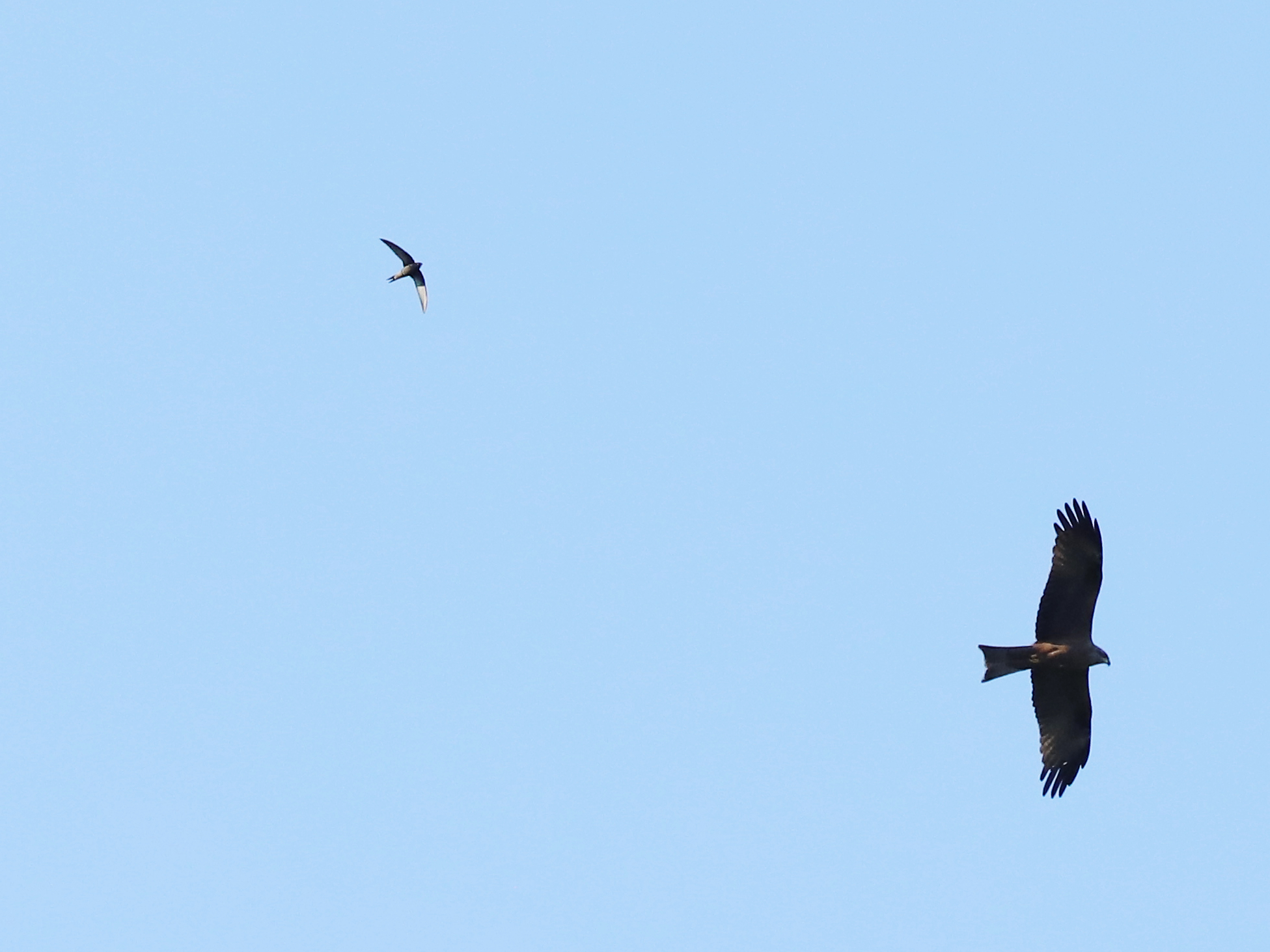 Une image juste pour montrer l’écart d’envergure entre un Martinet noir Apus apus et un Milan noir.